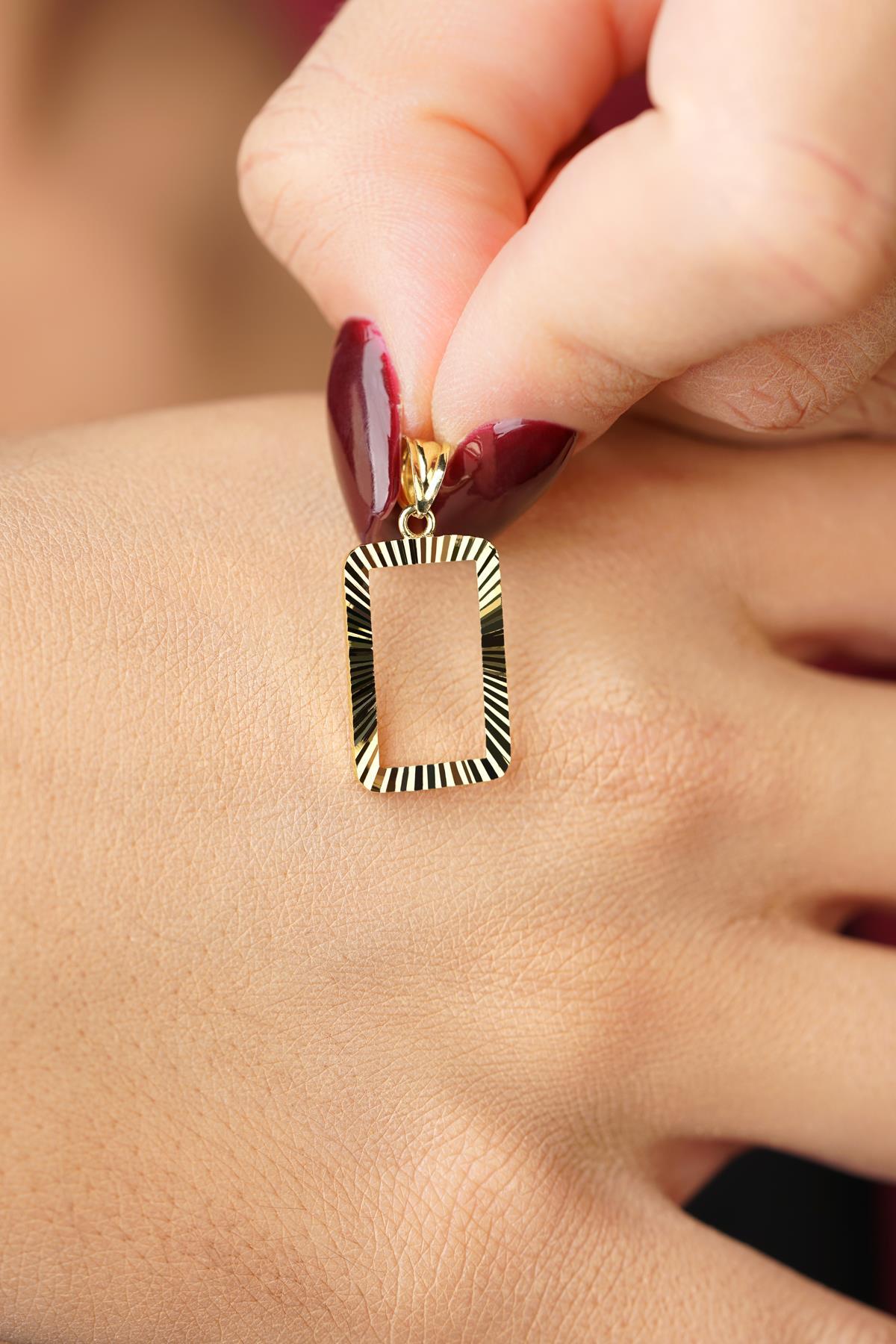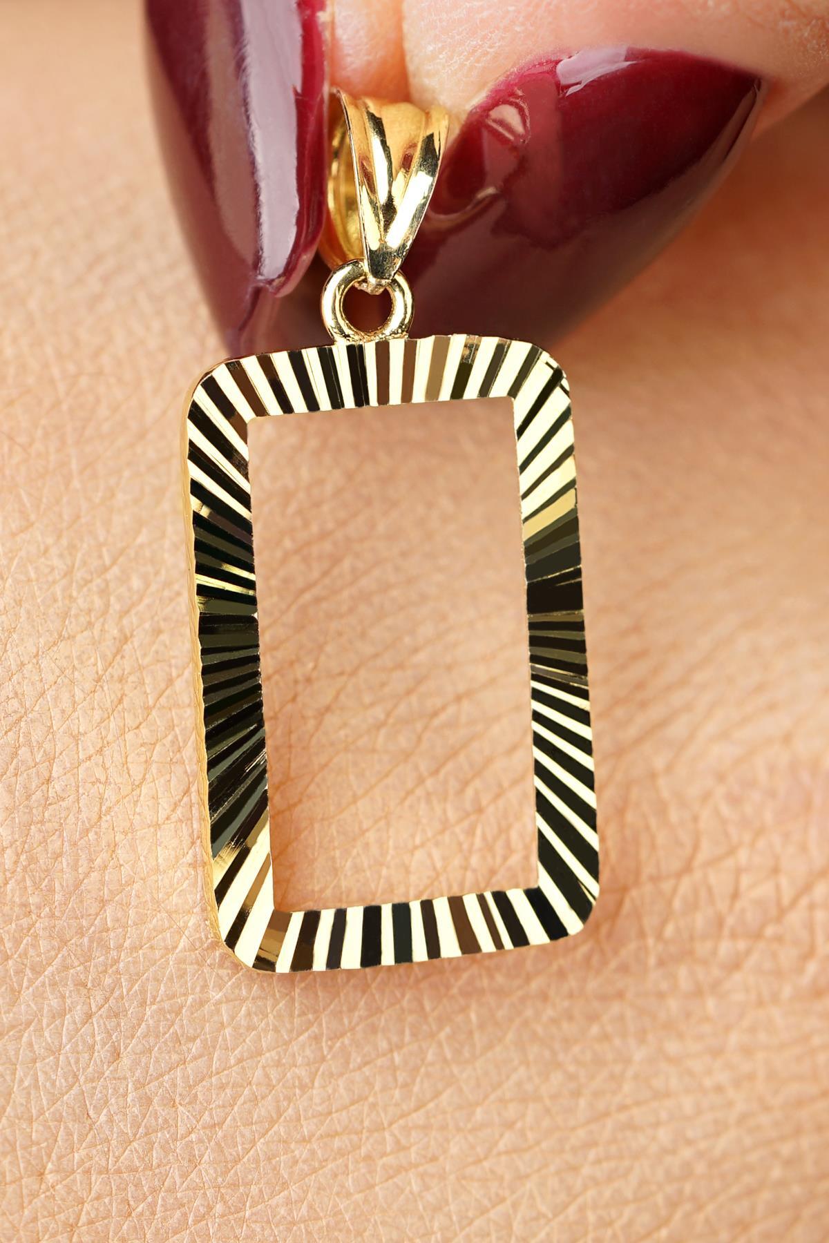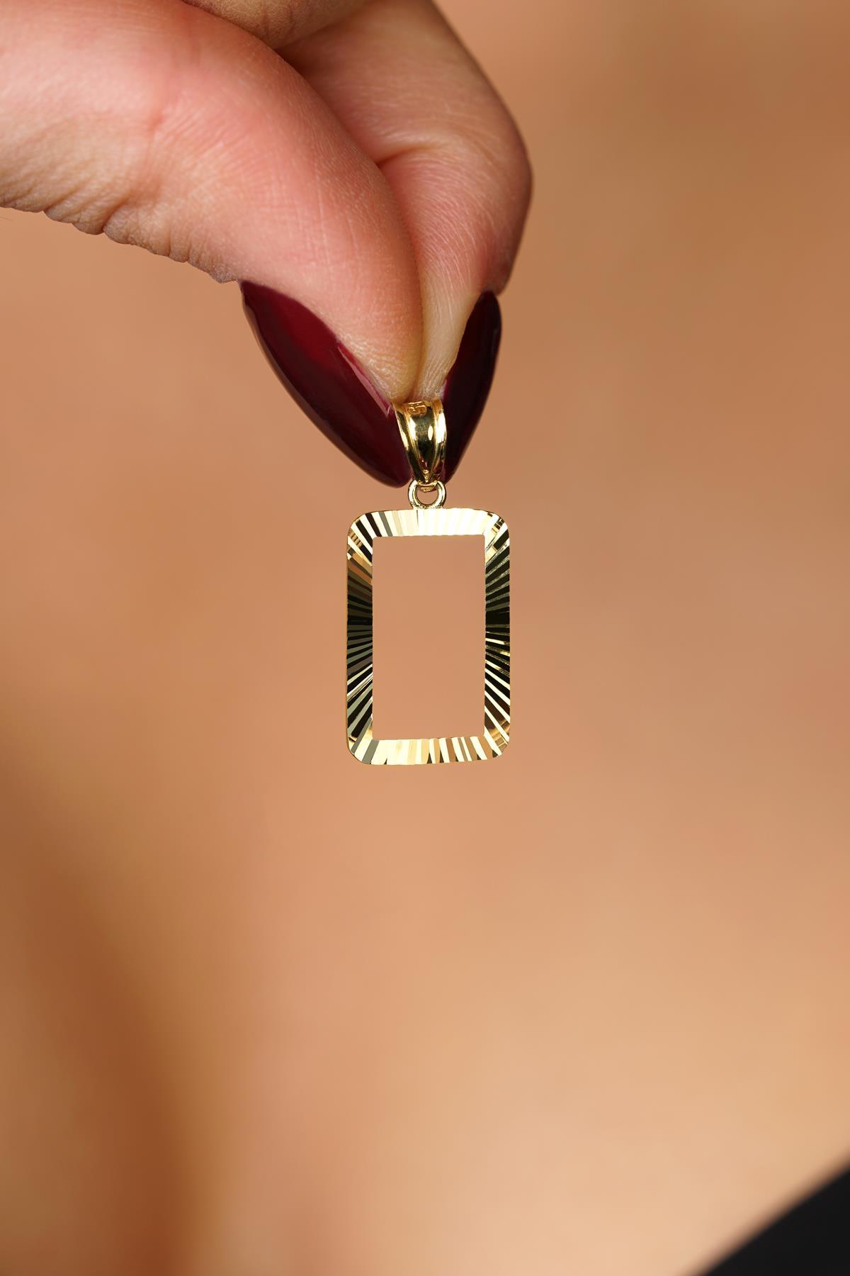 14 Ayar Altın Işıltılı Gram Altın Çerşevesi Kolye Ucu