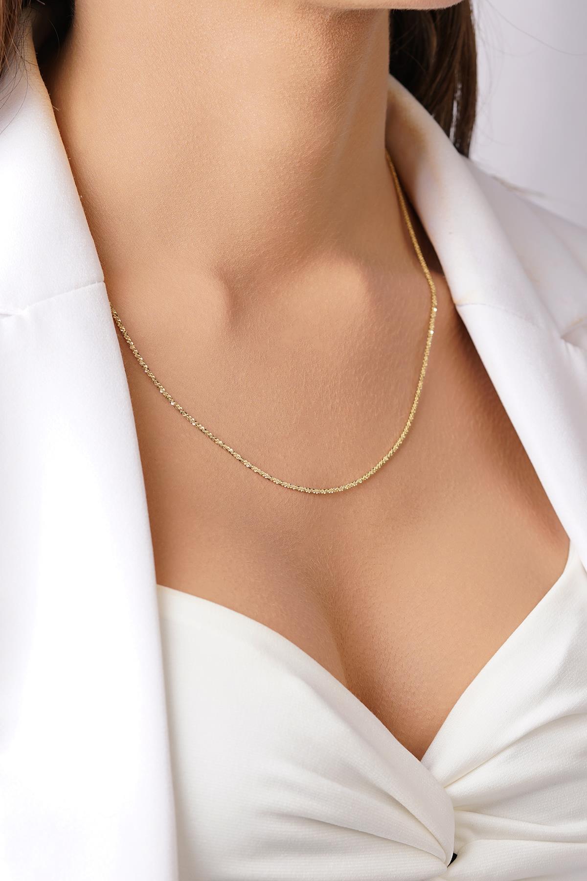14 Ayar Altın Işıltılı İtalyan Marla Kolye