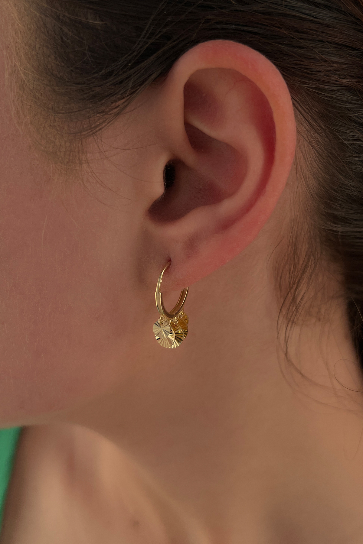 14 Ayar Altın Işıltılı Pul Sallantılı Küpe