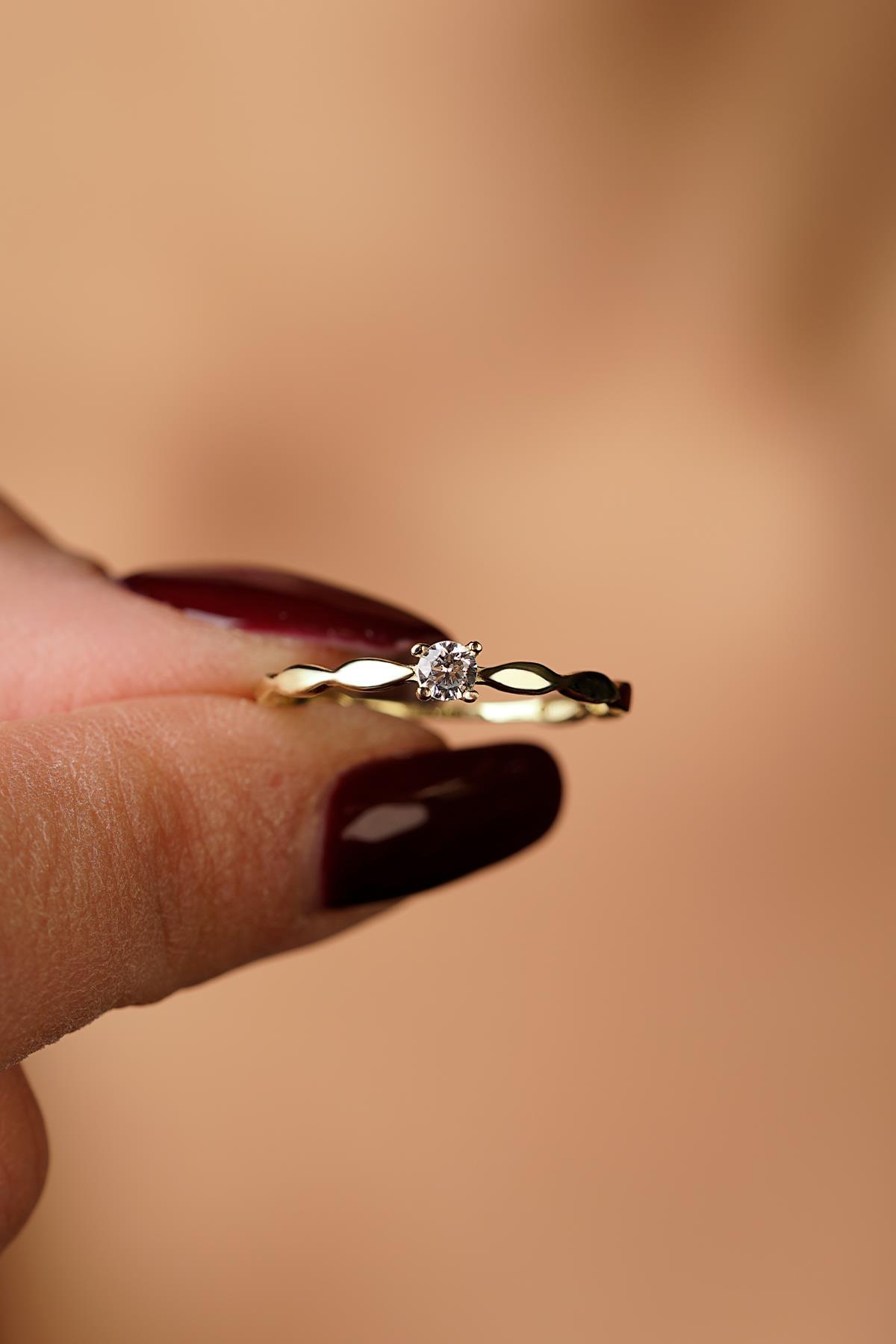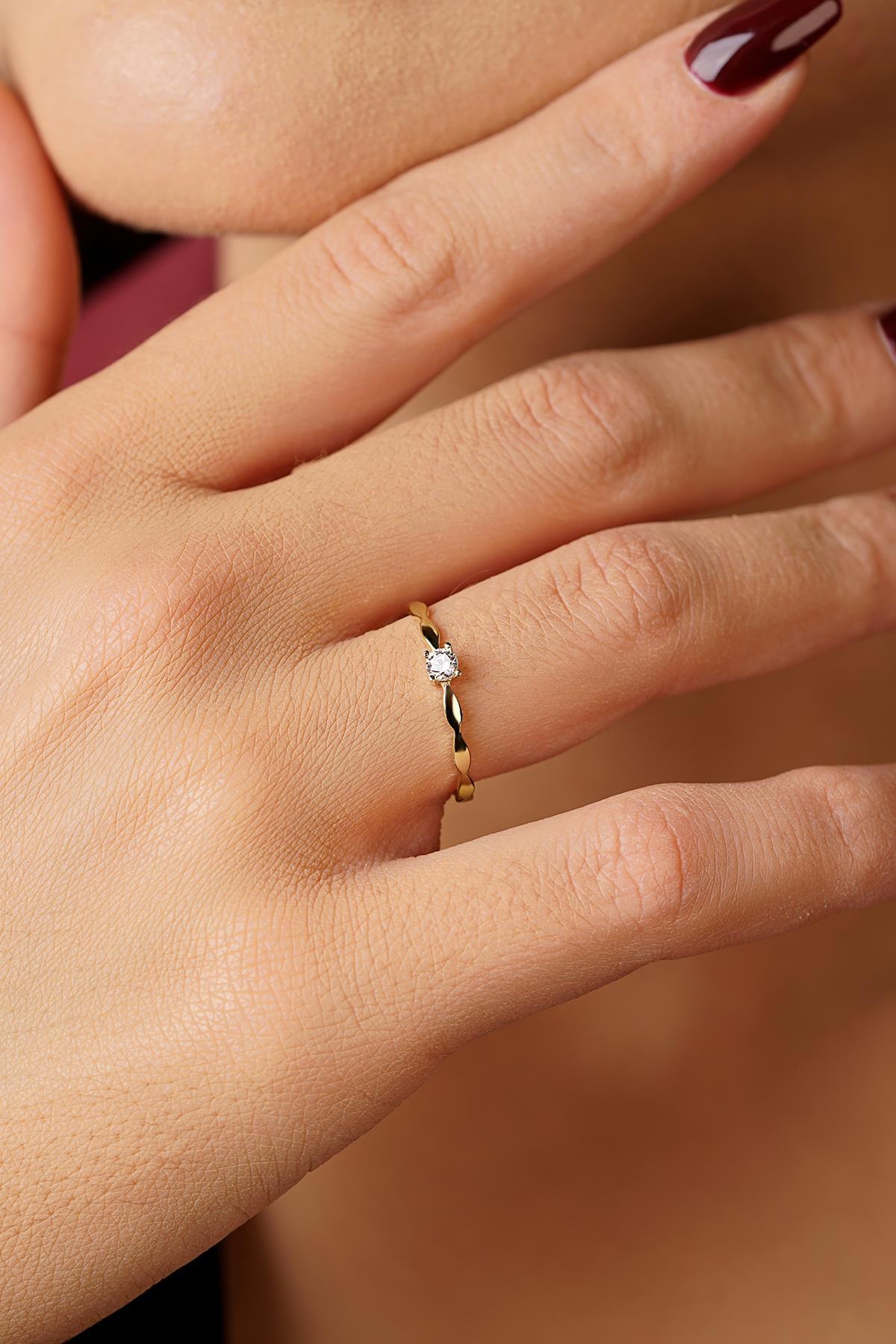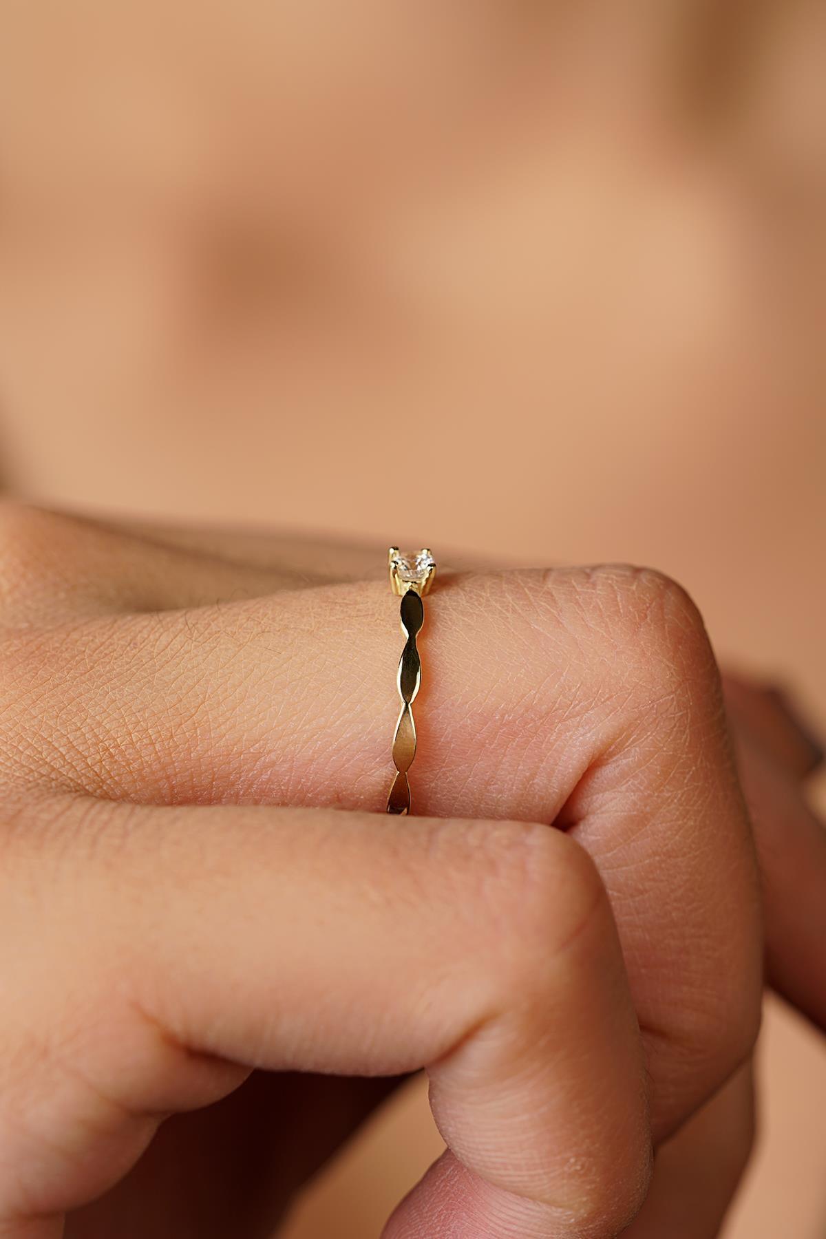 14 Ayar Altın Işıltılı Tek Taş Yüzük