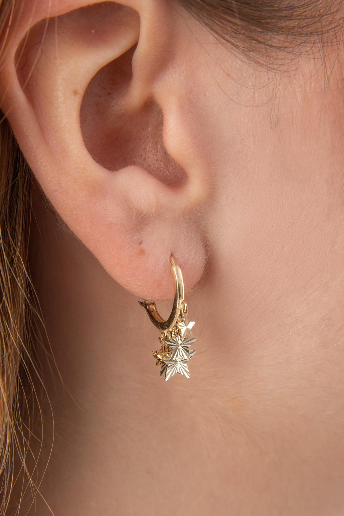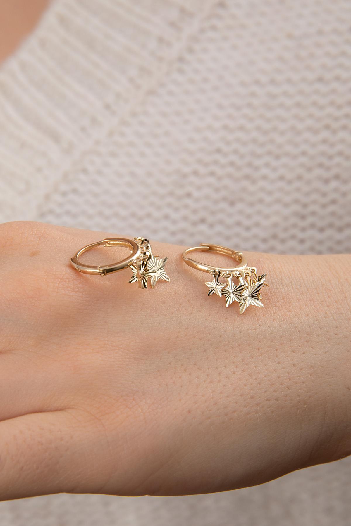 14 Ayar Altın Işıltılı Yıldız Sıralı Halka Küpe