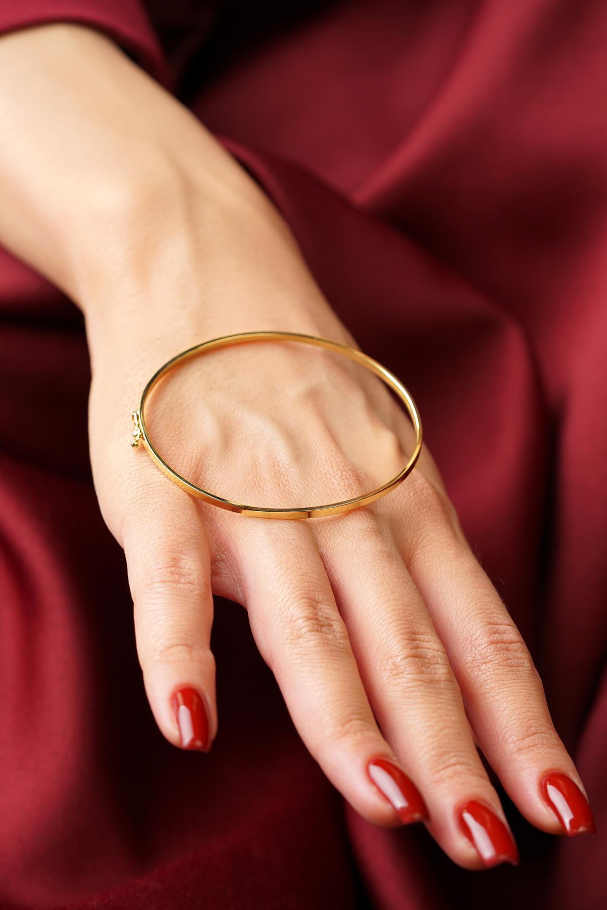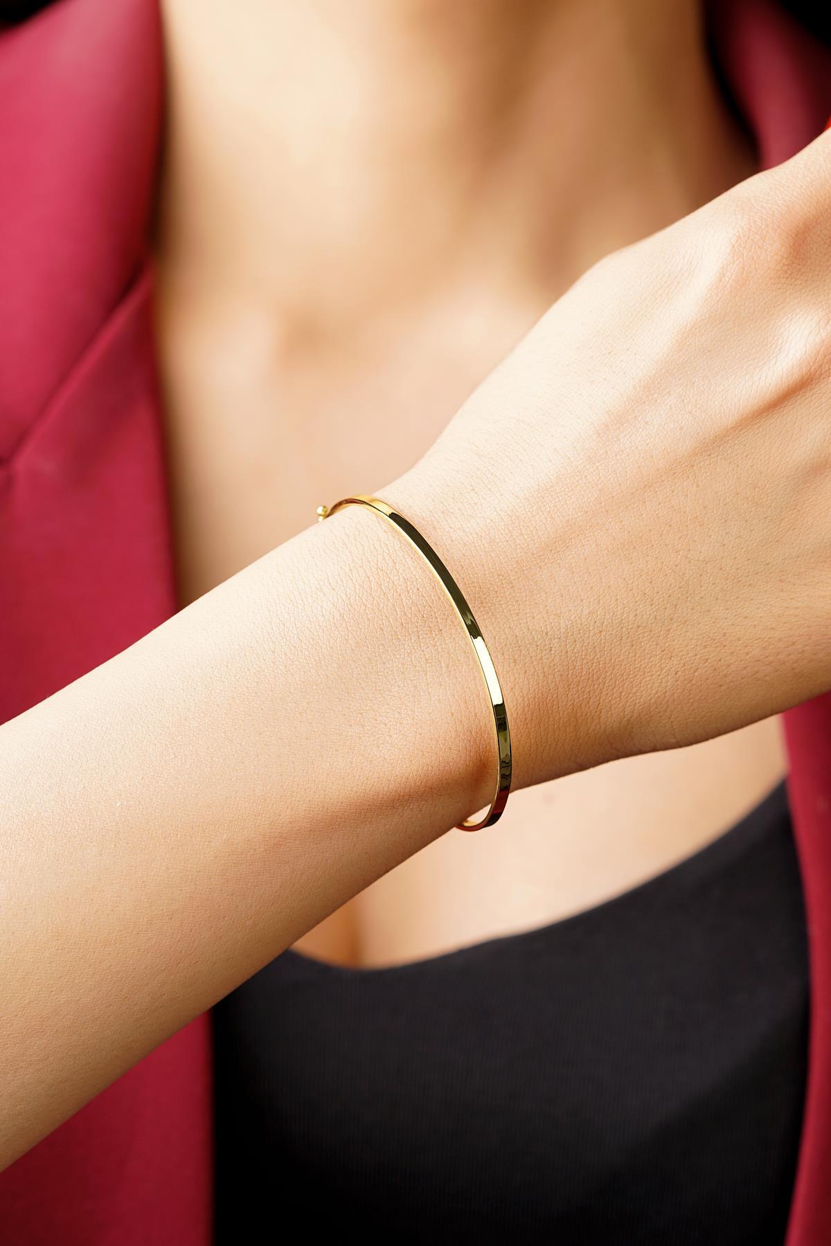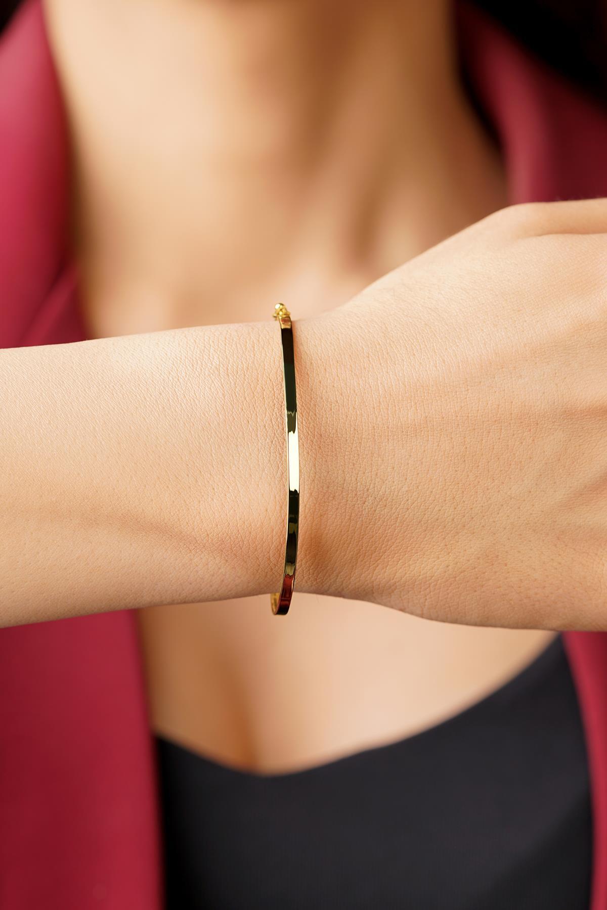 22 Ayar Görünümlü 14 Ayar Altın Köşeli Ajda Bilezik Kelepçe