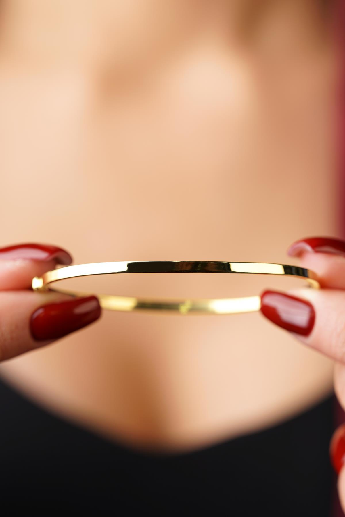 14 Ayar Altın Düz Ajda Kelepçe Bilezik