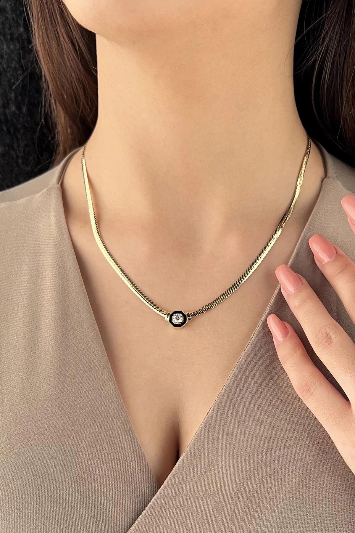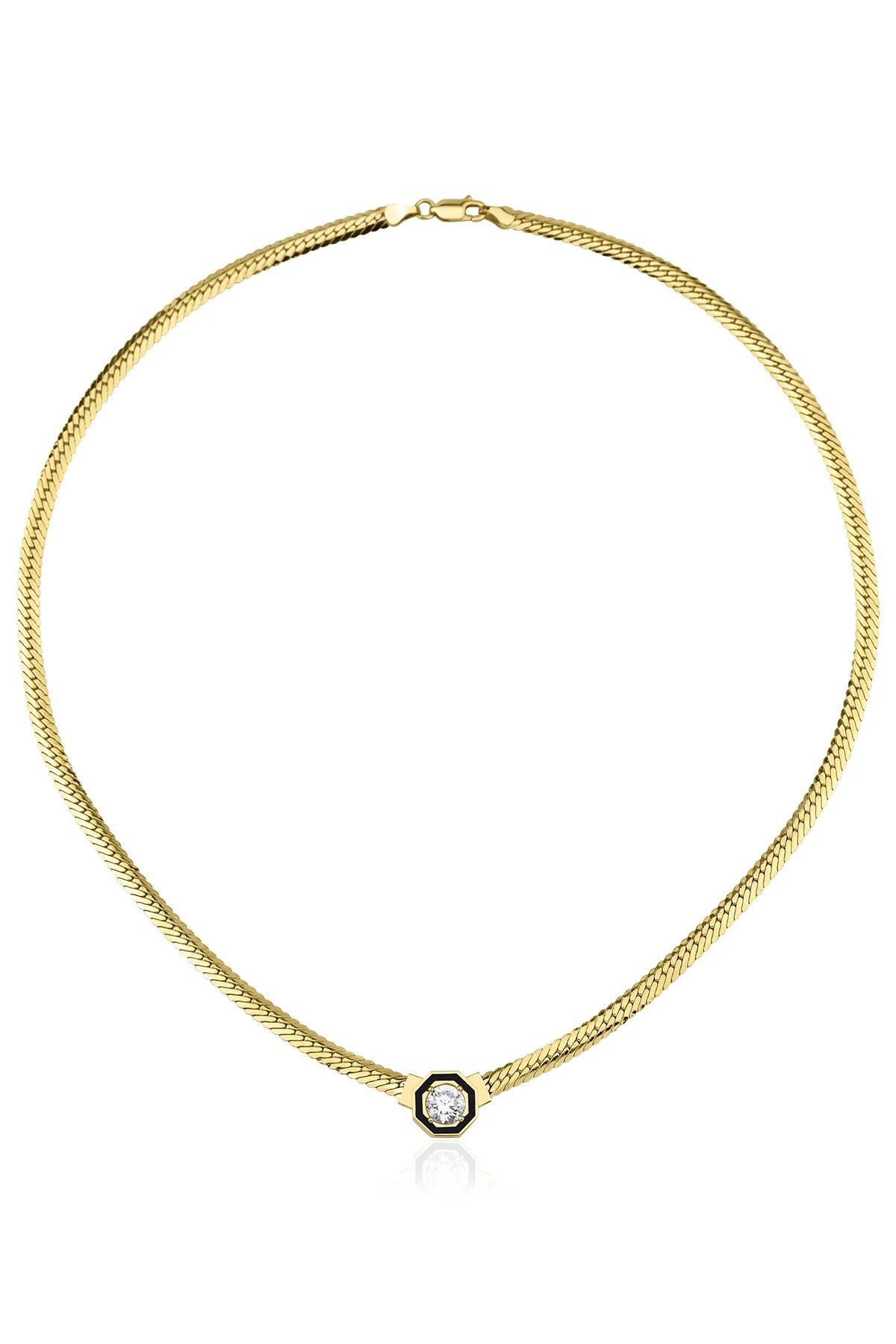 14 Ayar Altın Tektaş Detaylı İtalyan Kolye