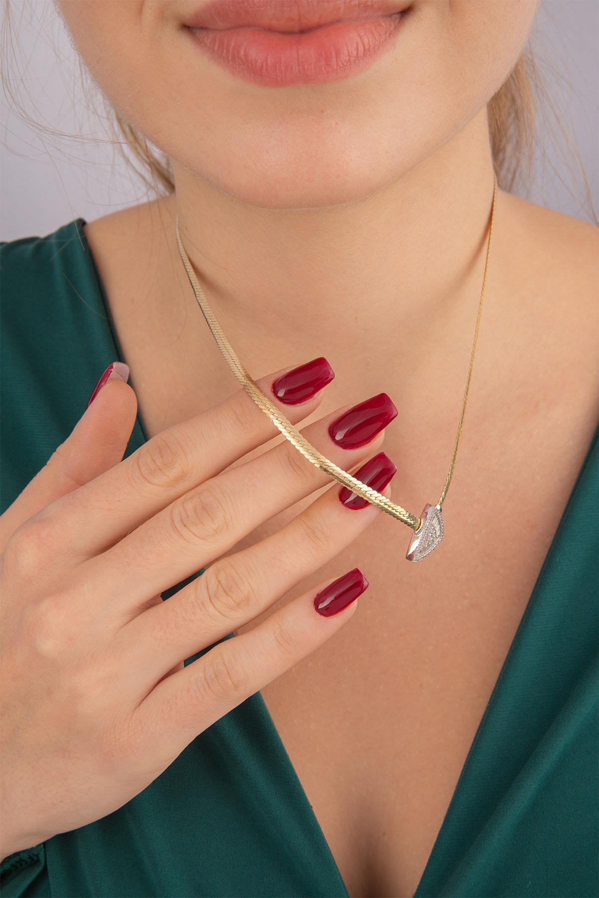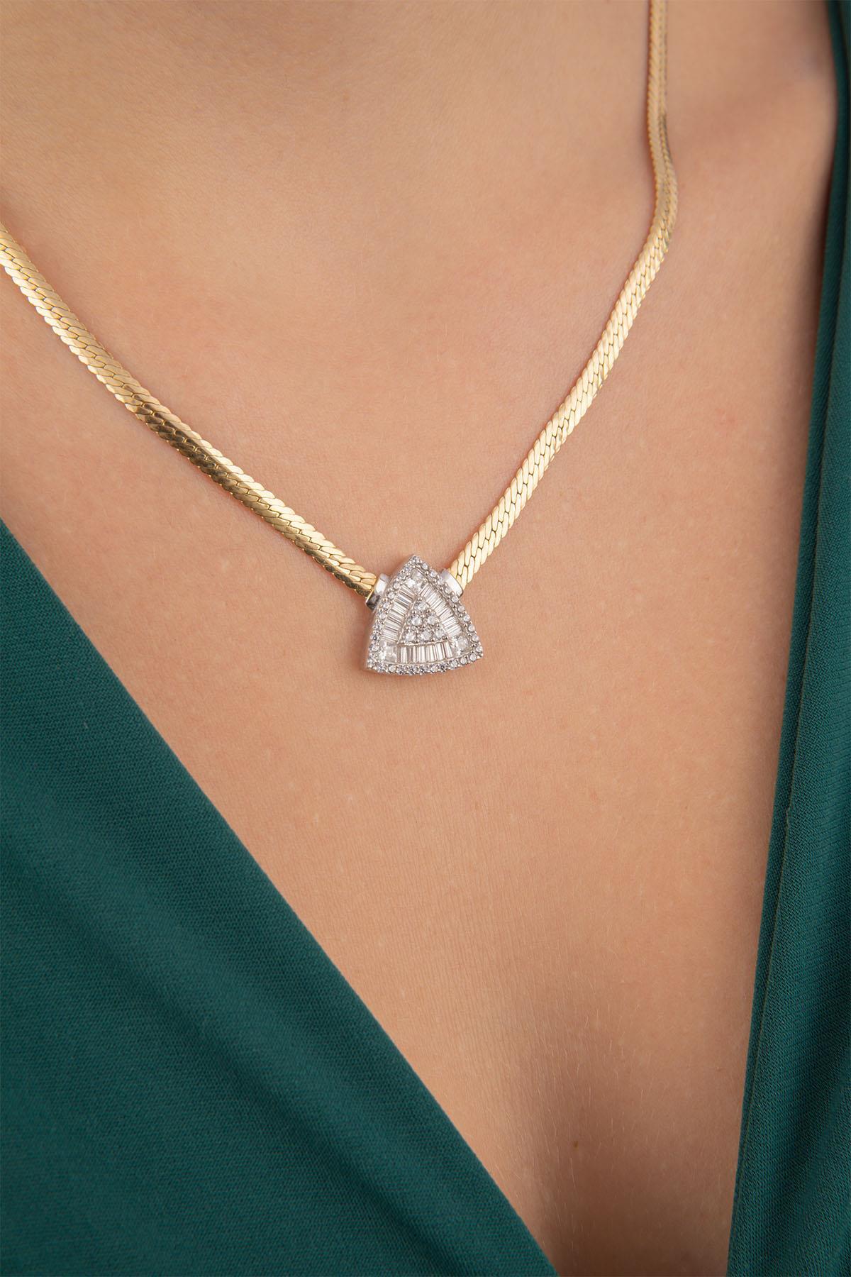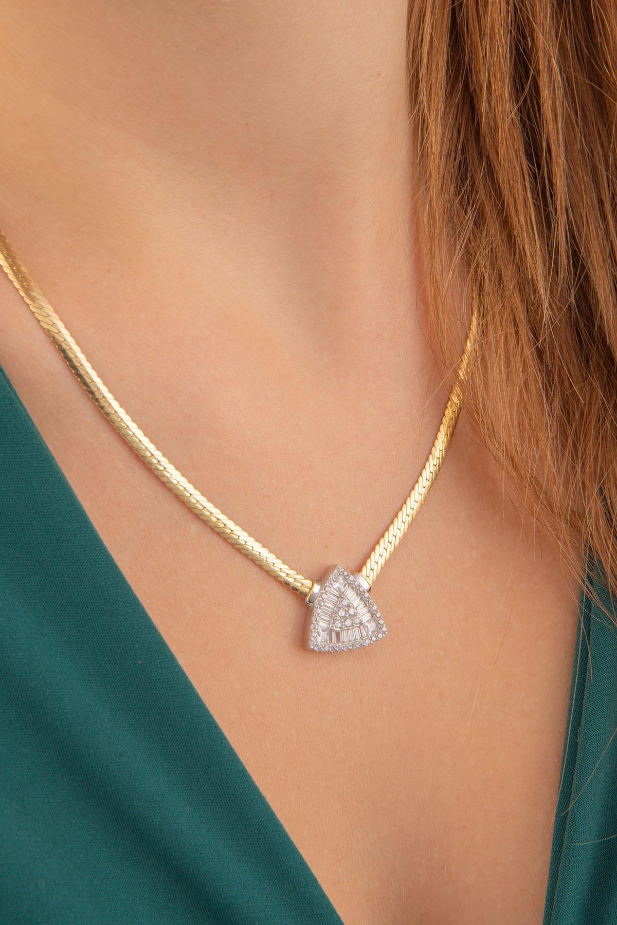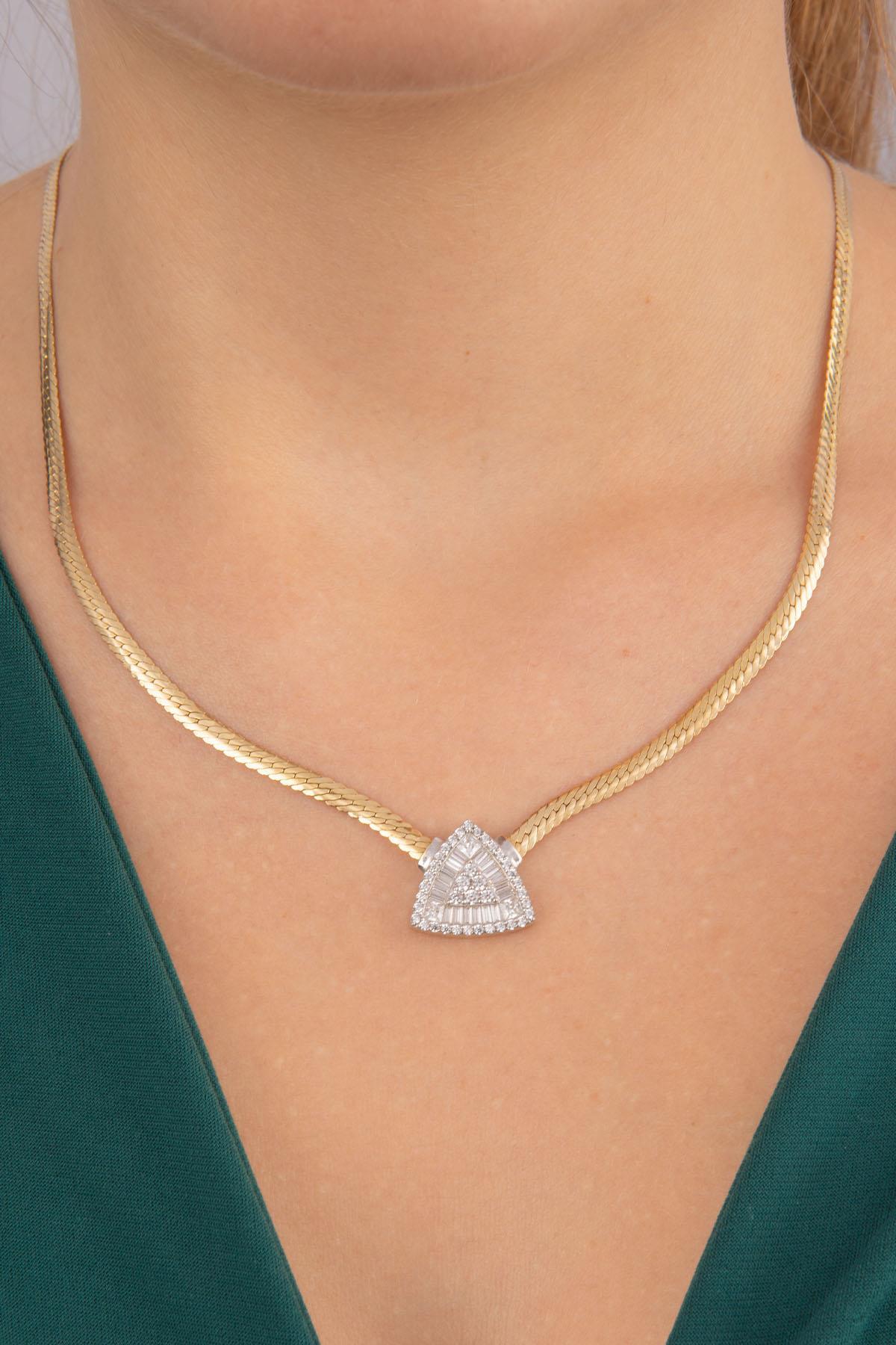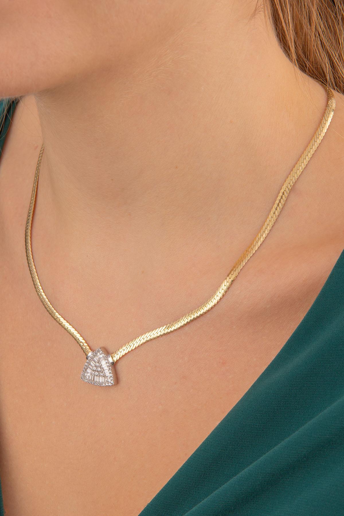 14 Ayar Altın İtalyan Üçgen Baget Kolye