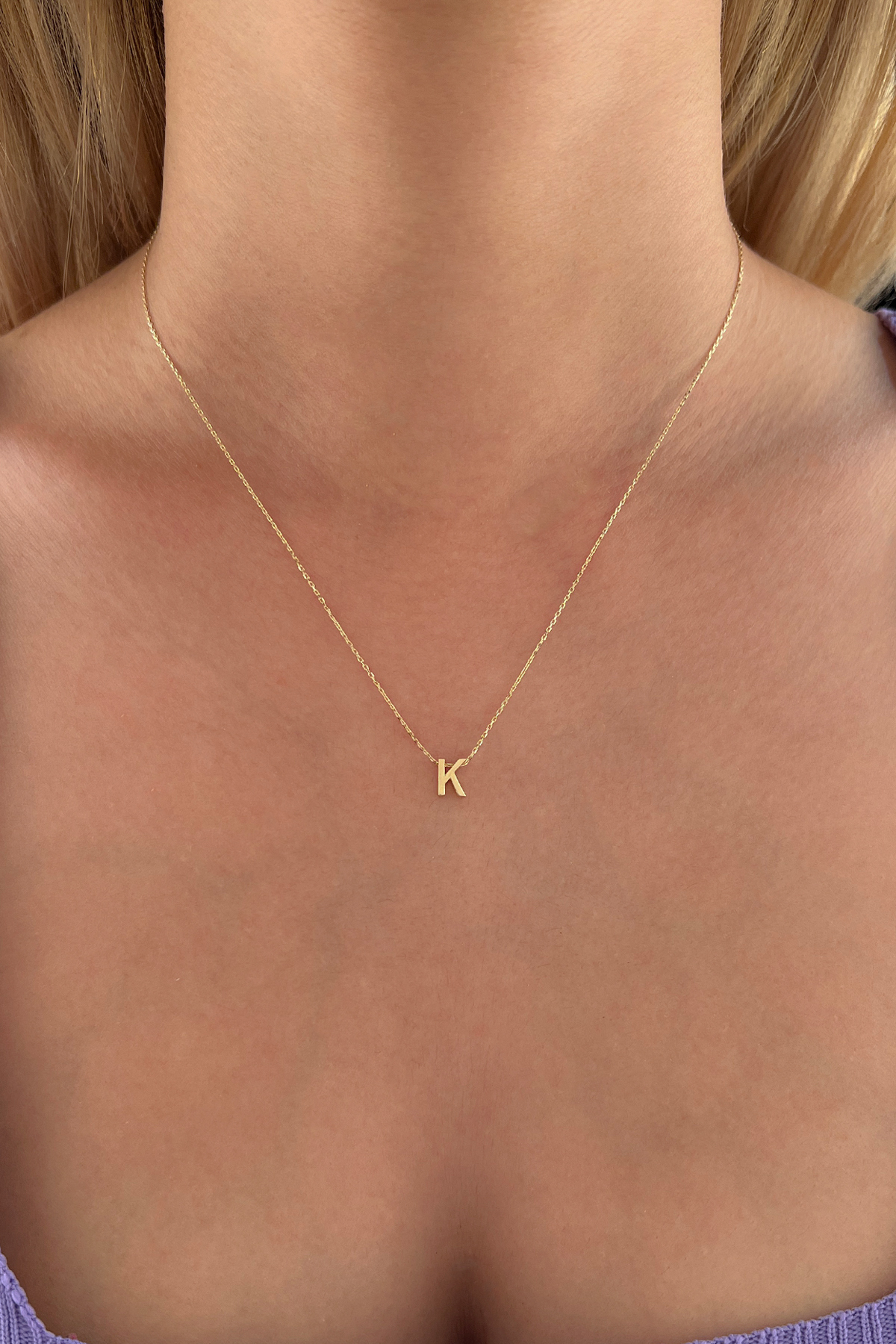 14 Ayar Altın Taşlı Ş Harfli Kolye