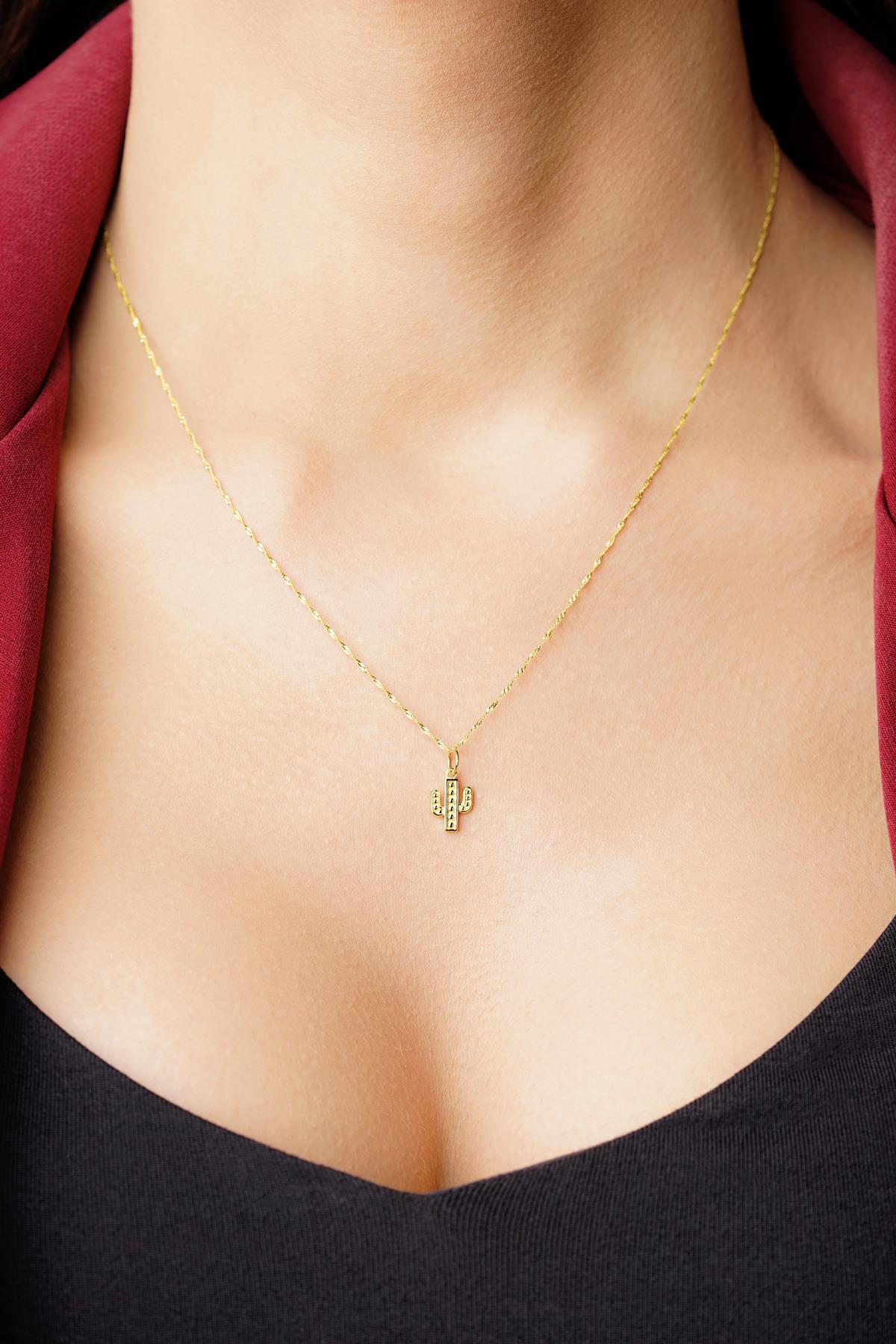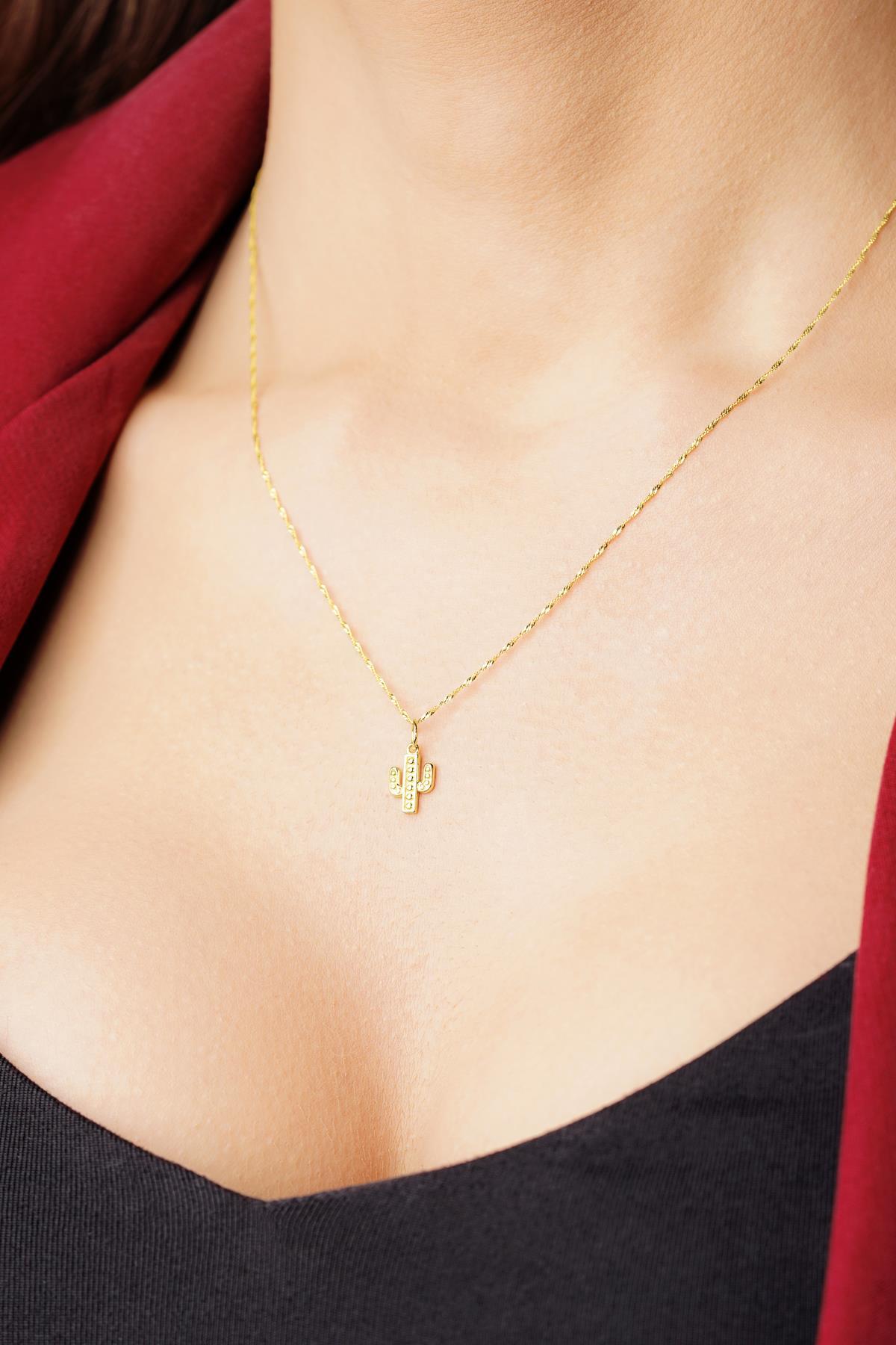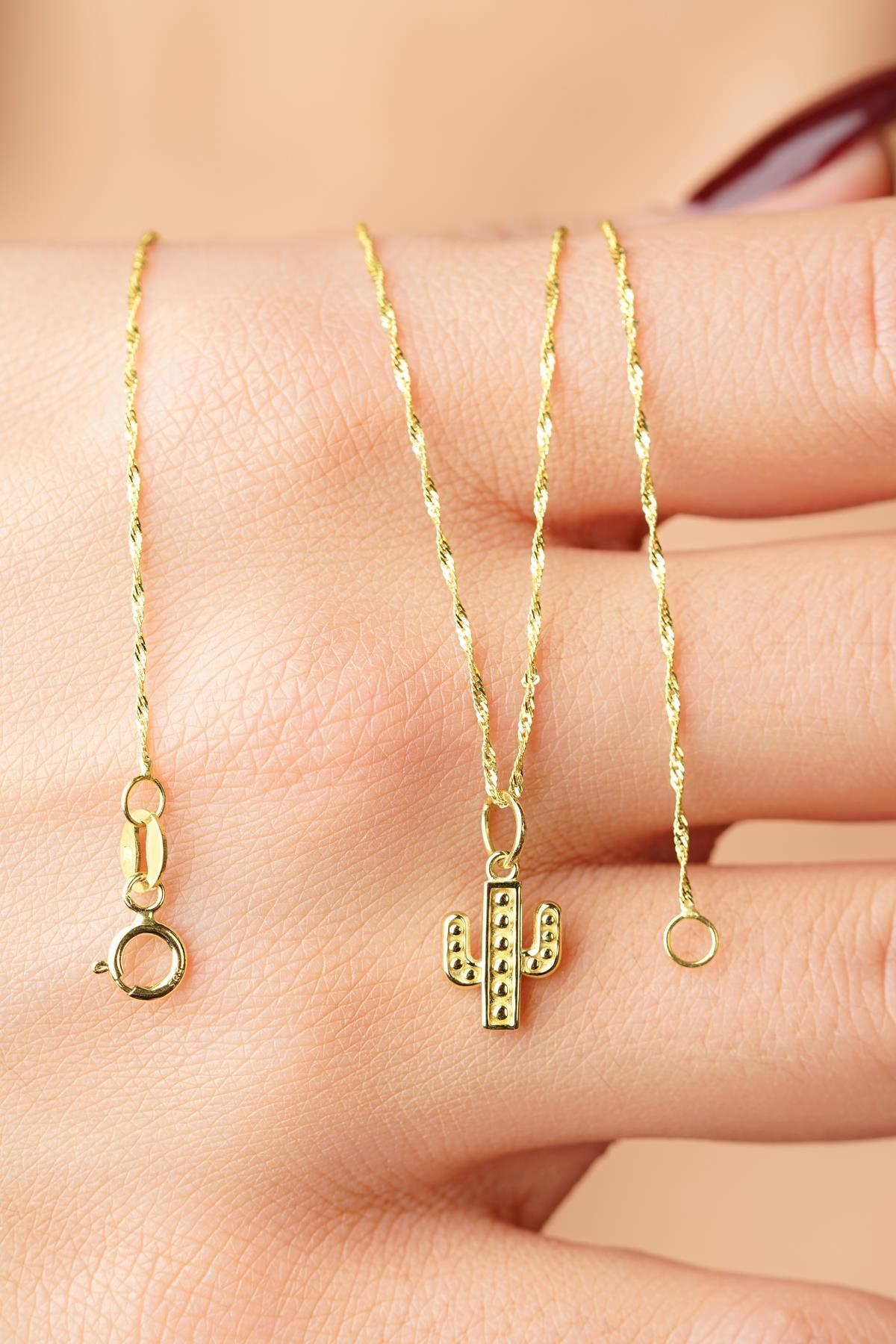 14 Ayar Altın Kaktüs Detaylı Singapur Zincir Kolye