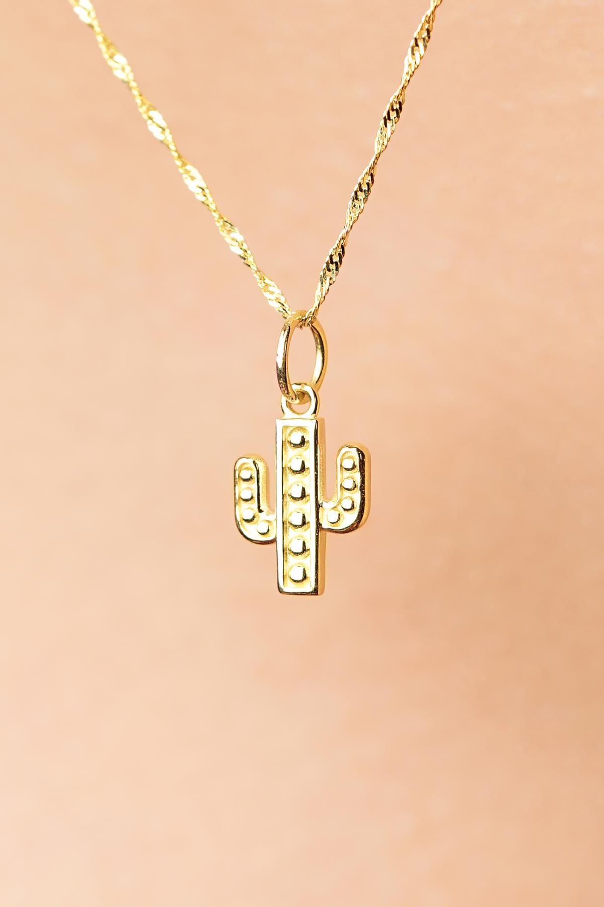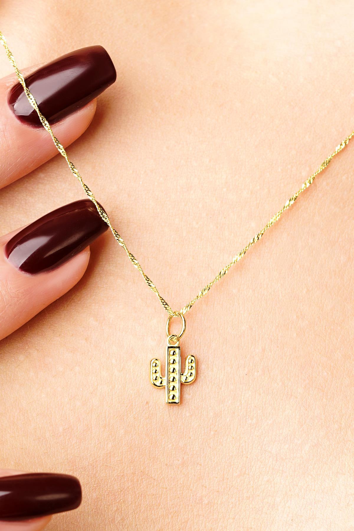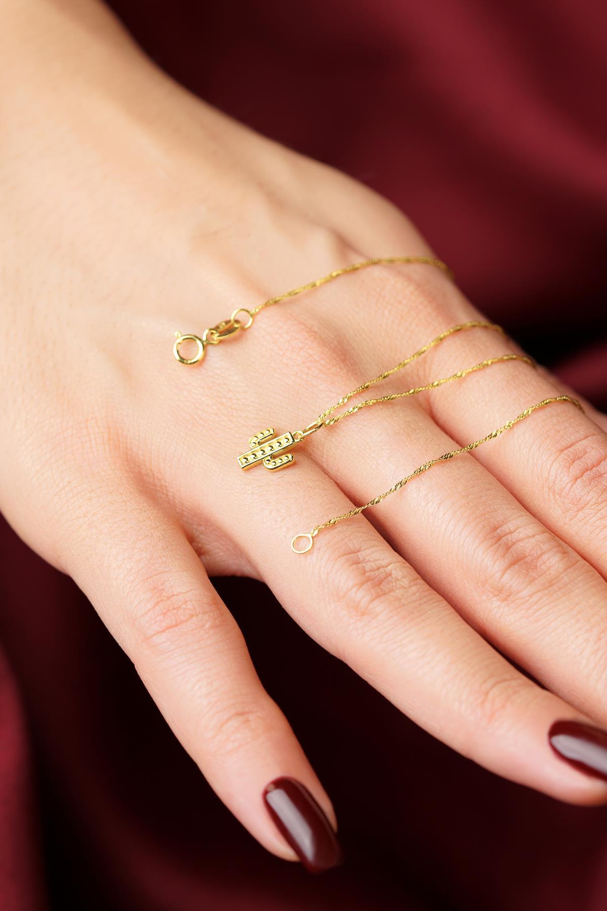 14 Ayar Altın Kaktüs Detaylı Singapur Zincir Kolye