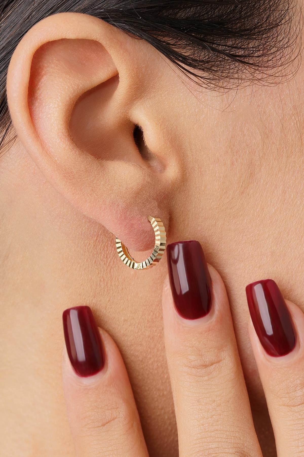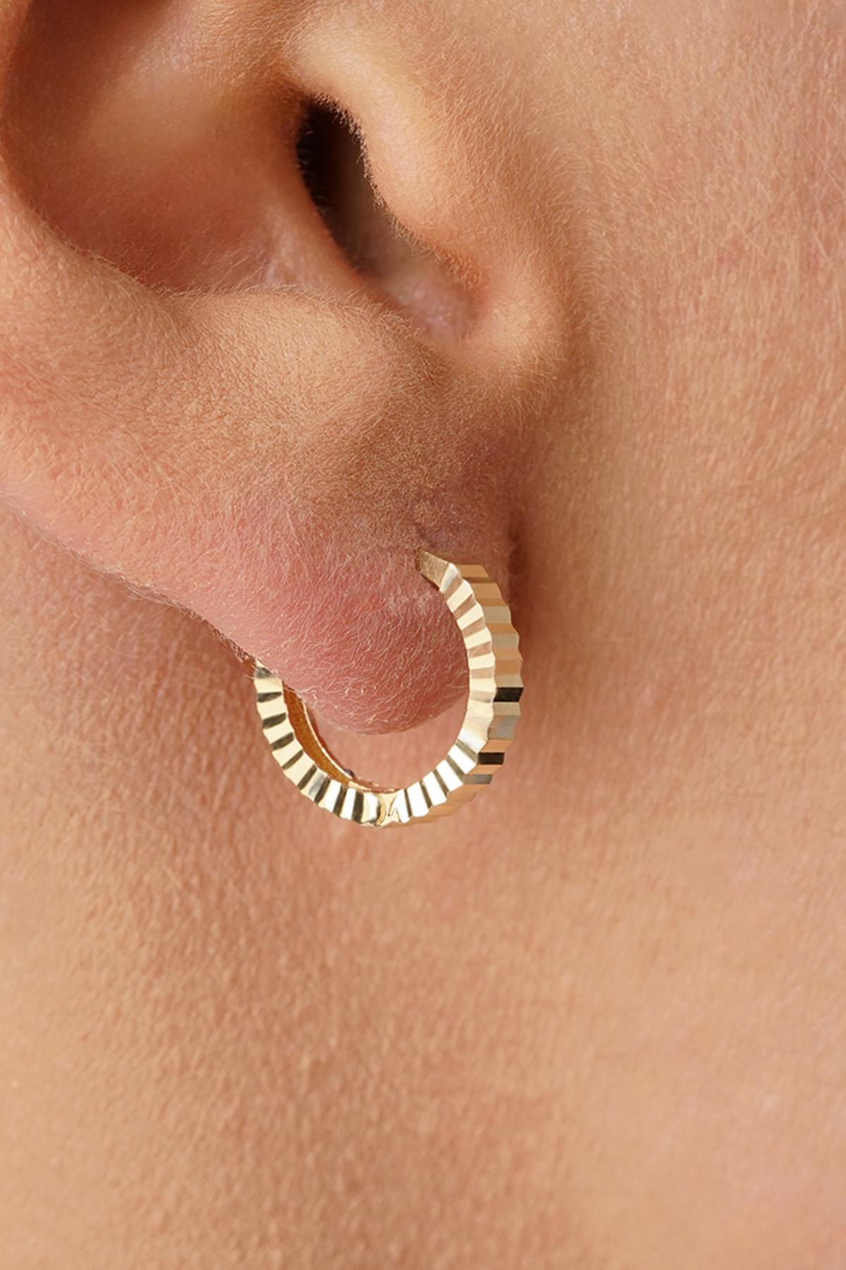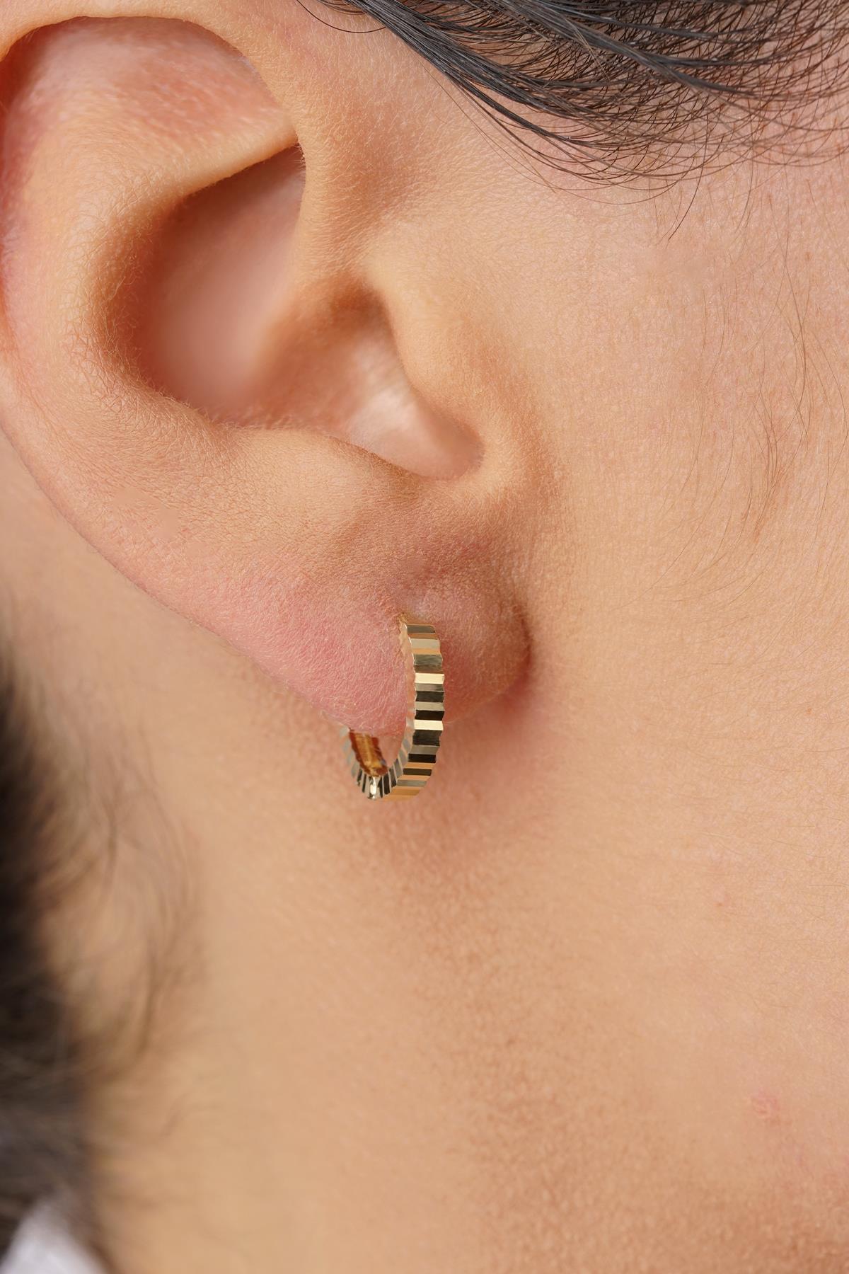 14 Ayar Altın Kalem İşlemeli Işıltı Halka Küpe Mini