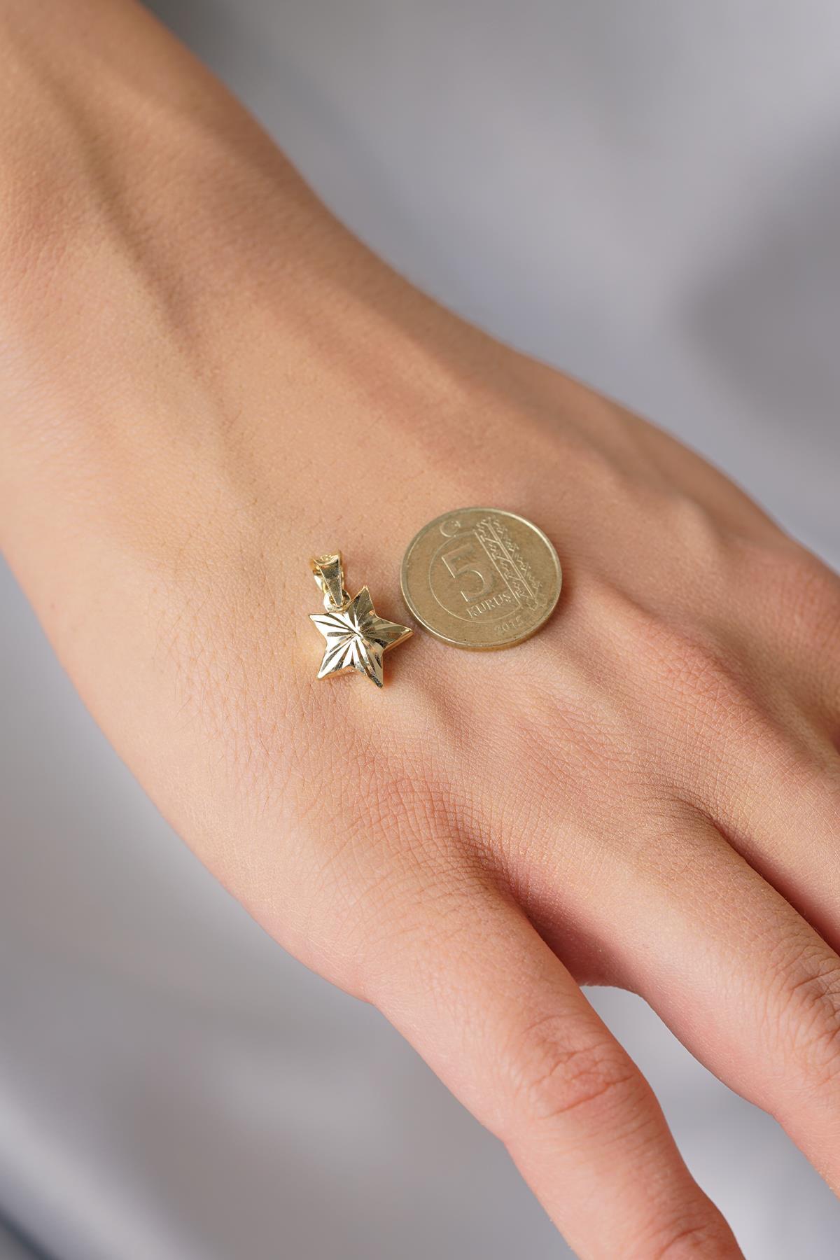 14 Ayar Altın Kalemli Küçük Yıldız Kolye Ucu