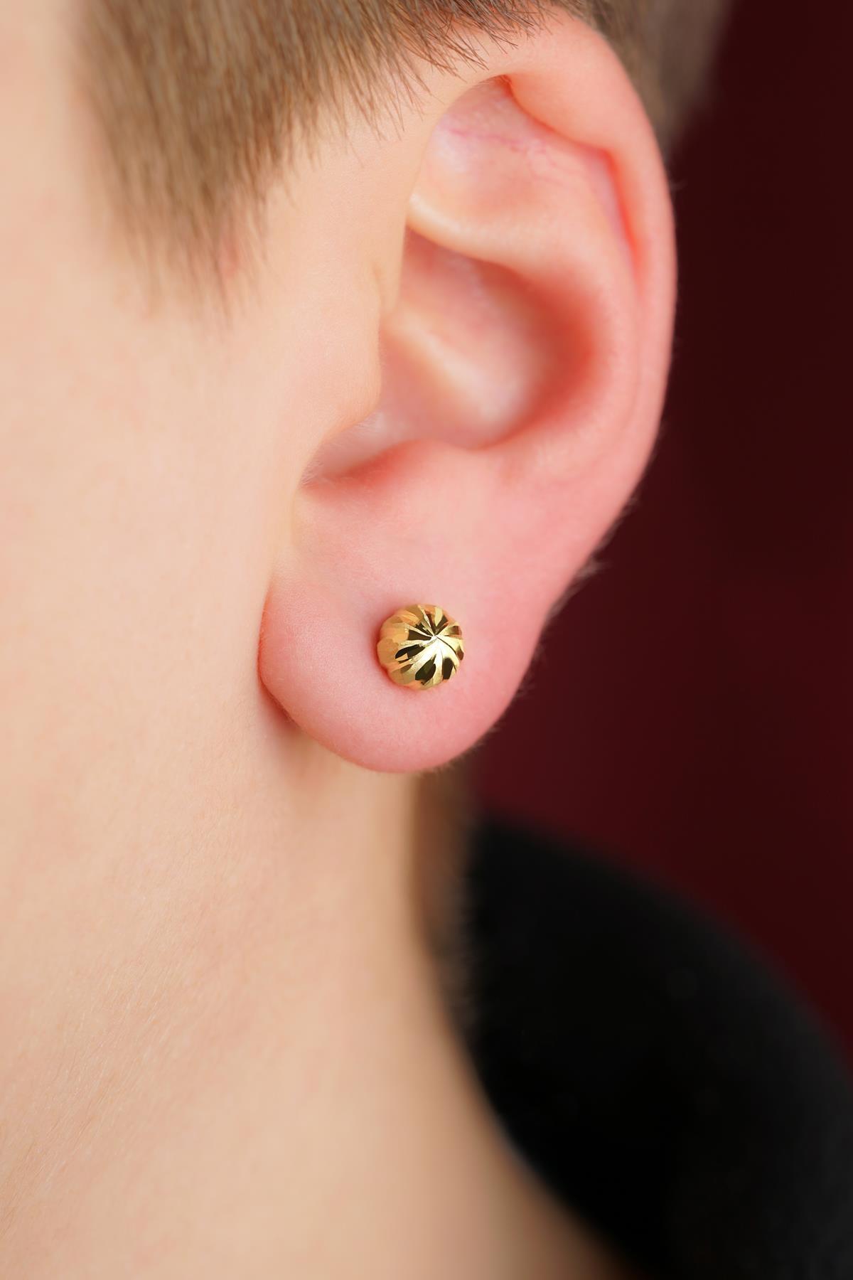 14 Ayar Altın Kalemli Top Küpe Erkek