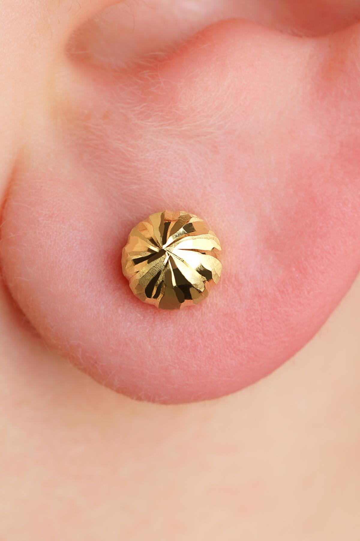 14 Ayar Altın Mini Yuvarlak Top Küpe