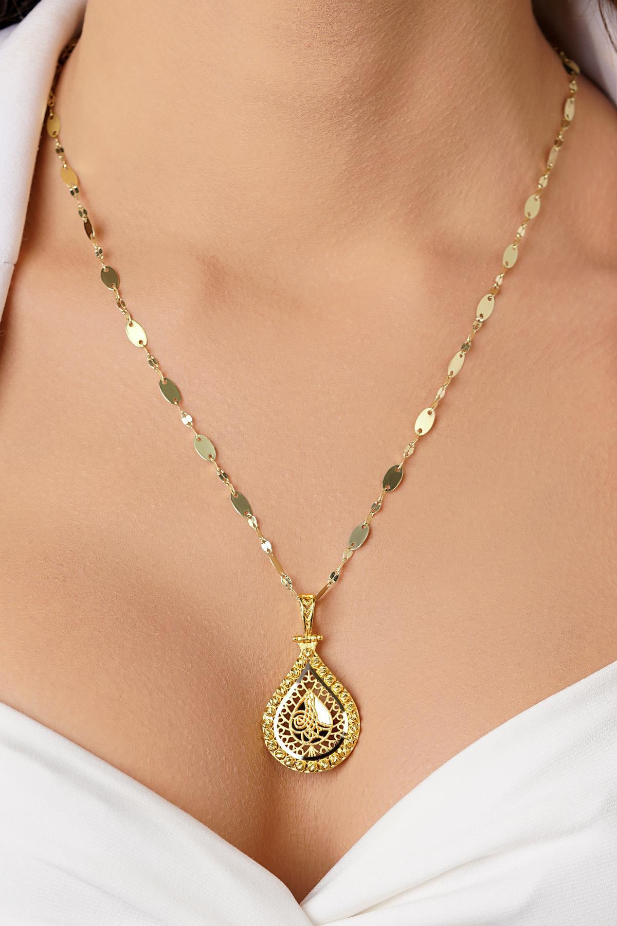 14 Ayar Altın Dorika Top Detaylı Tuğra Kolye