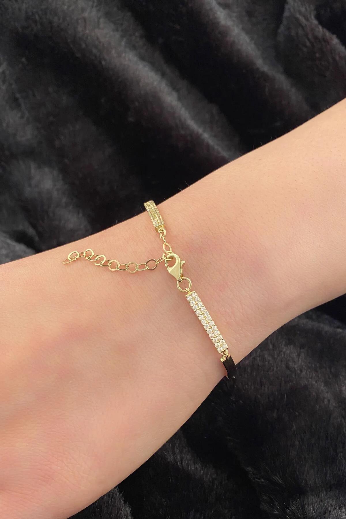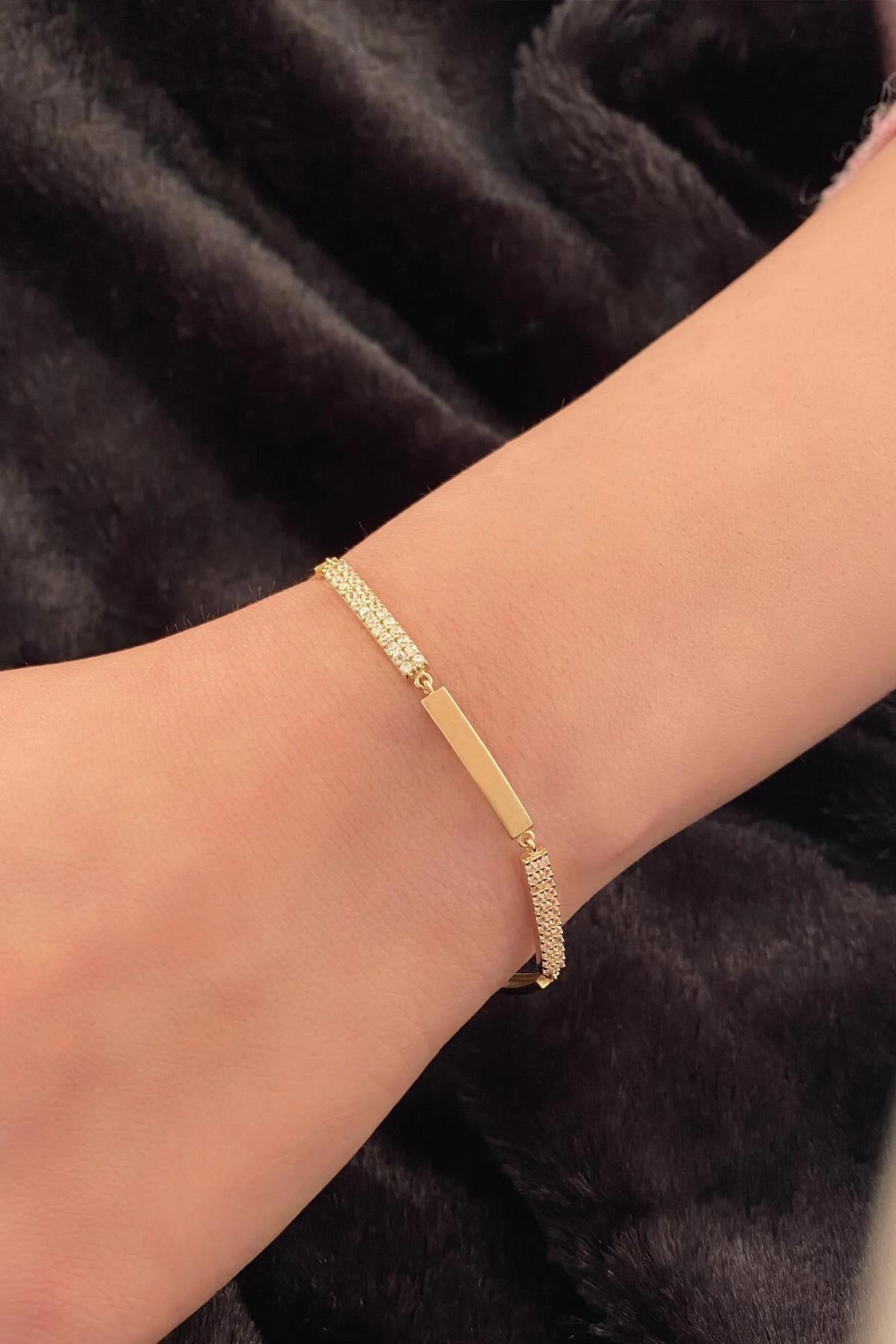 14 Ayar Altın Taşlı Kalın Şerit Modeli Bileklik