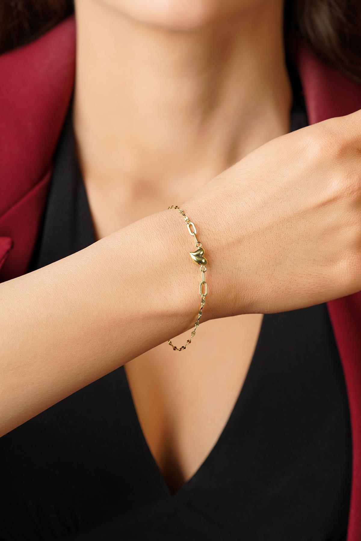 14 Ayar Altın Dorika Top Detaylı Kalpli Bileklik