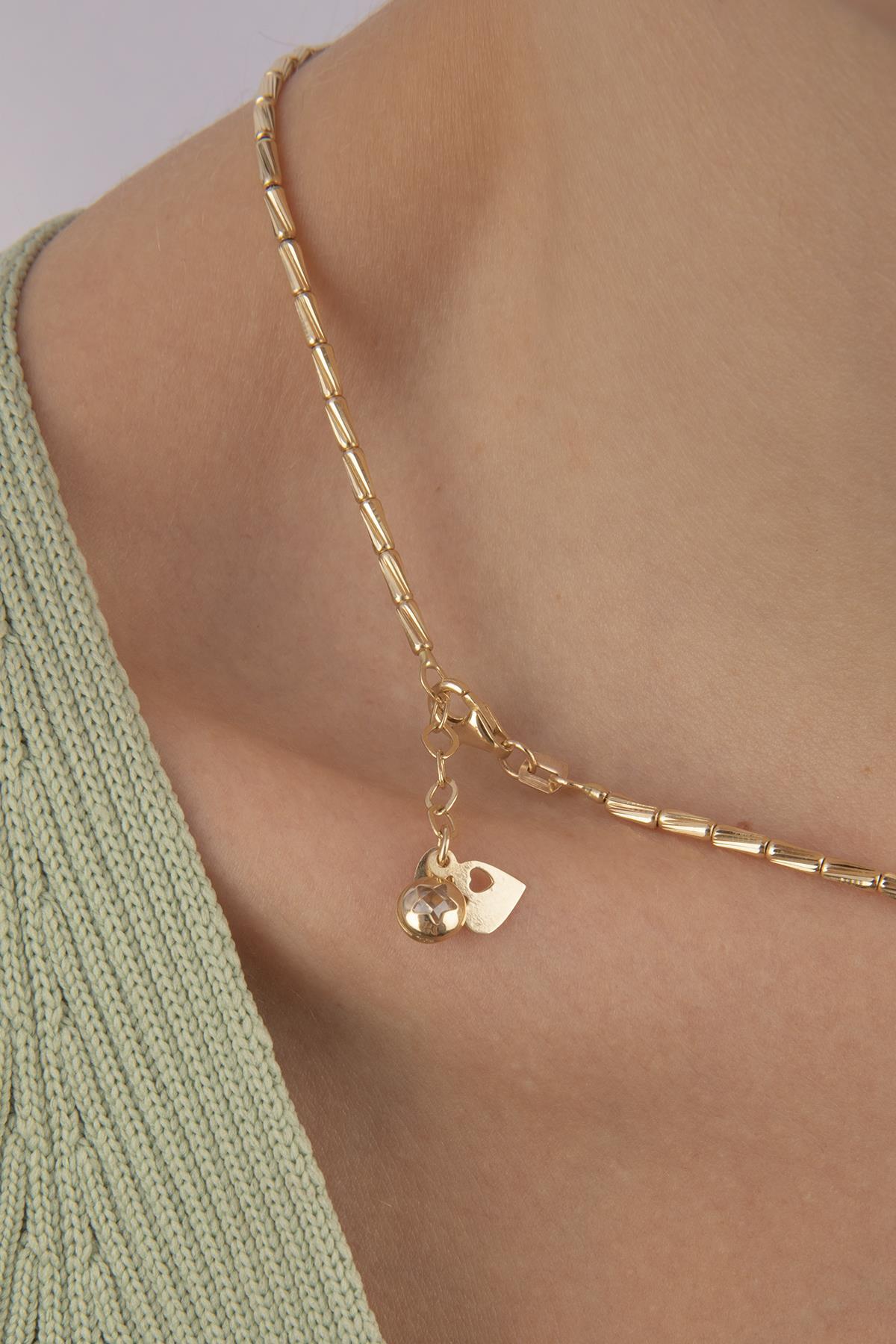 14 Ayar Altın Kalp Detaylı Roller Kolye