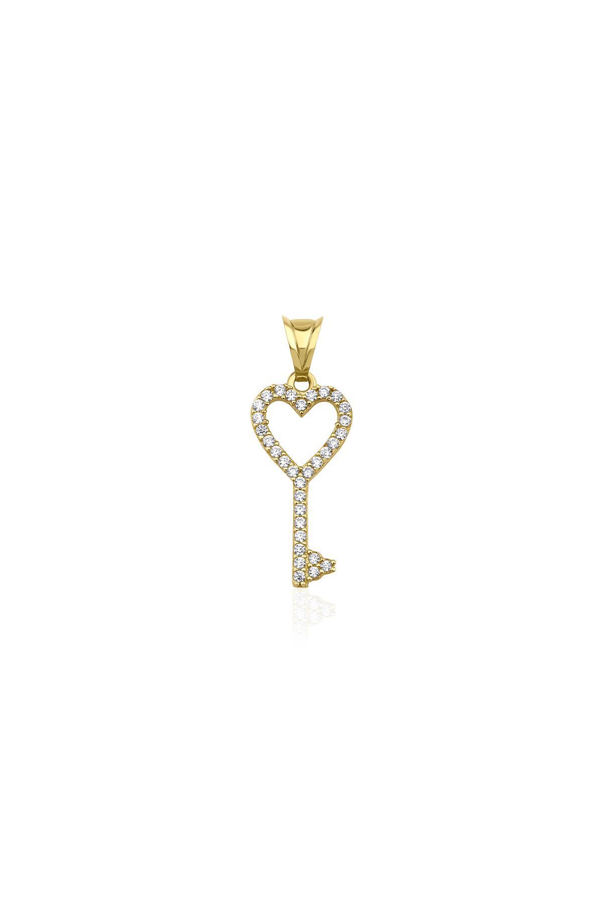 14 Ayar Altın Kalpli Anahtar Kolye Ucu