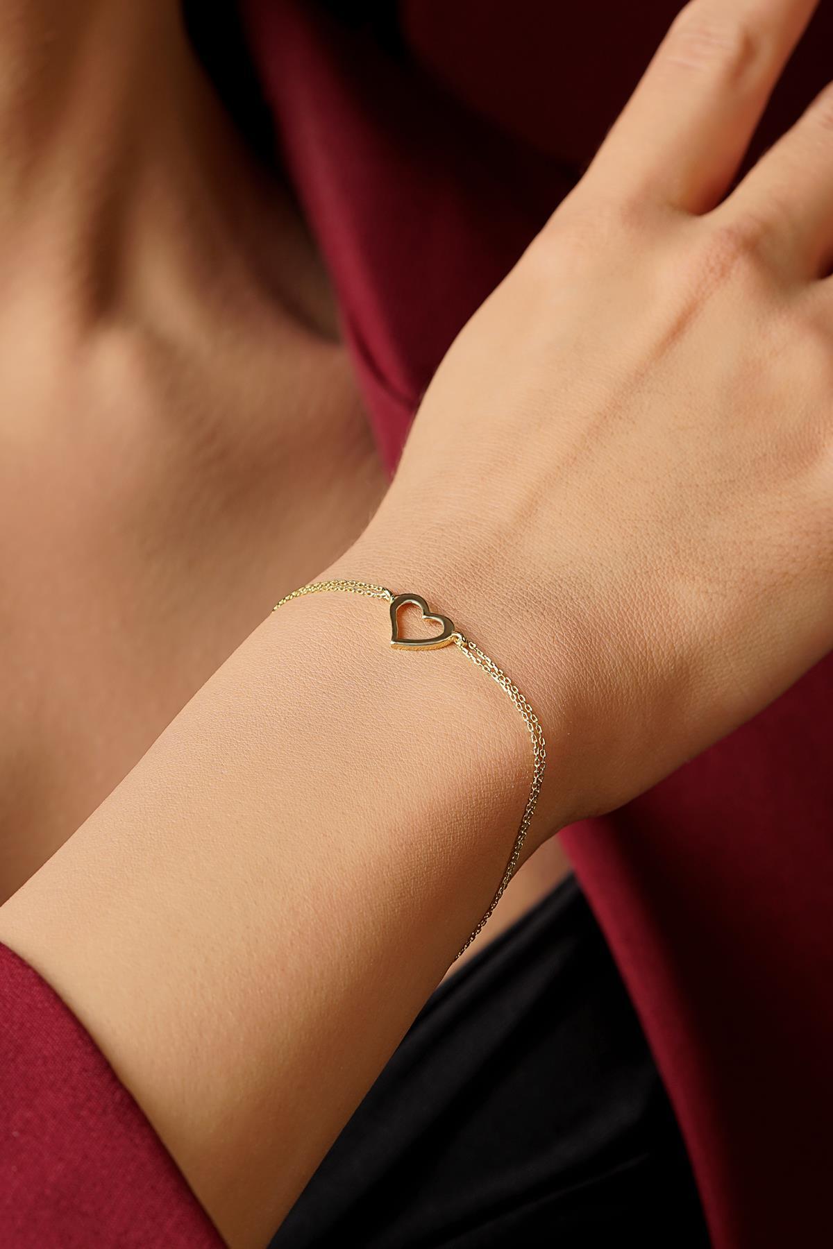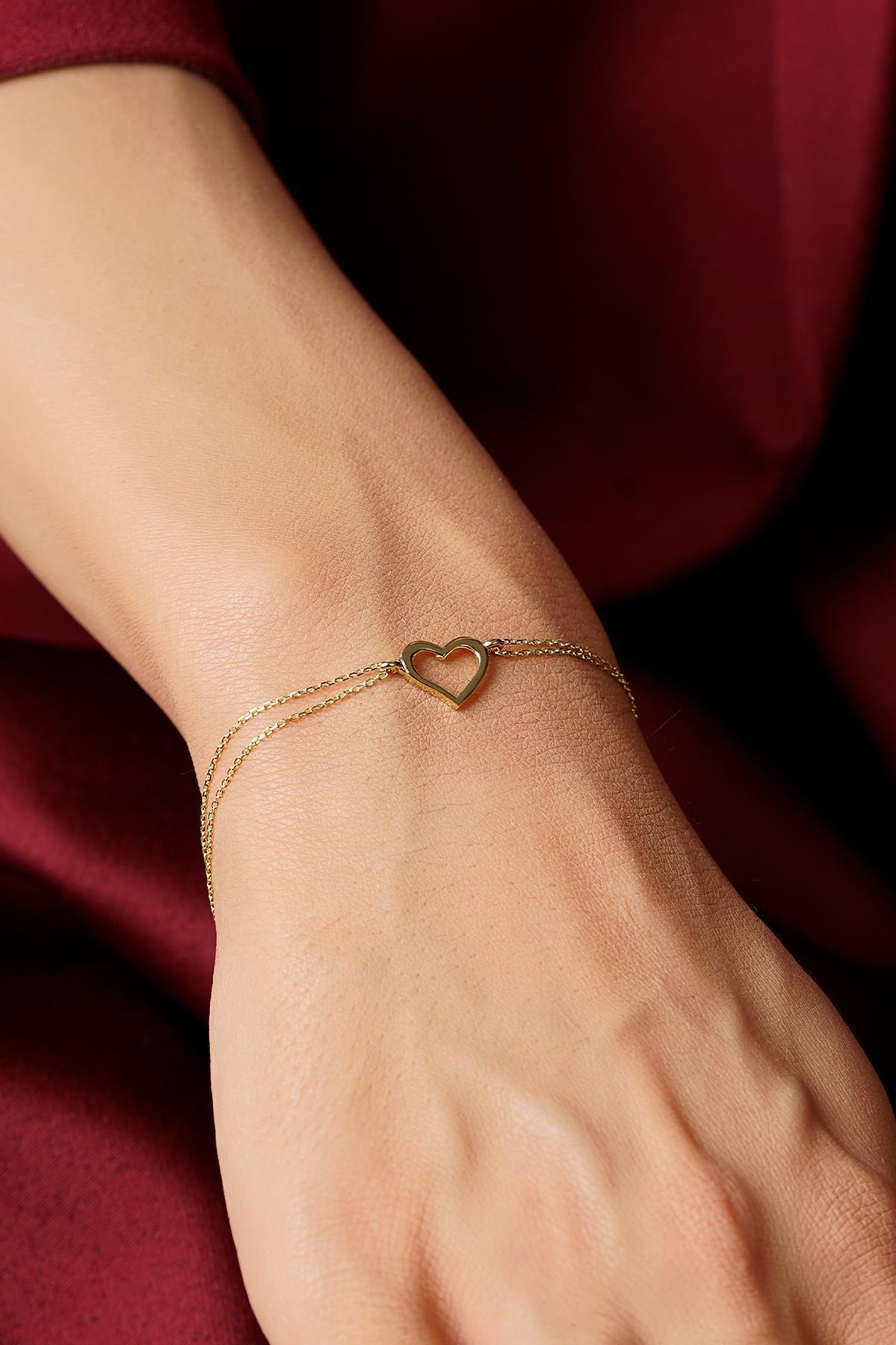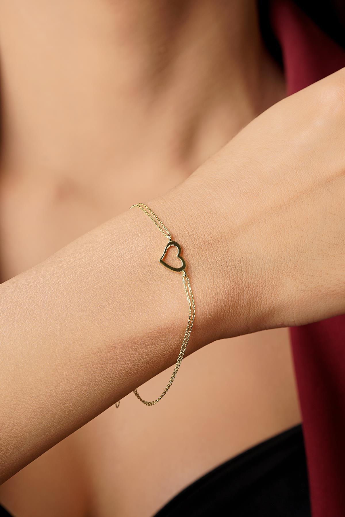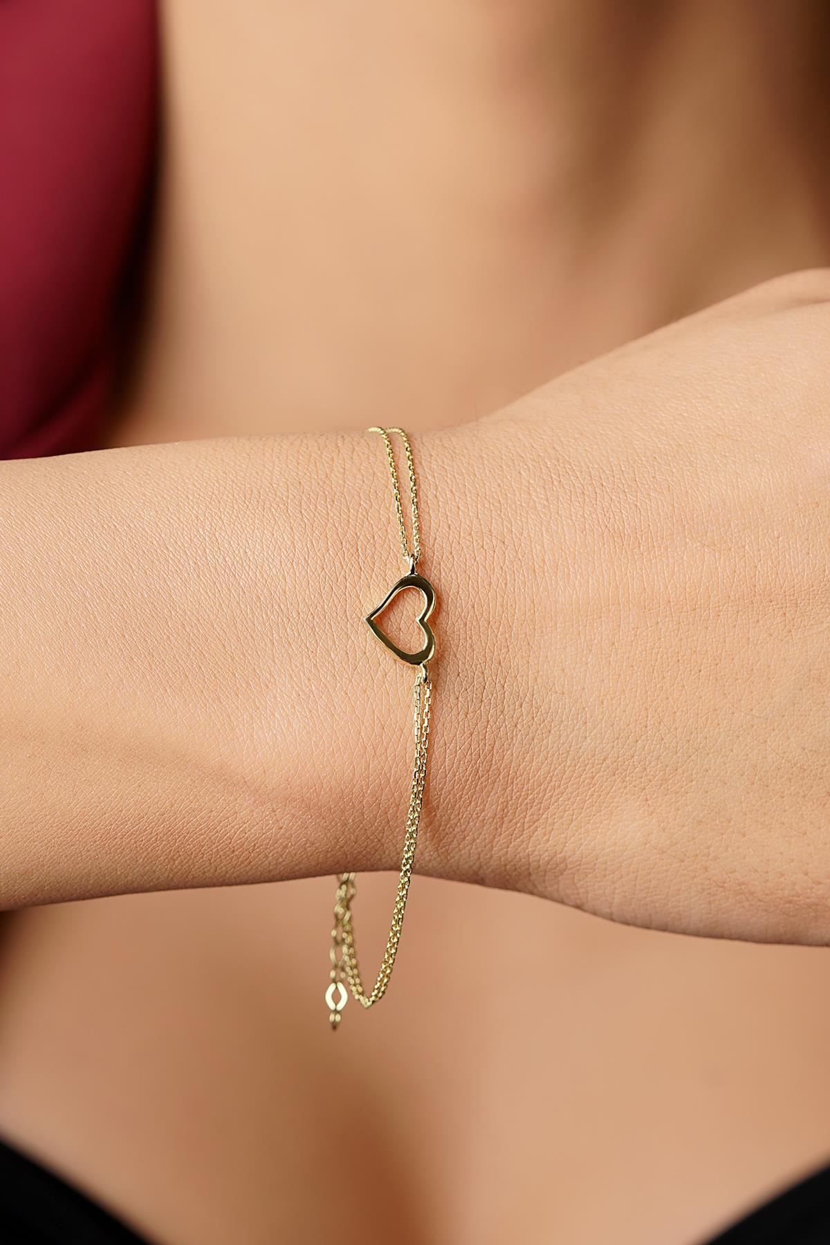14 Ayar Altın Kalpli Aşk Bileklik