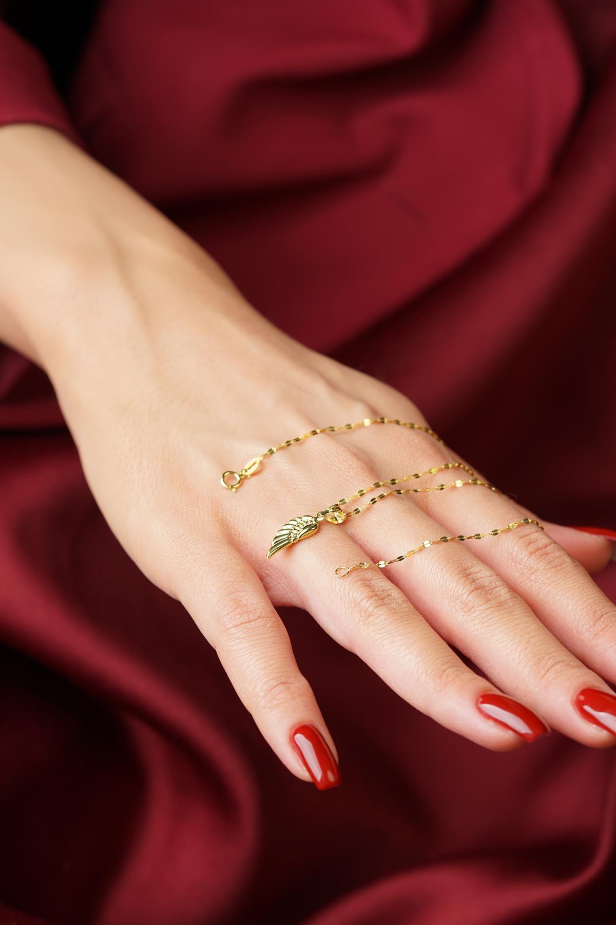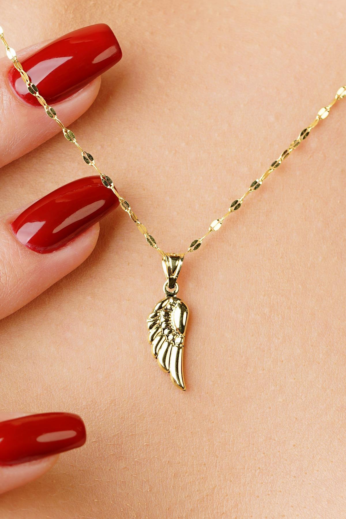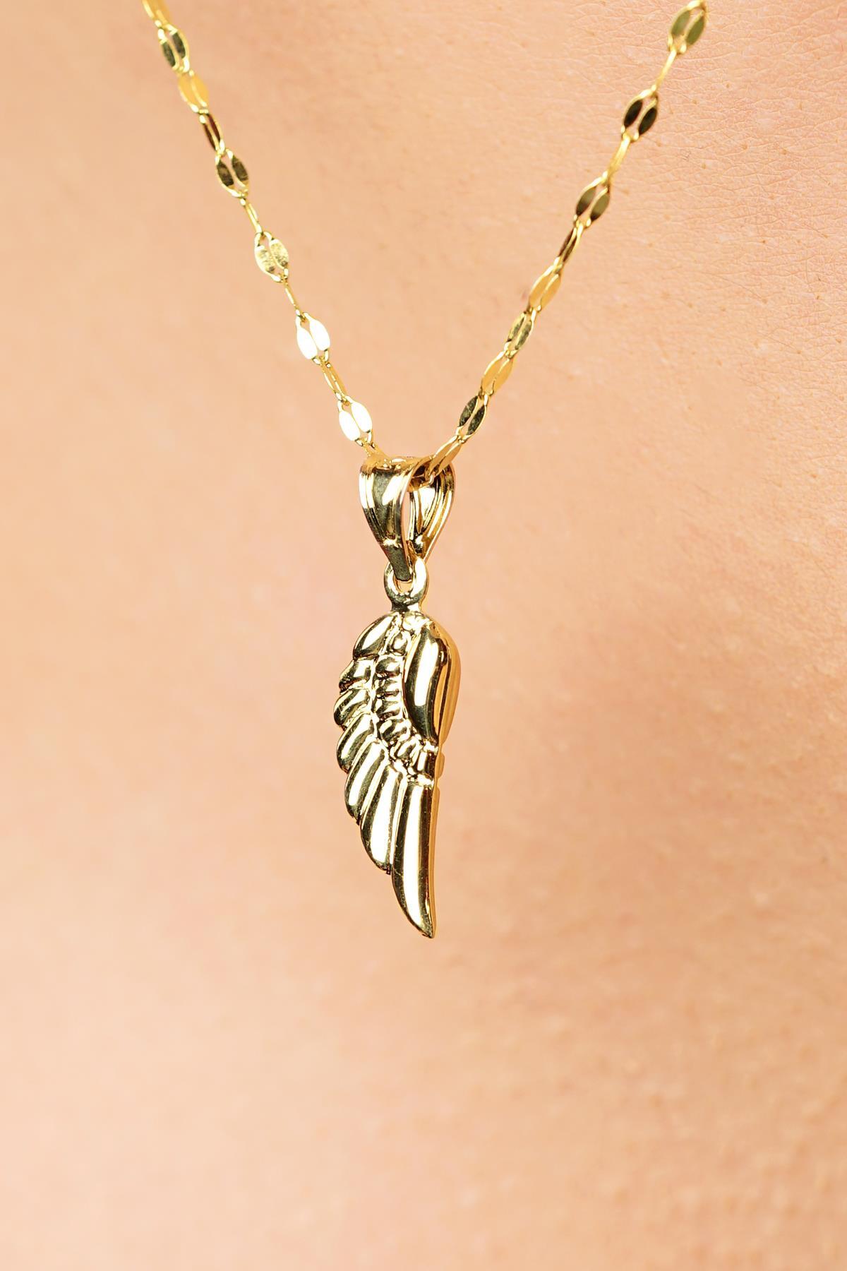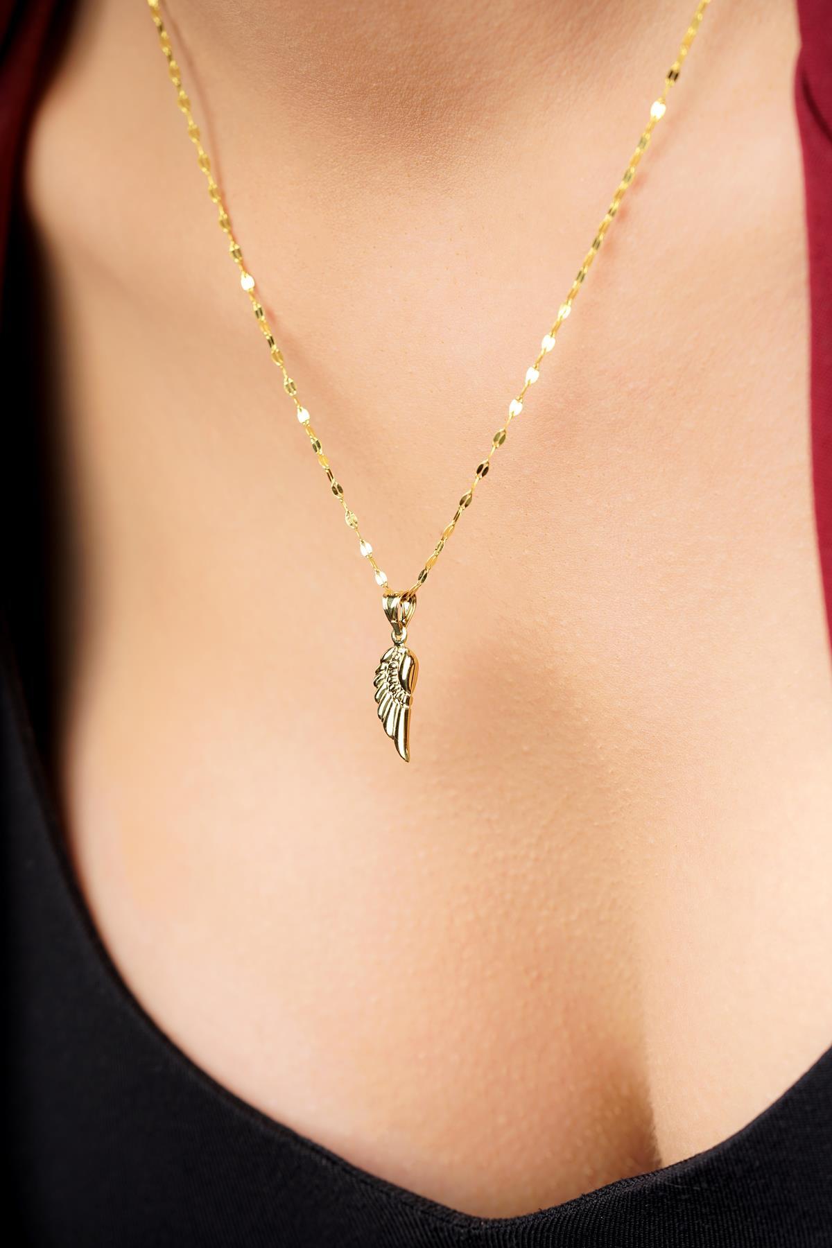 14 Ayar Altın Kanat Detaylı Aynalı Zincir Kolye