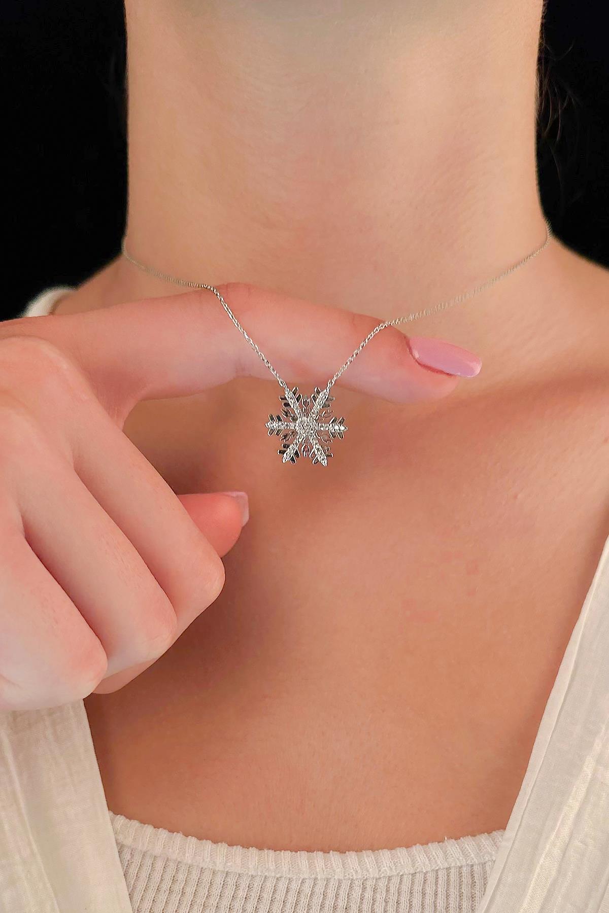 14 Ayar Altın Kar Tanesi Kolye Taşlı