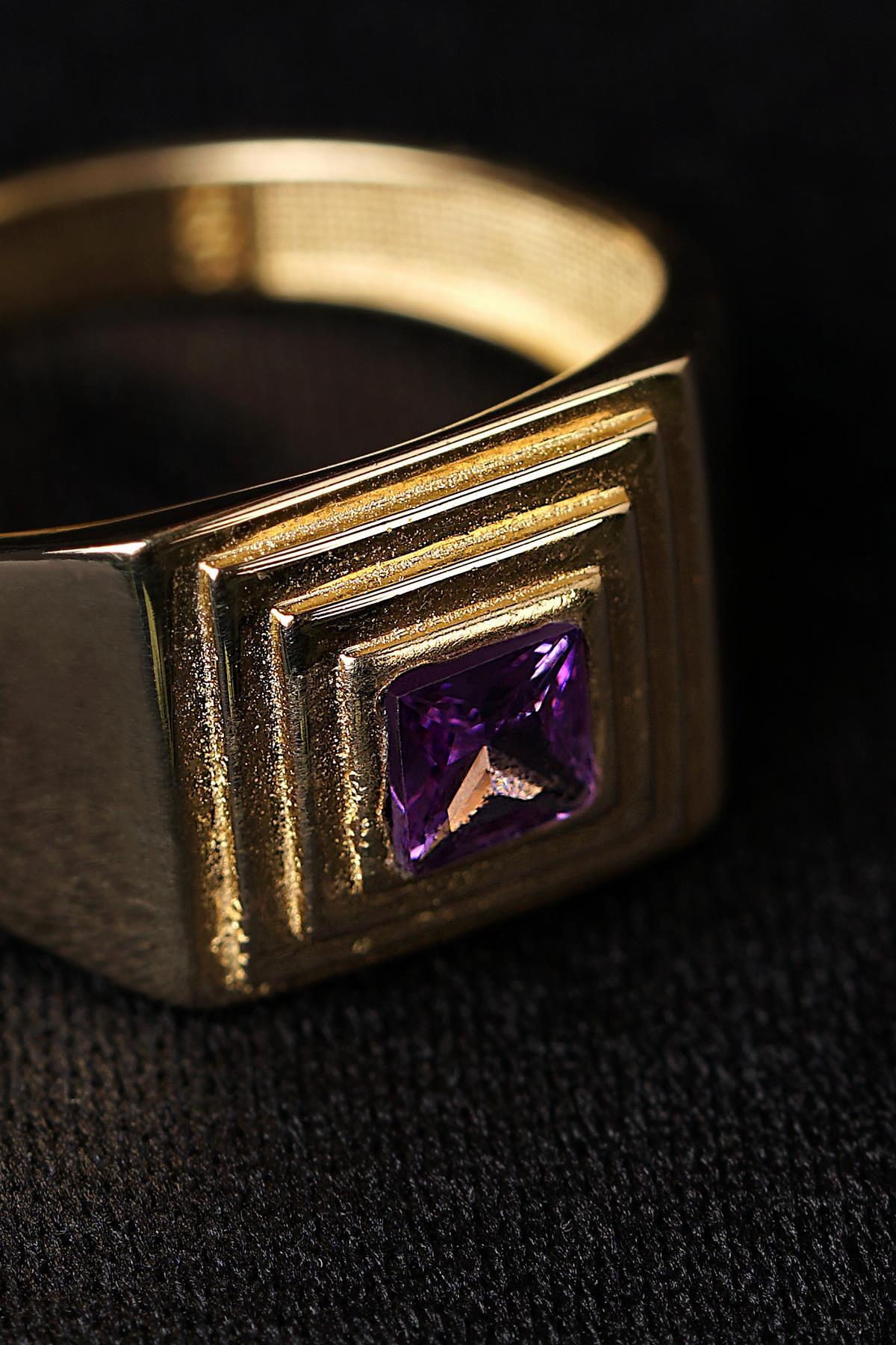 14 Ayar Altın Kare Şeritli Ametist Taş Erkek Yüzük