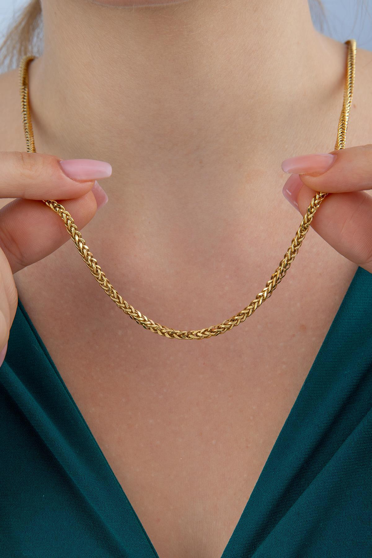 14 Ayar Altın Kare Dizisi Kolye