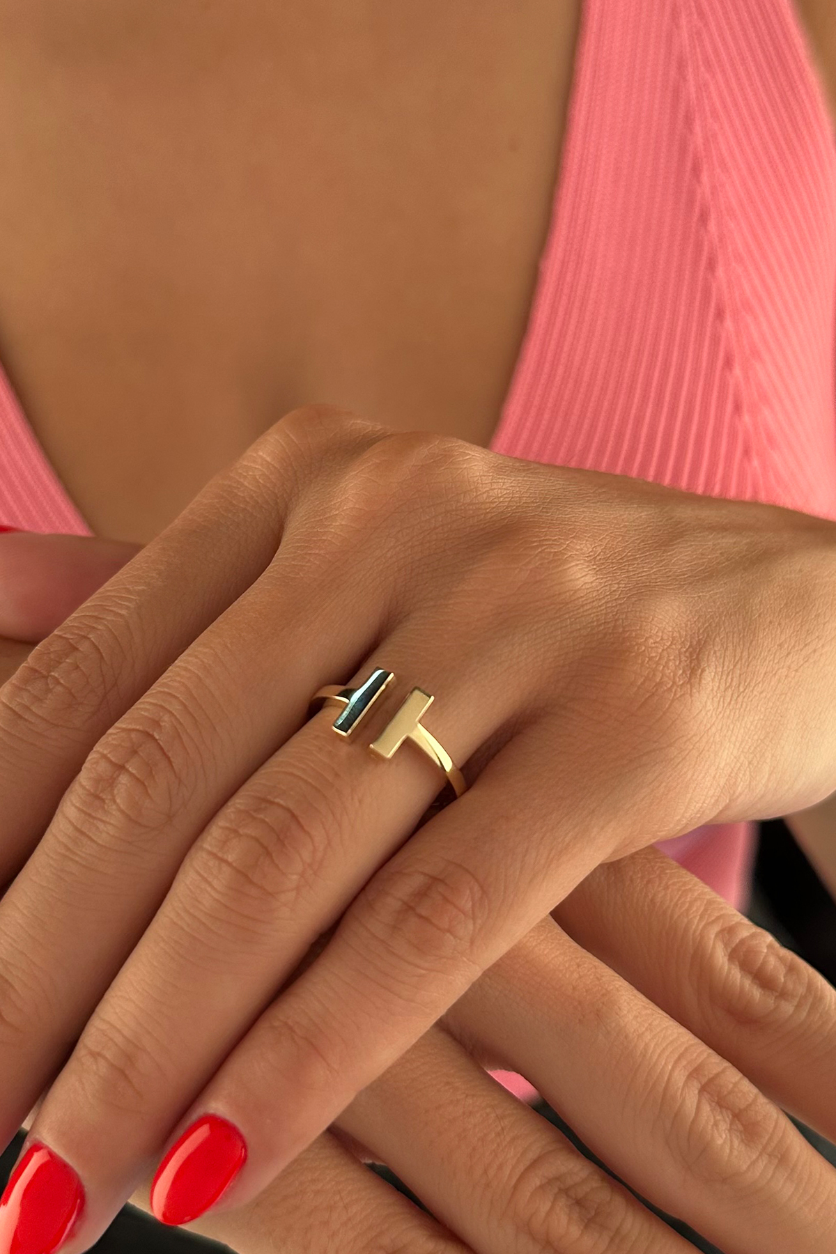 14 Ayar Altın Karşılıklı Şeritler Yüzük