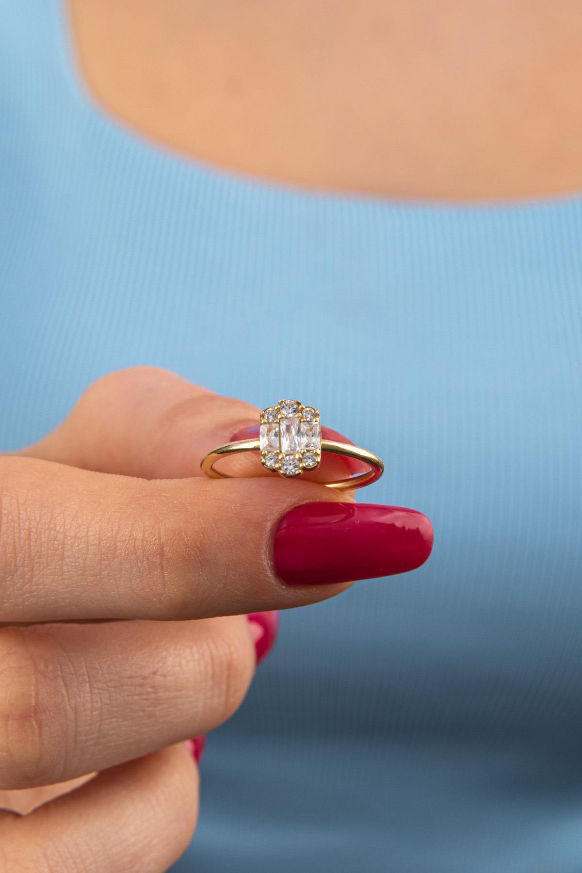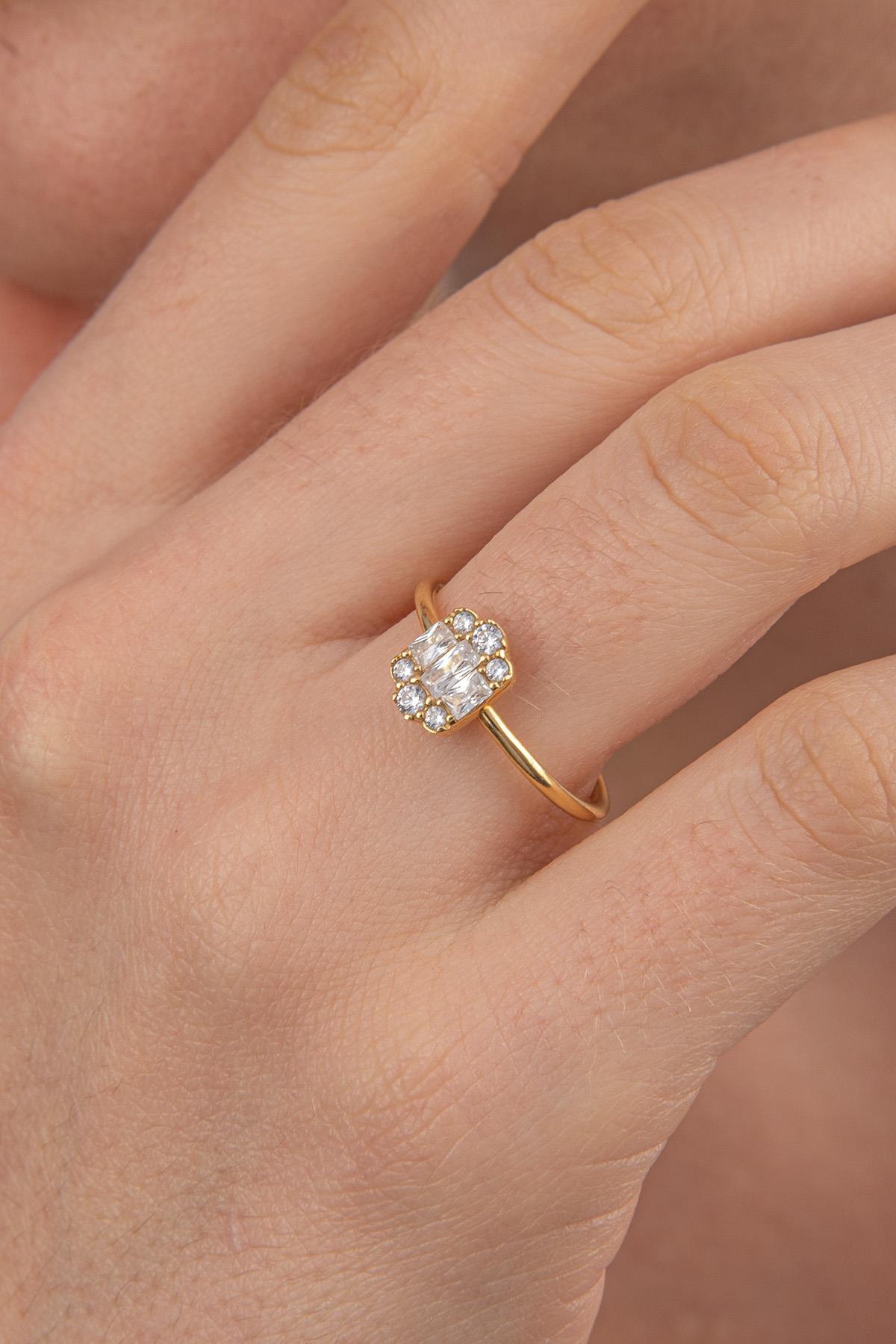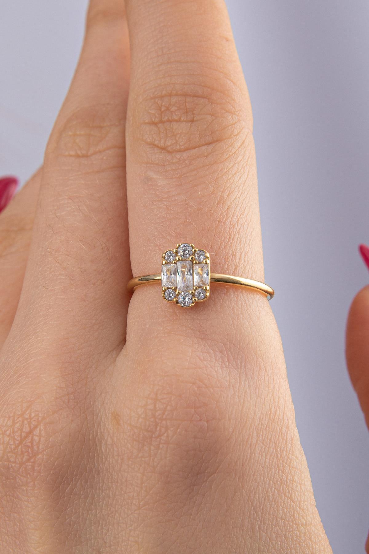 14 Ayar Altın Baget Kare Sıralı Yüzük 2