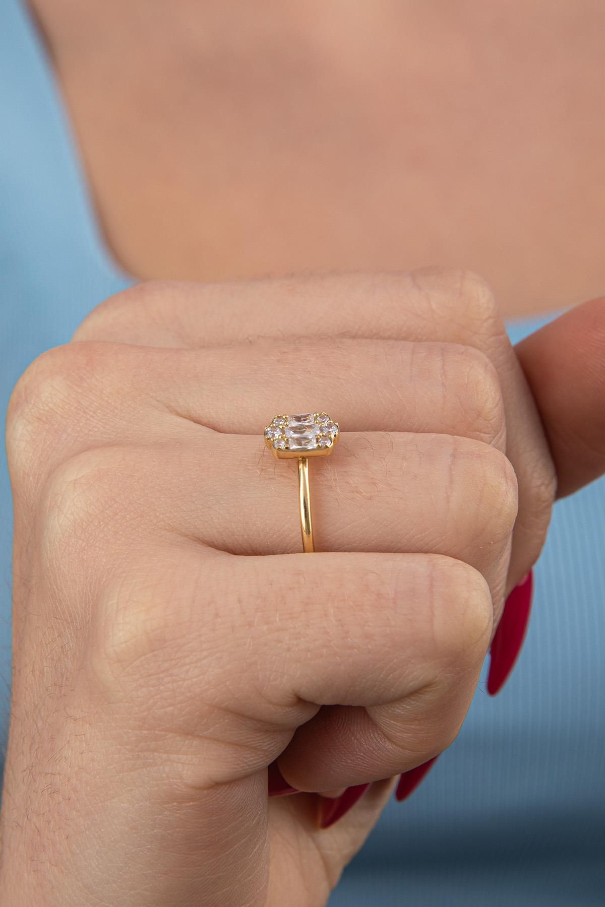 14 Ayar Altın Kenar Taşlı Baget Yüzük