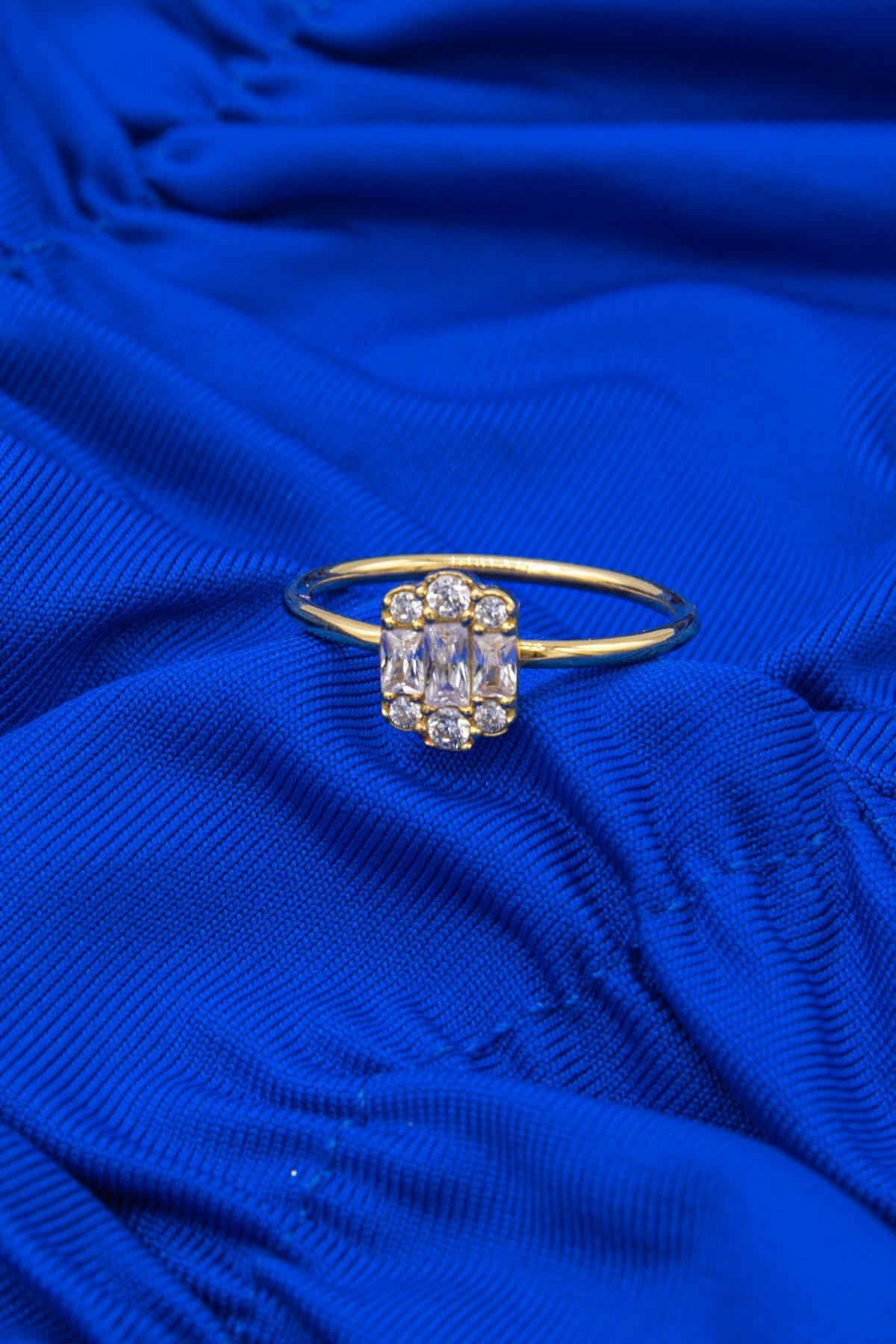 14 Ayar Altın Baget Kare Sıralı Yüzük