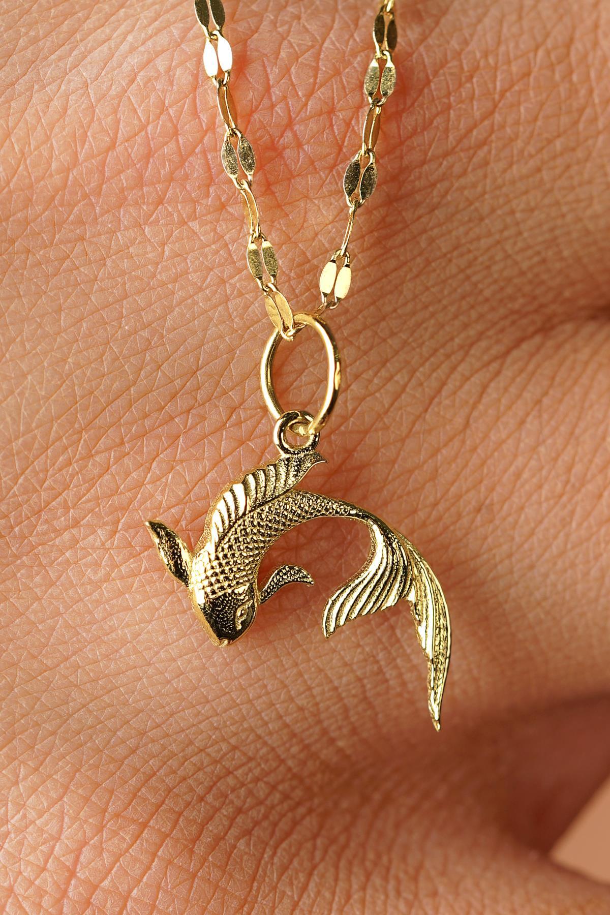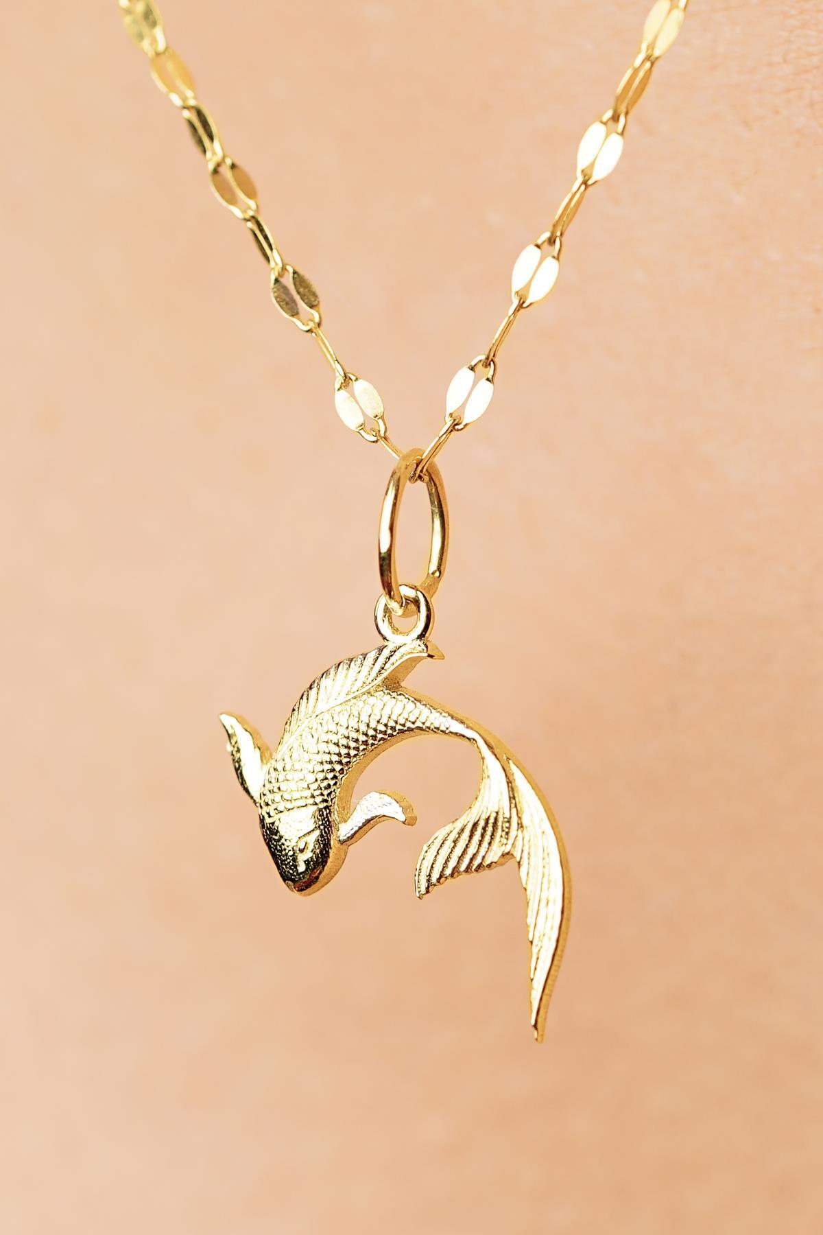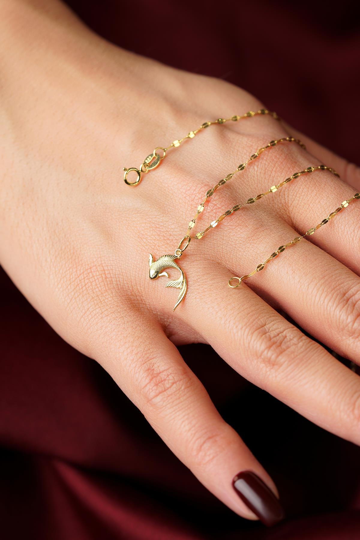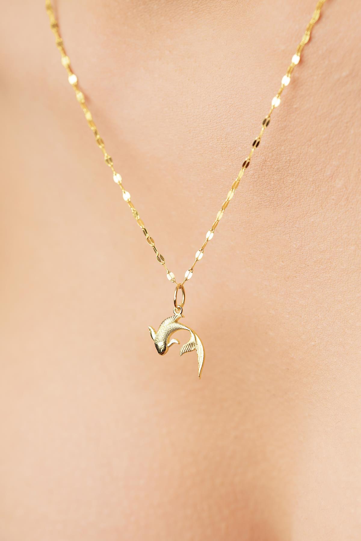 14 Ayar Altın Koi Balığı Aynalı Zincir Kolye