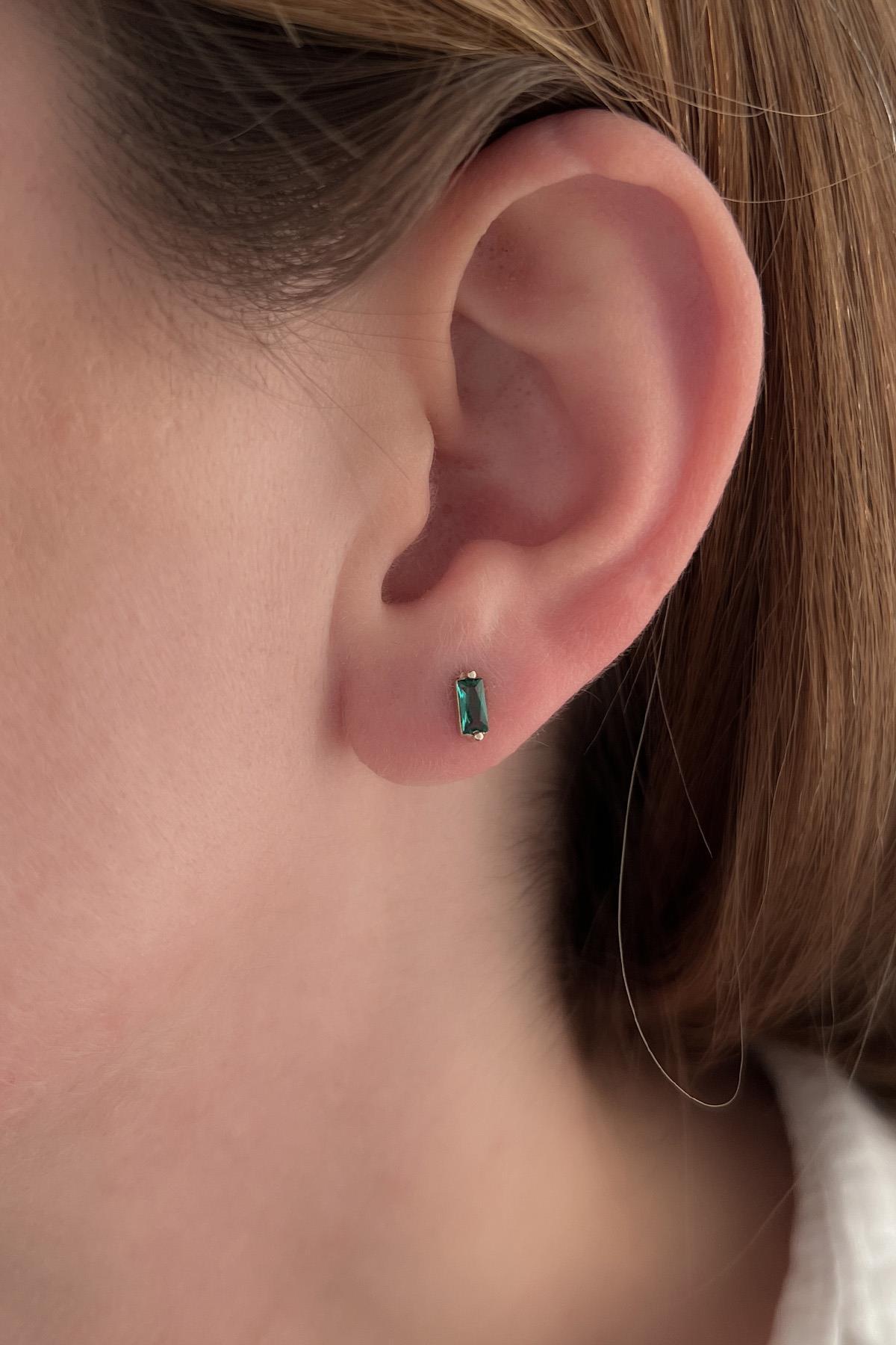 14 Ayar Altın Kök Zümrüt Baget Küpe