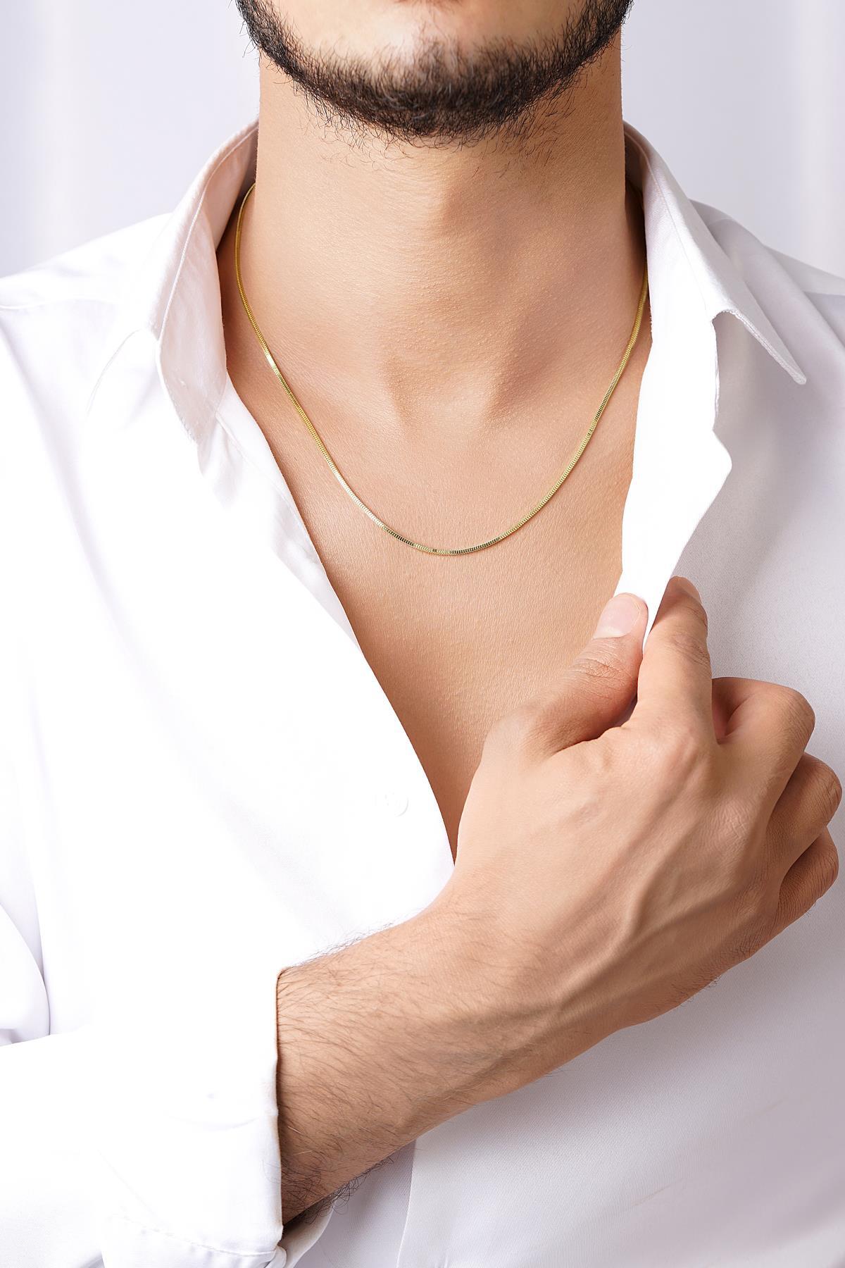 14 Ayar Altın İtalyan Balık Sırtı Zincir Erkek Kolye