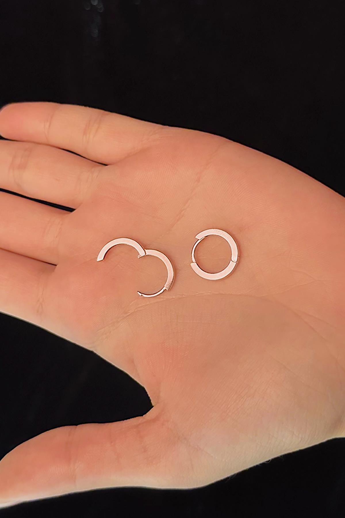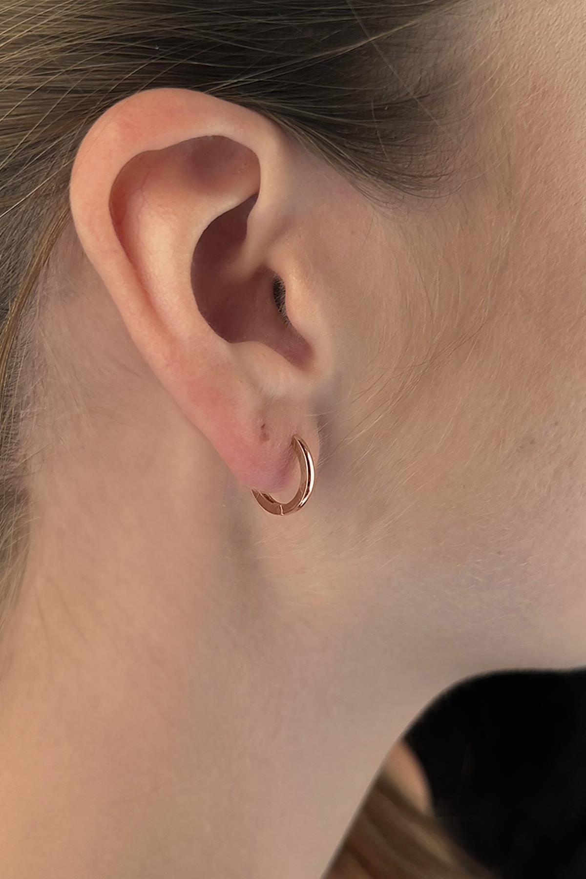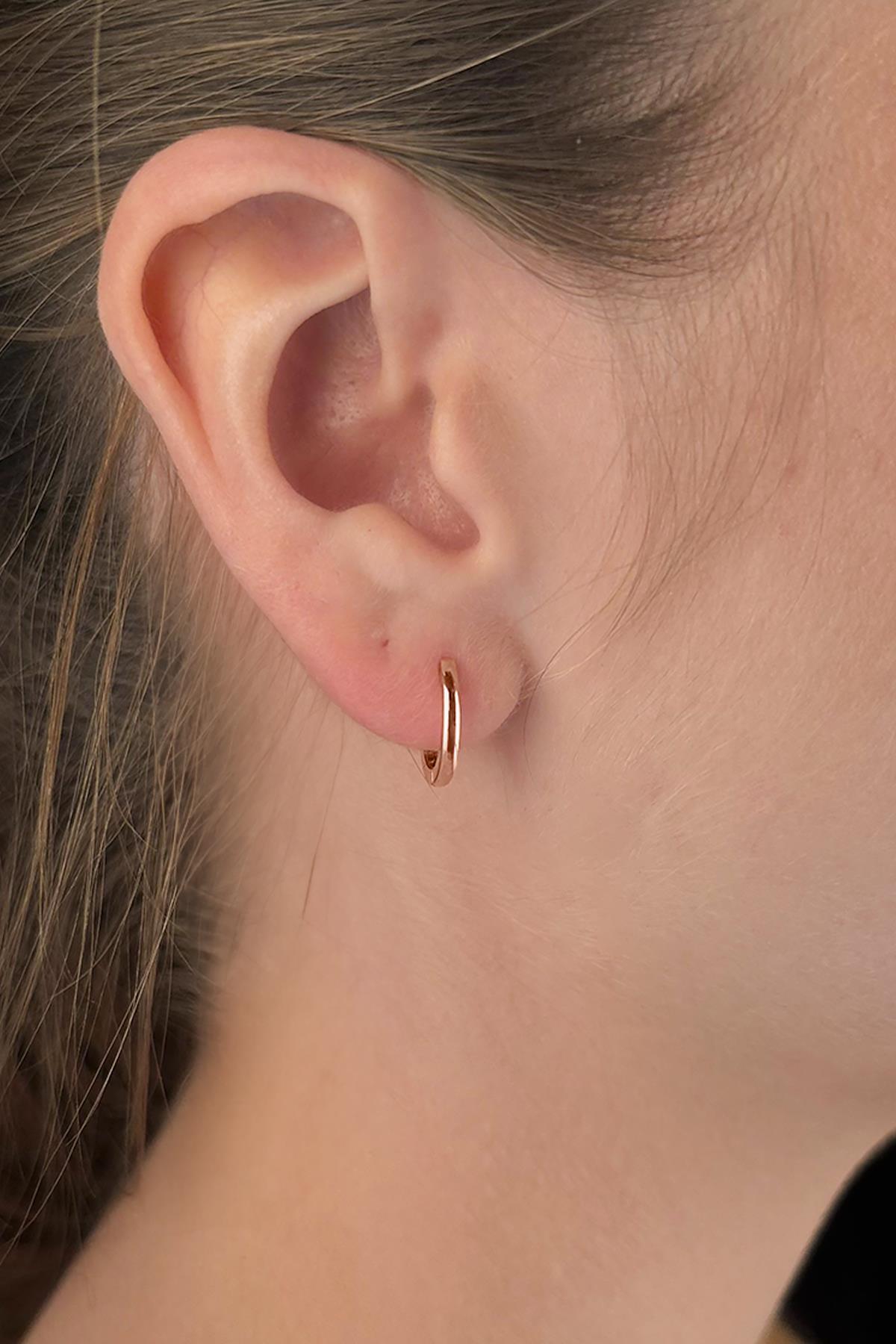 14 Ayar Altın Köşeli Bombeli Mini Halka Küpe