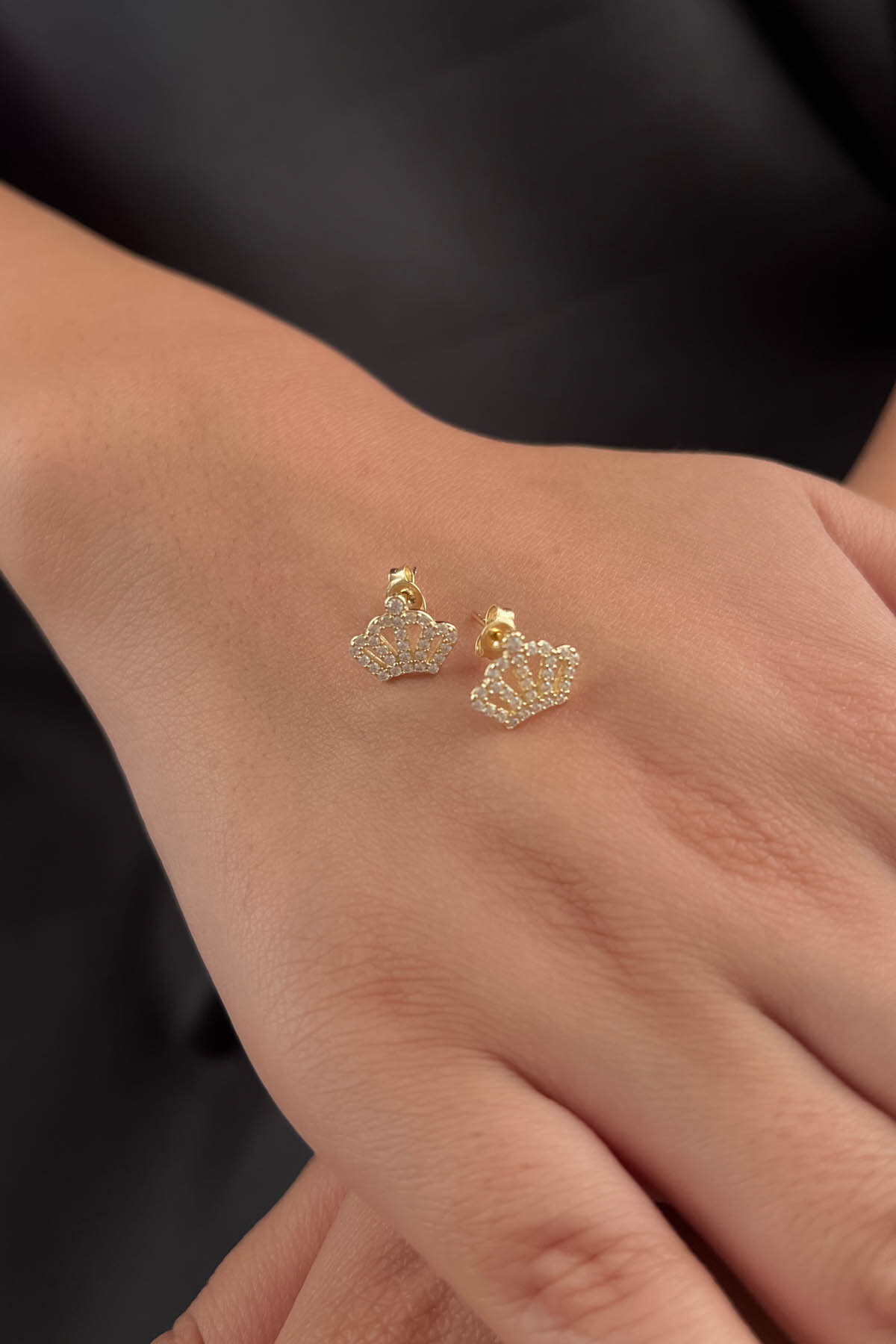 14 Ayar Altın Kraliçe Tacı Küpe