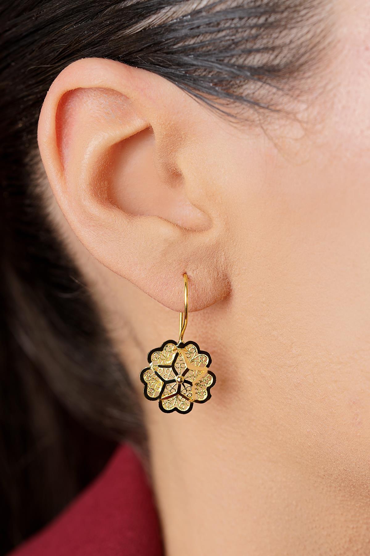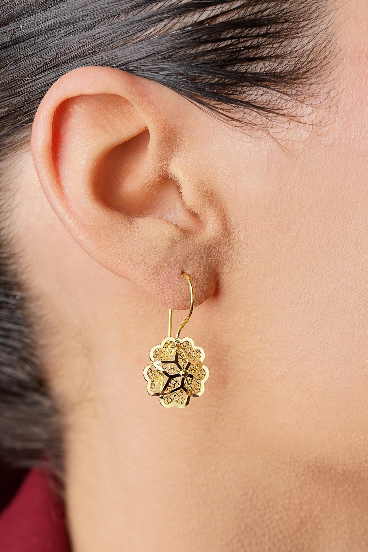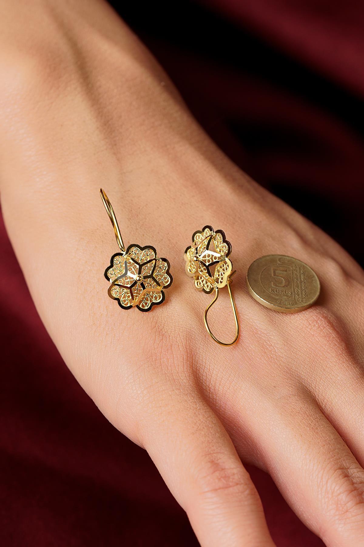 14 Ayar Altın Gül Motifli Telkari Küpe - Anne Küpesi