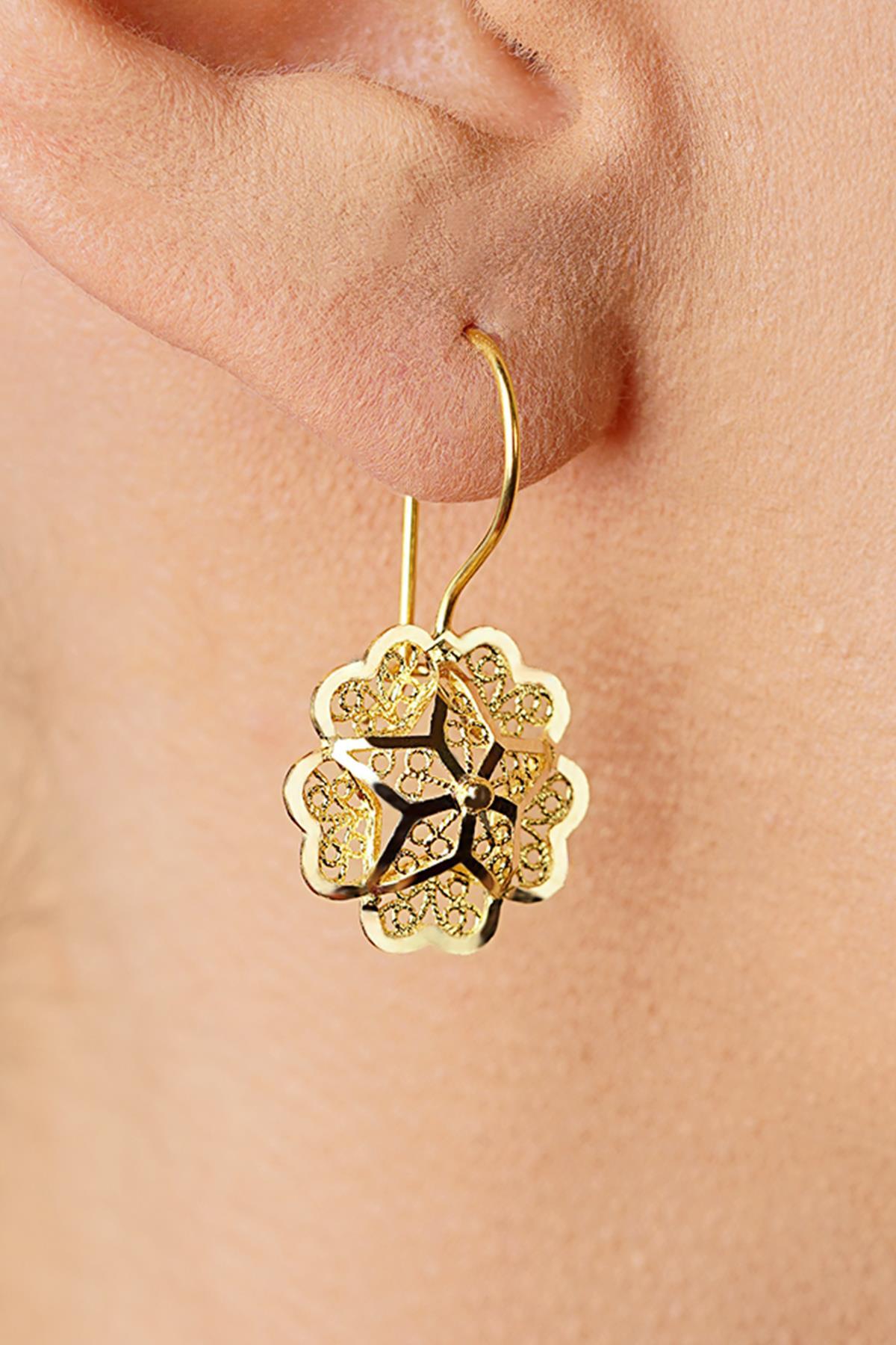 14 Ayar Altın Küçük Gül Motifli Telkari Küpe - Anne Küpesi