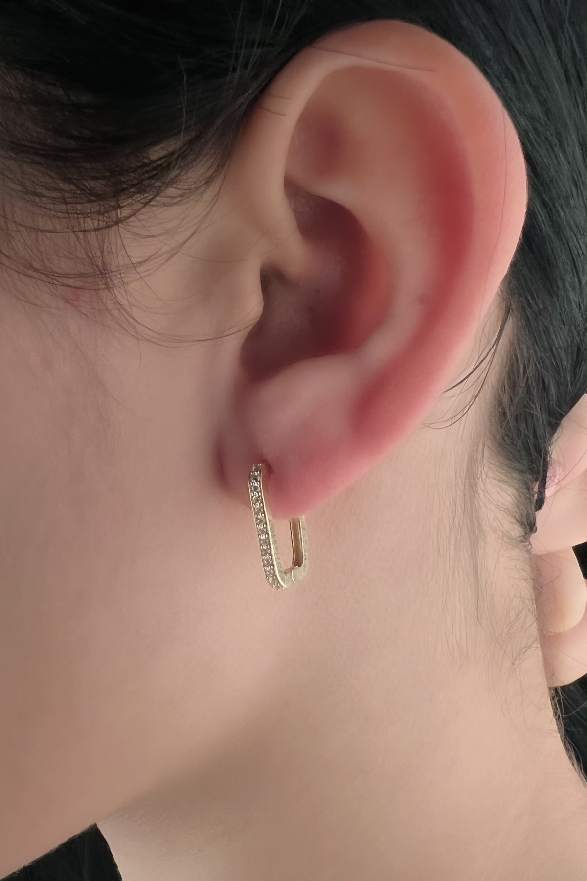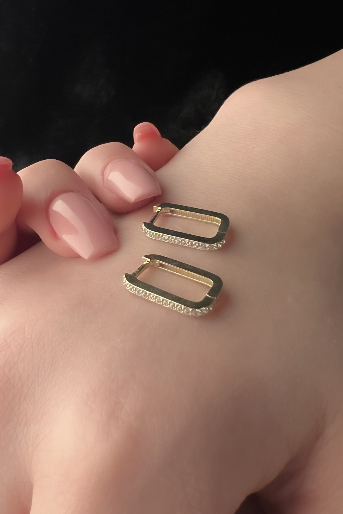 14 Ayar Altın Küçük Taşlı Dikdörtgen Küpe 3