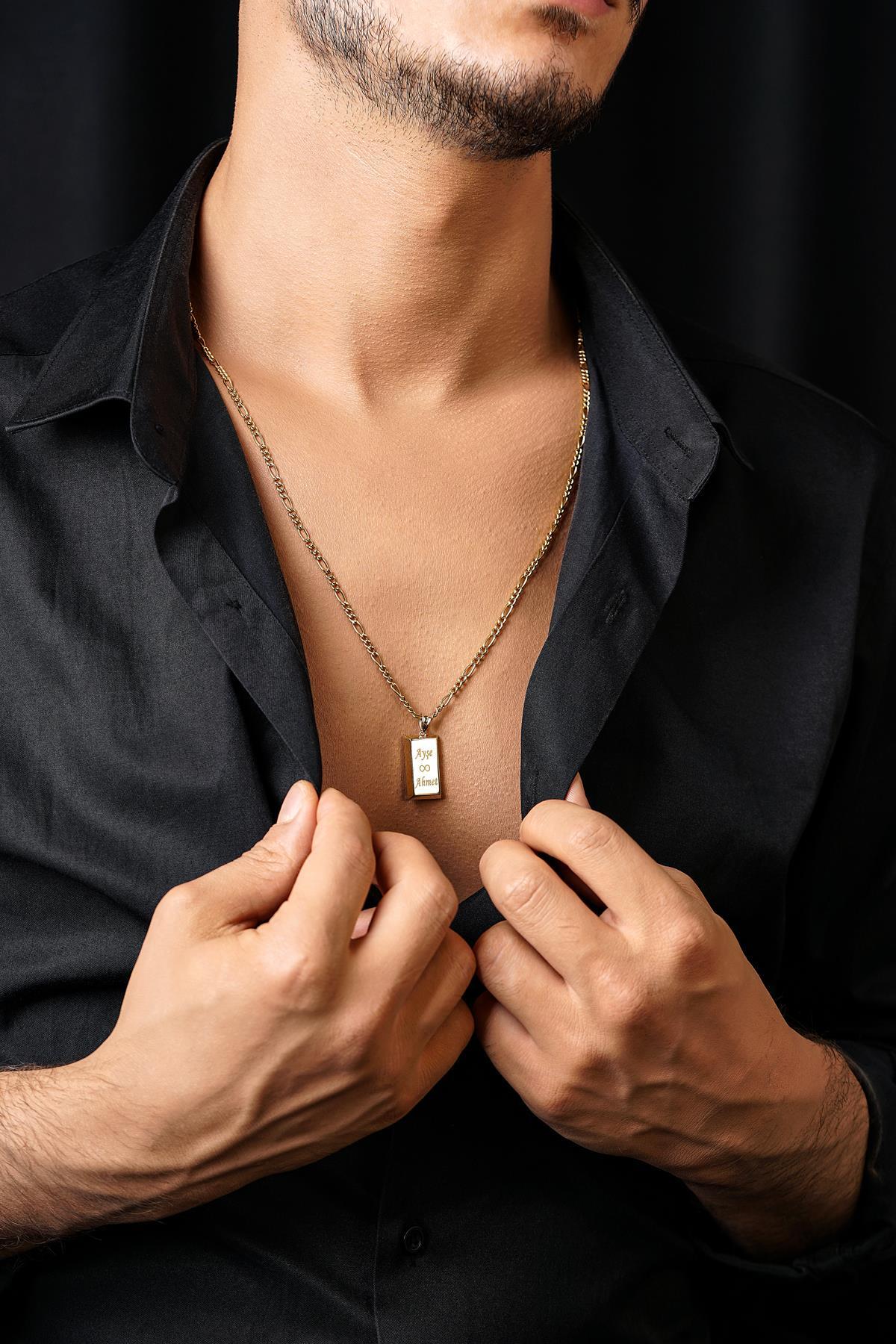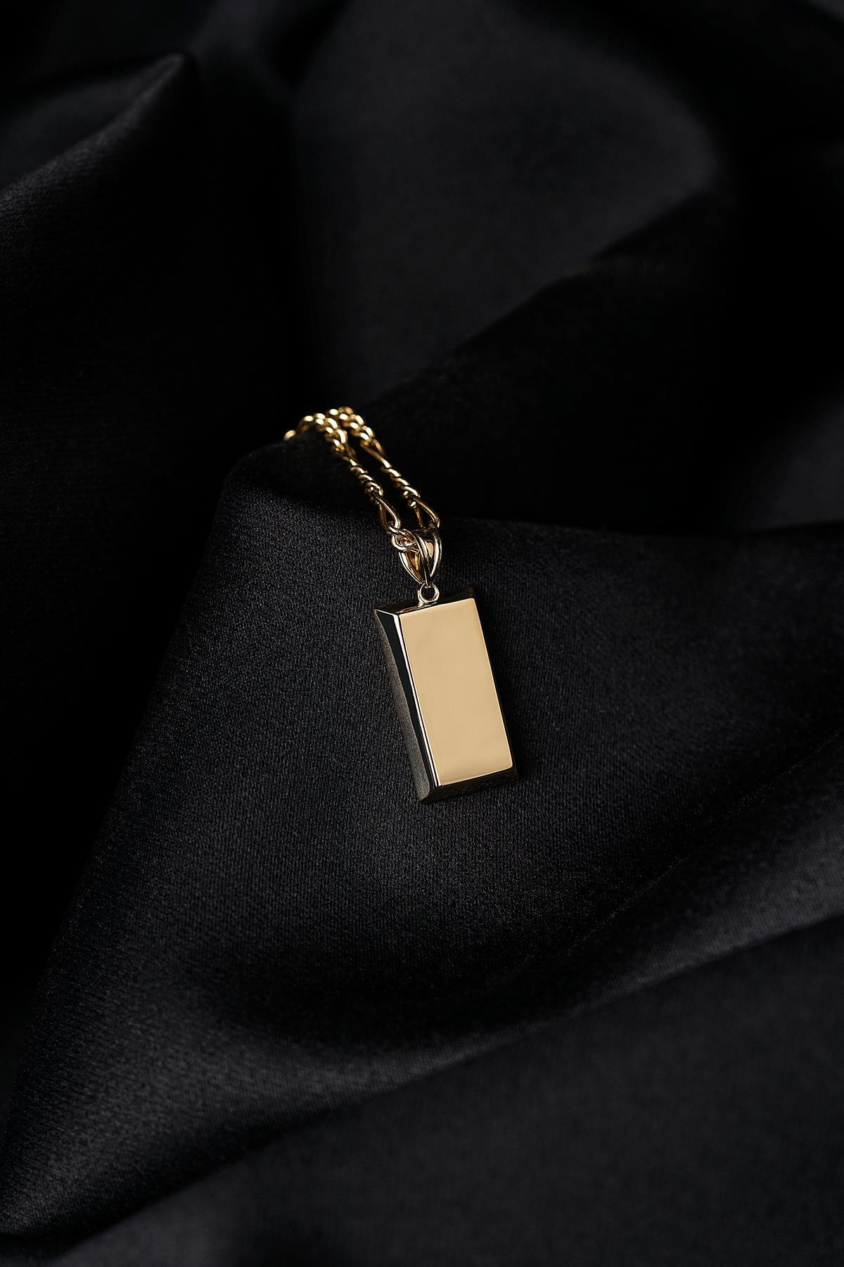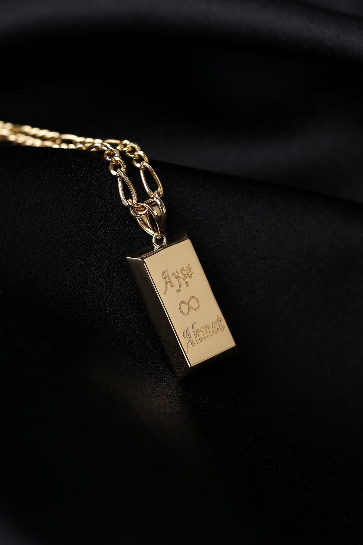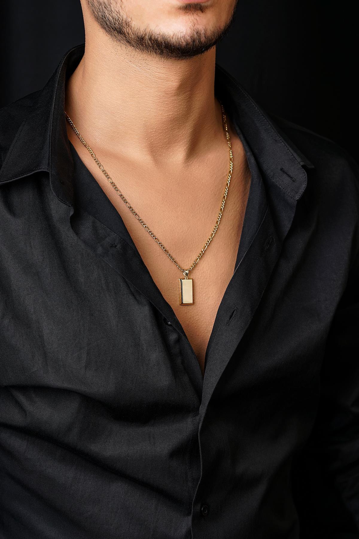 14 Ayar Altın Külçeli Figaro Zincir Erkek Kolye