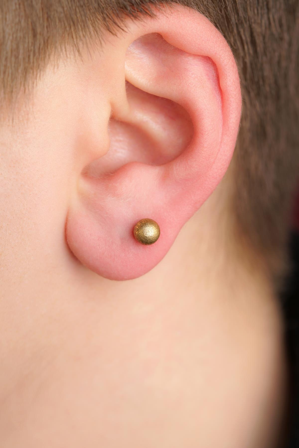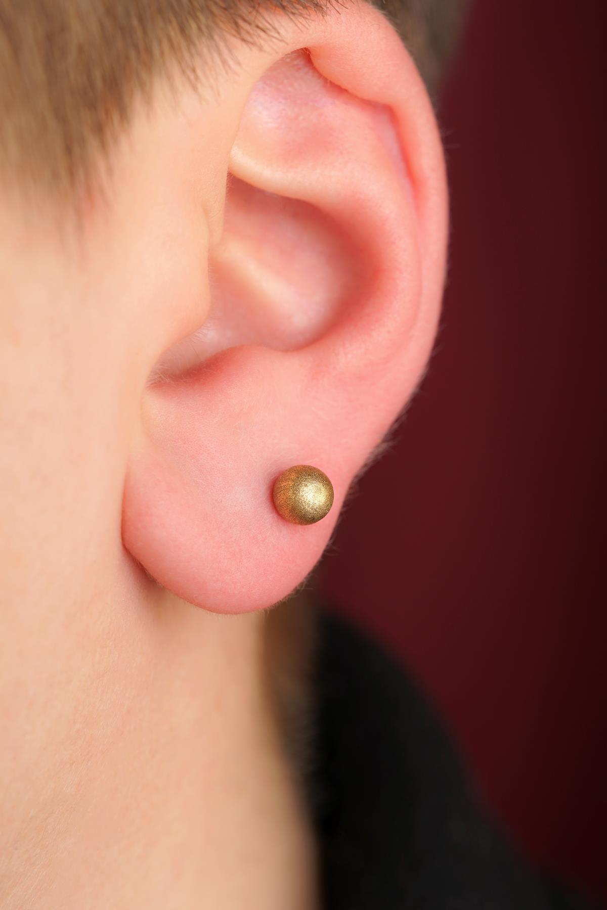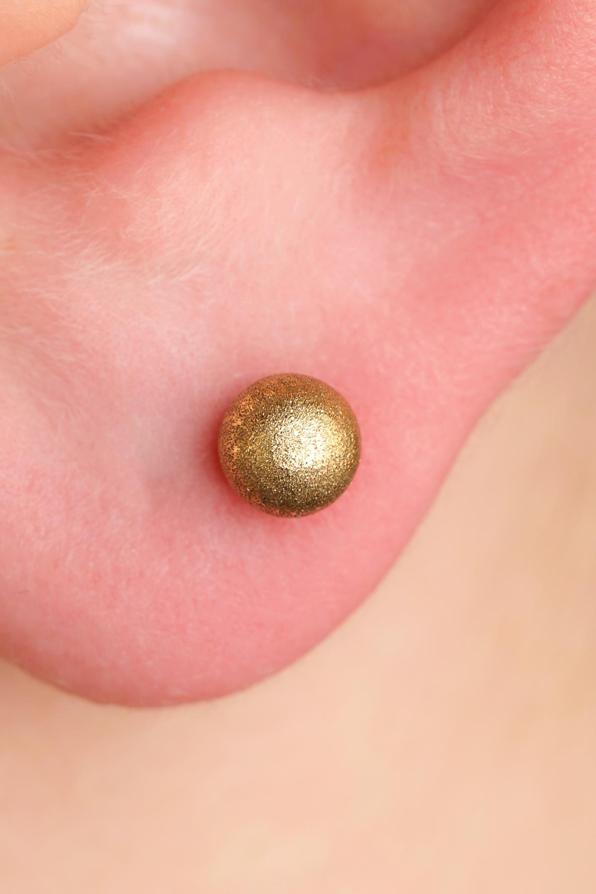 14 Ayar Altın Kumlu Top Küpe Erkek