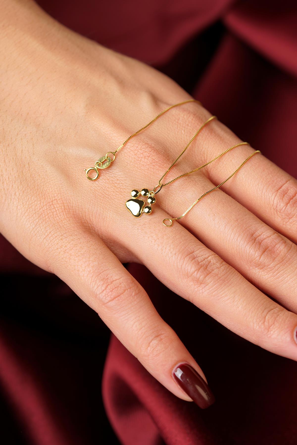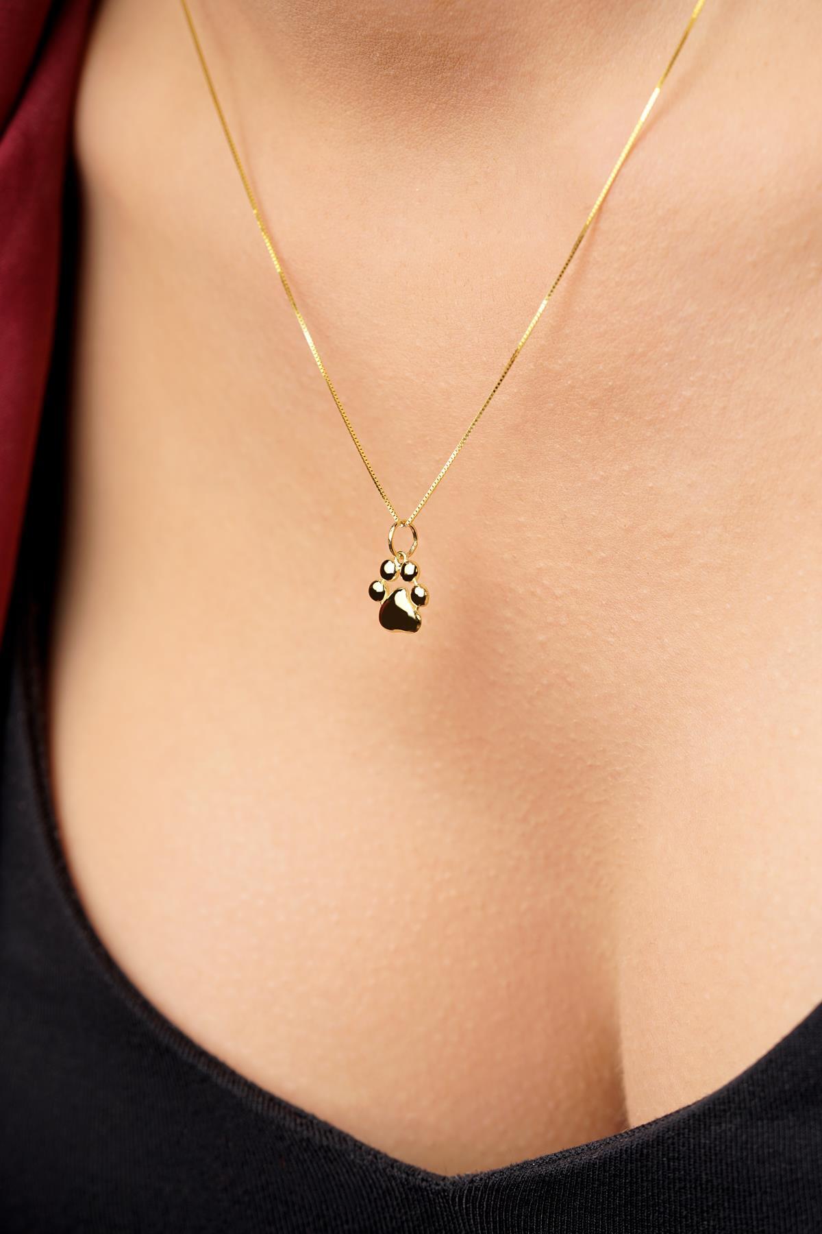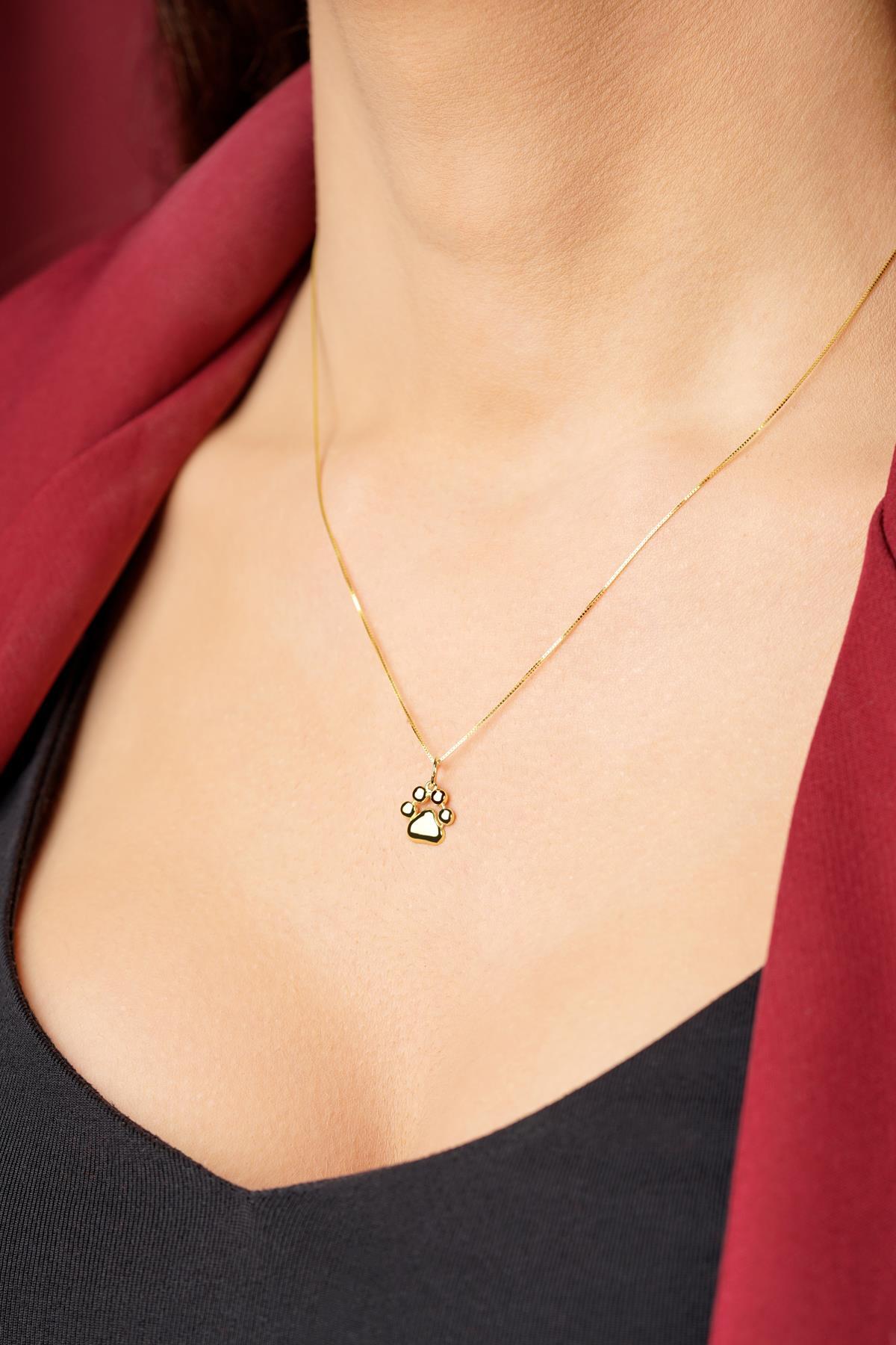 14 Ayar Altın Kedi Köpek Pati Detaylı Küp Zincir Kolye
