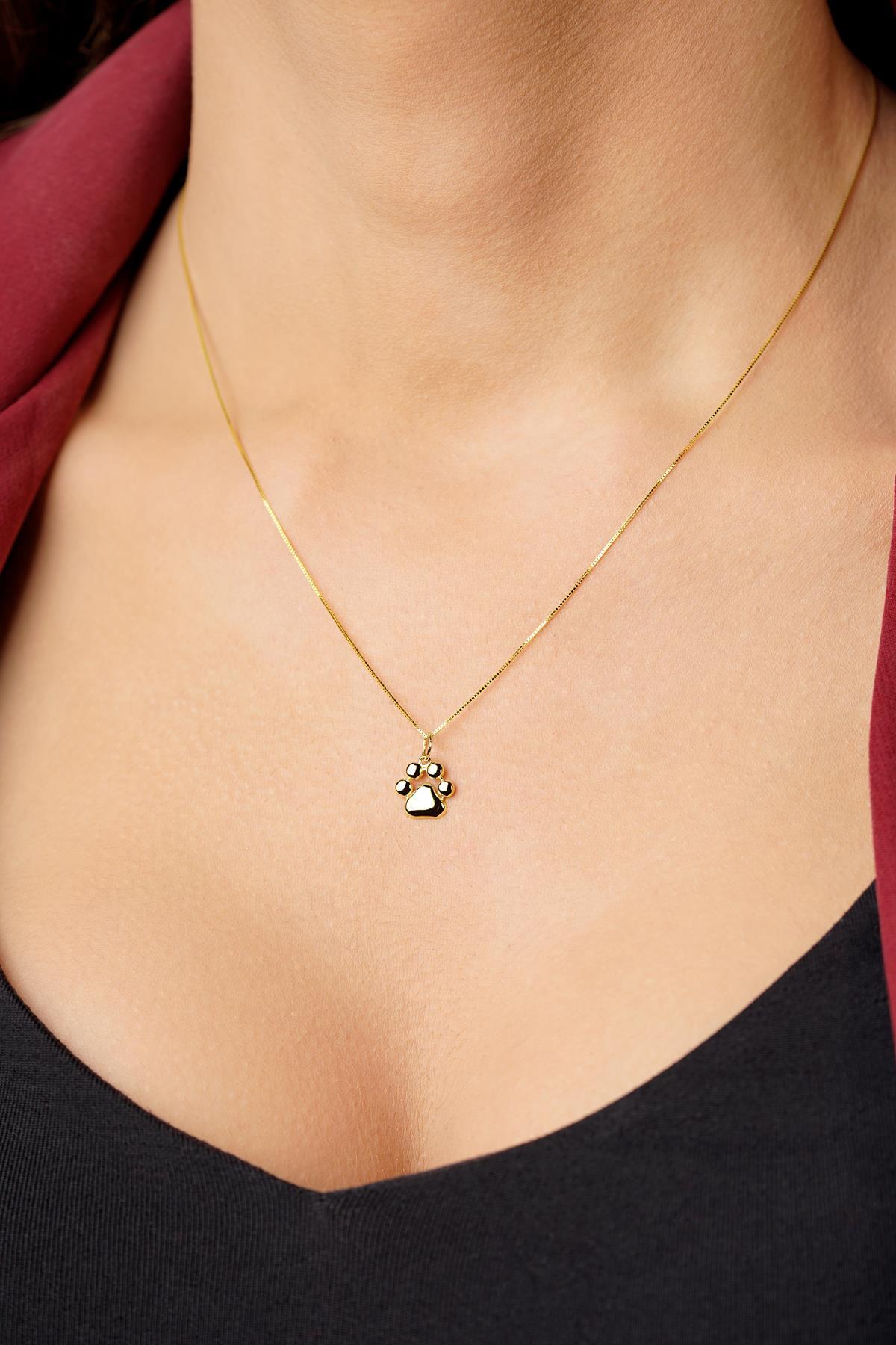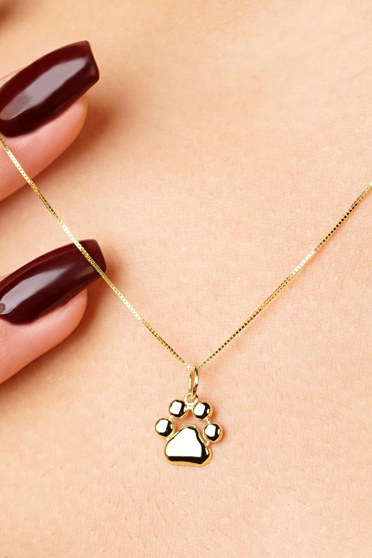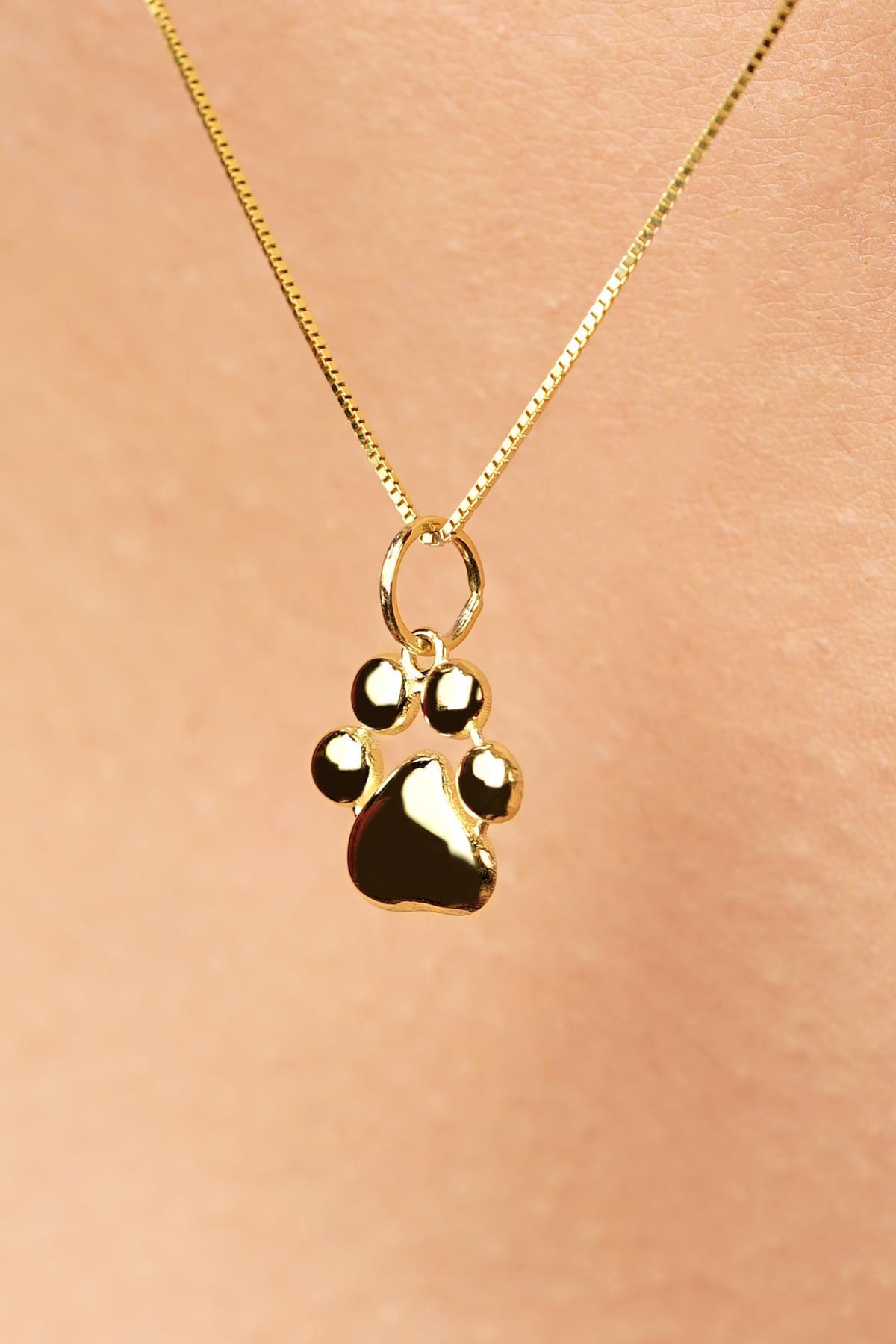 14 Ayar Altın Kedi Köpek Pati Detaylı Küp Zincir Kolye