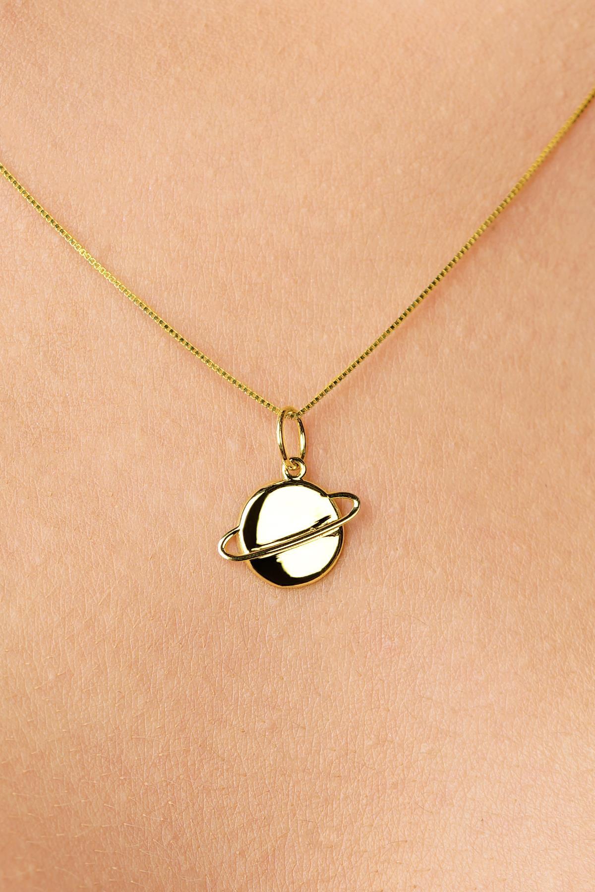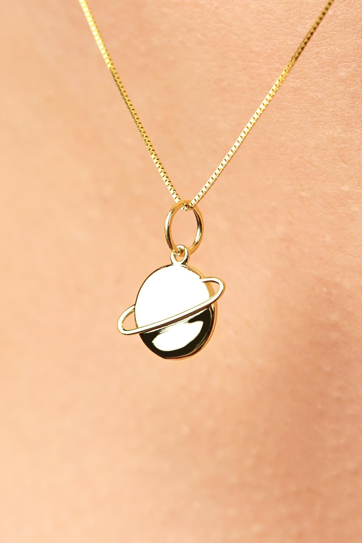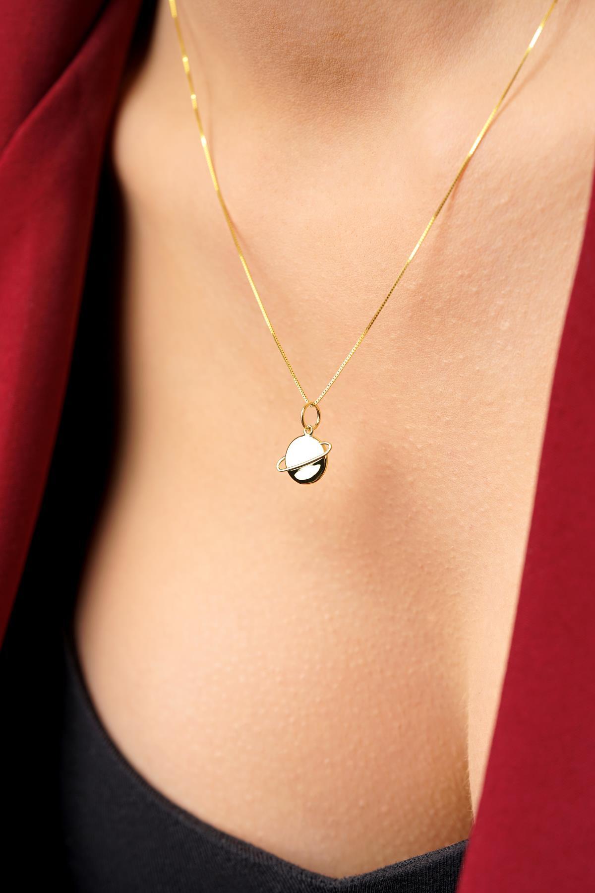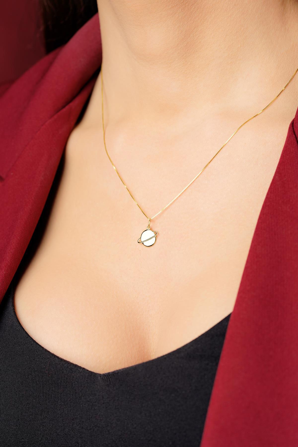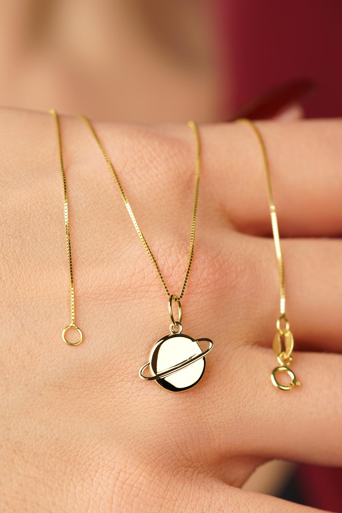14 Ayar Altın Satürn Gezegen Detaylı Küp Zincir Kolye