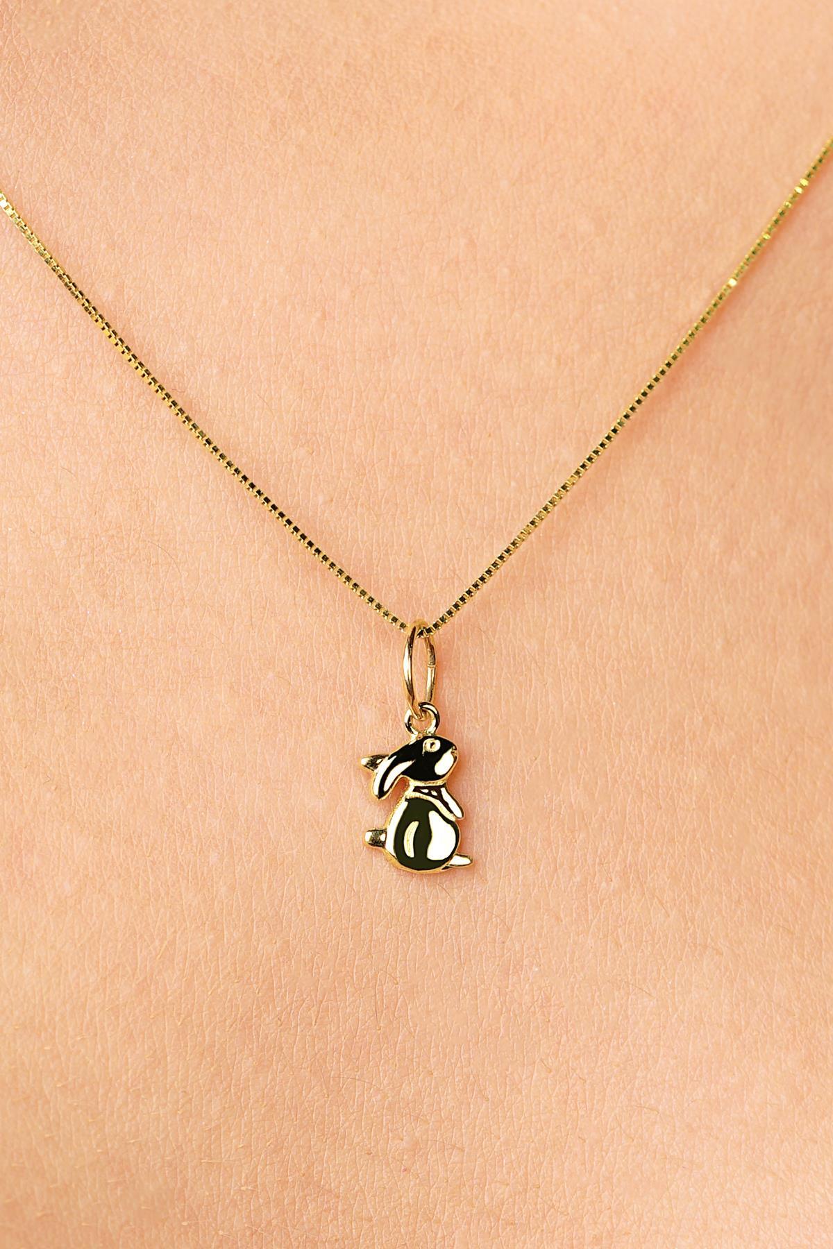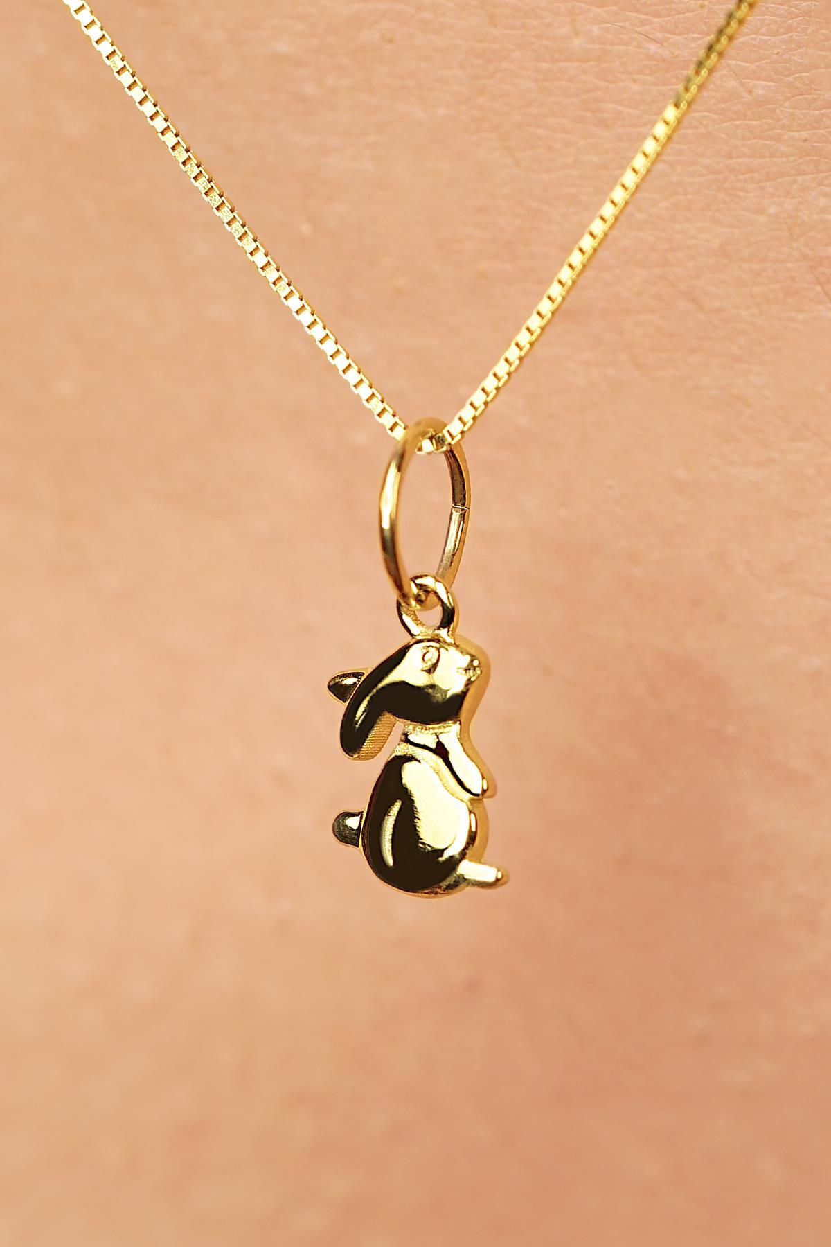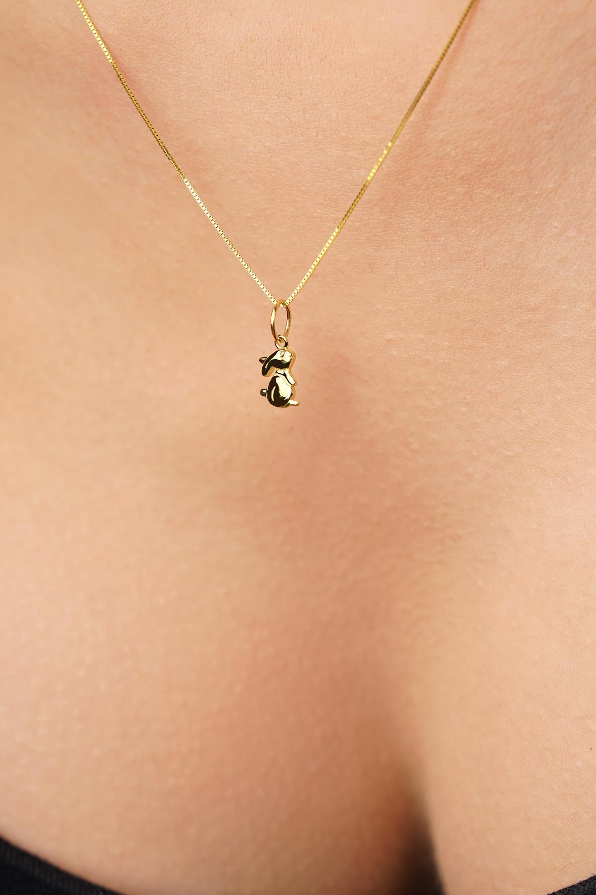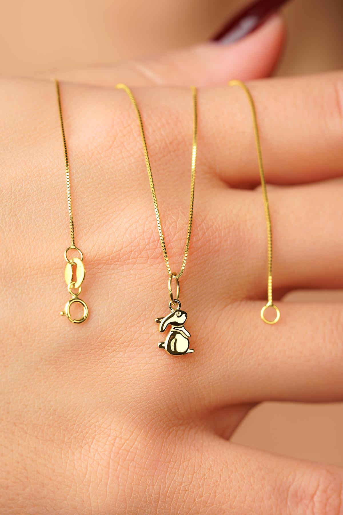 14 Ayar Altın Tavşan Detaylı Küp Zincir Kolye
