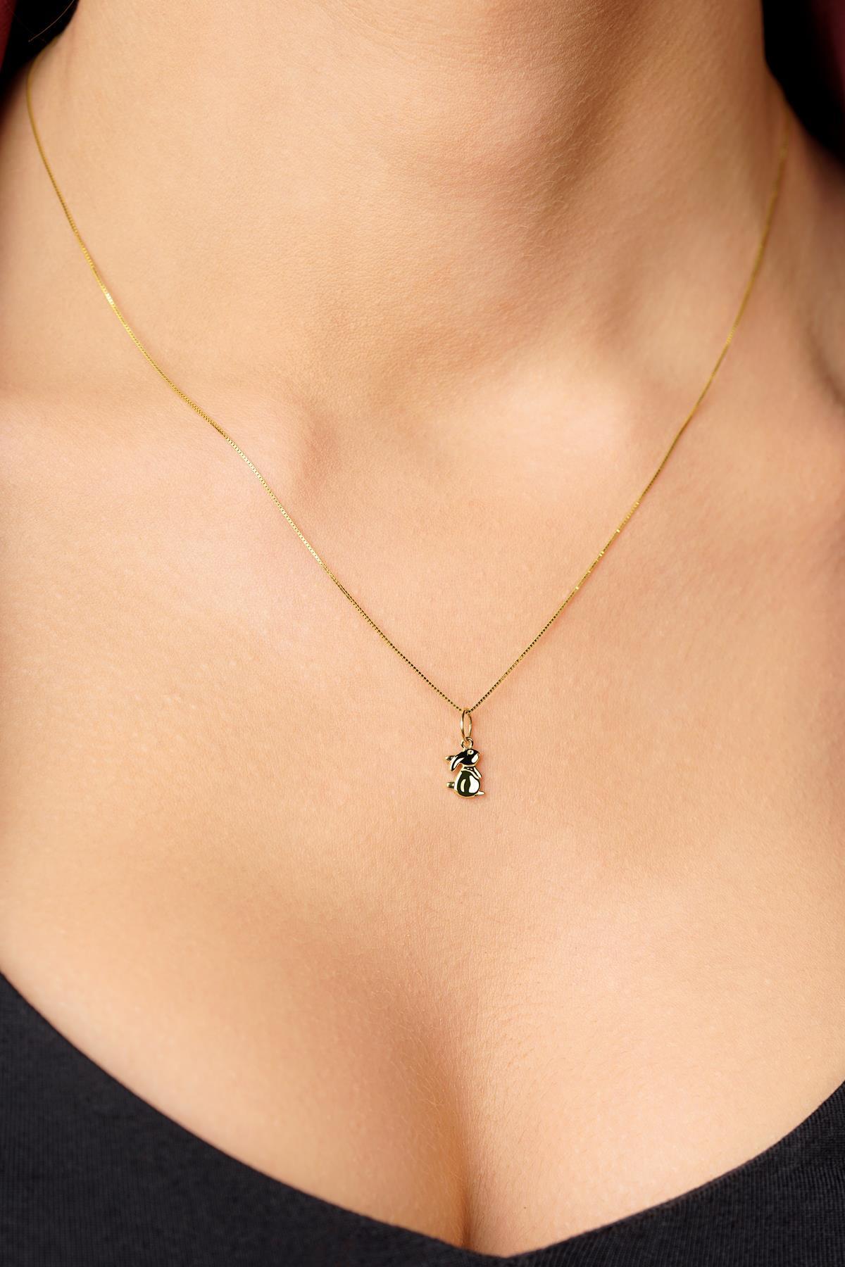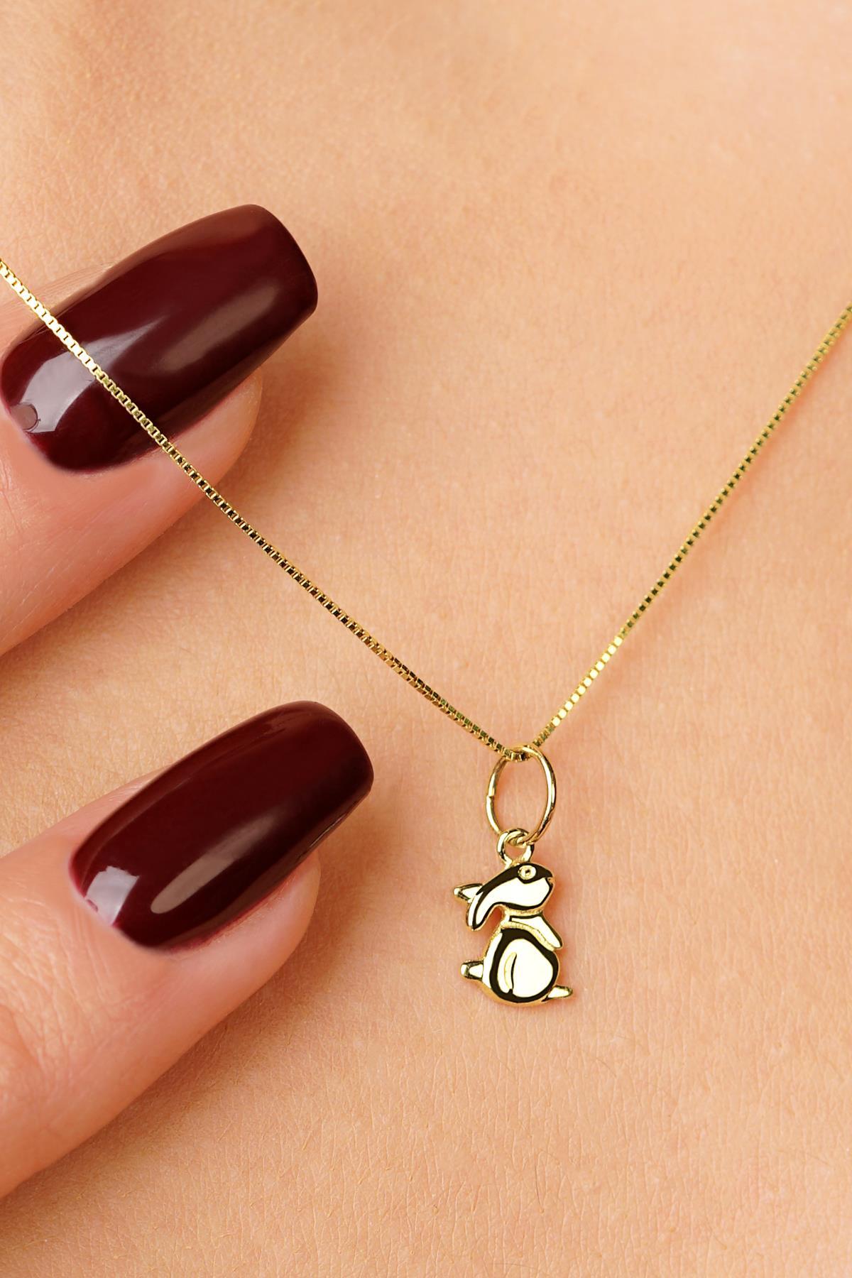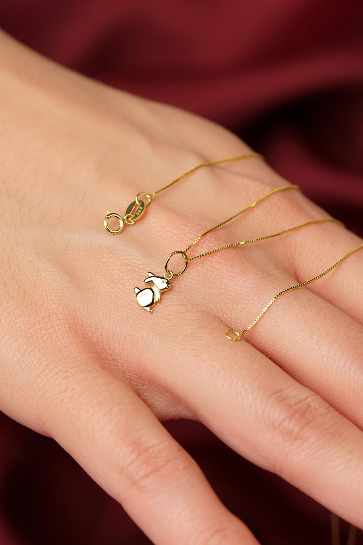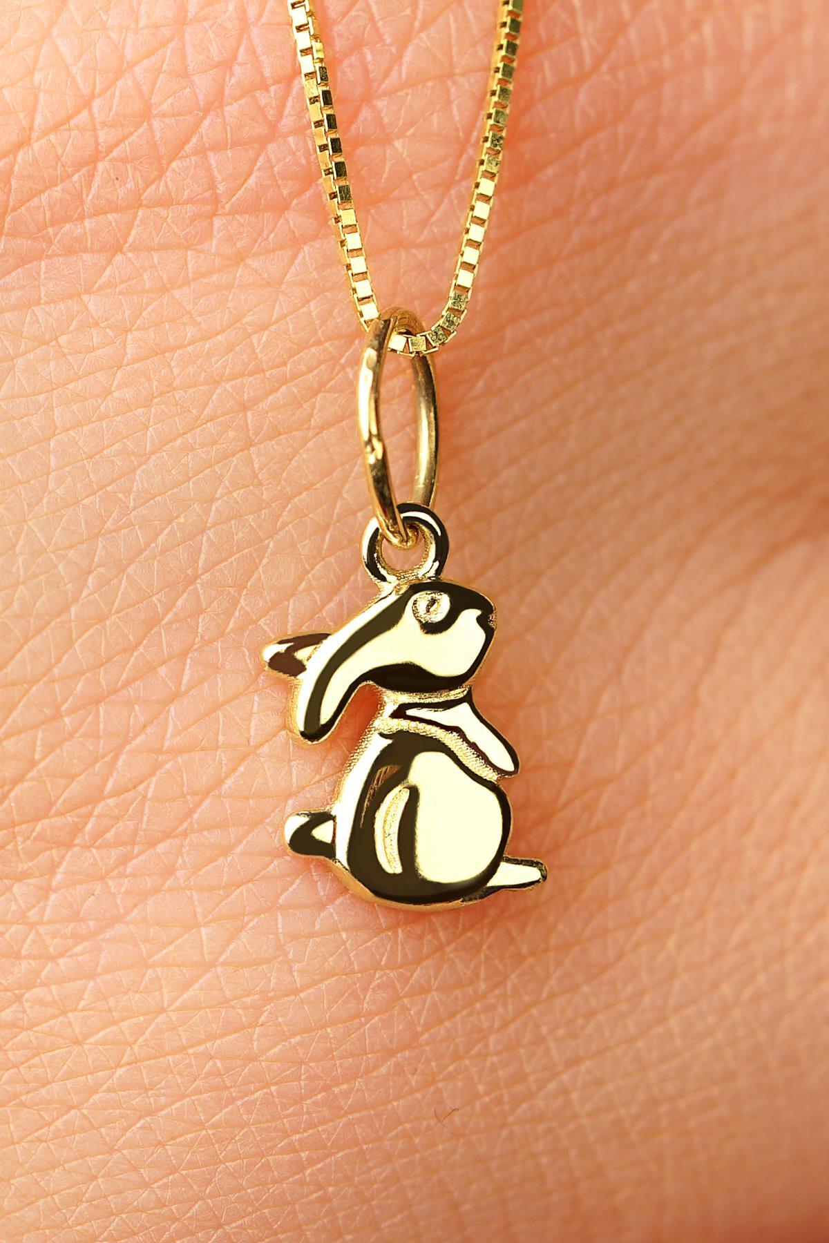 14 Ayar Altın Tavşan Detaylı Küp Zincir Kolye