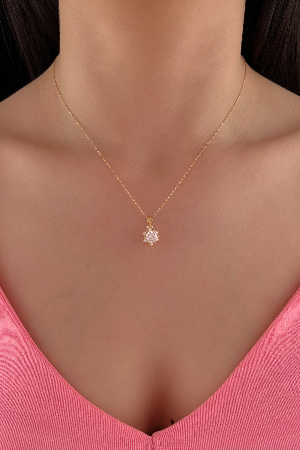 14 Ayar Altın Işıltılı Aynalı Zincir Yonca Uçlu Kolye