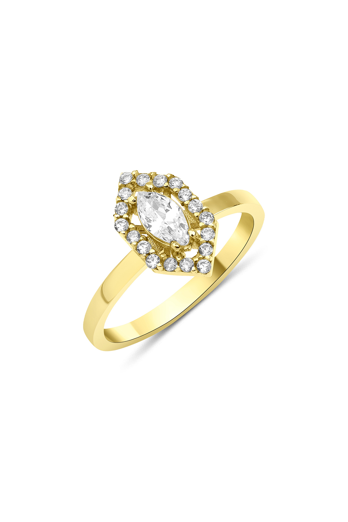 14 Ayar Altın Markiz Taş Detaylı Yüzük