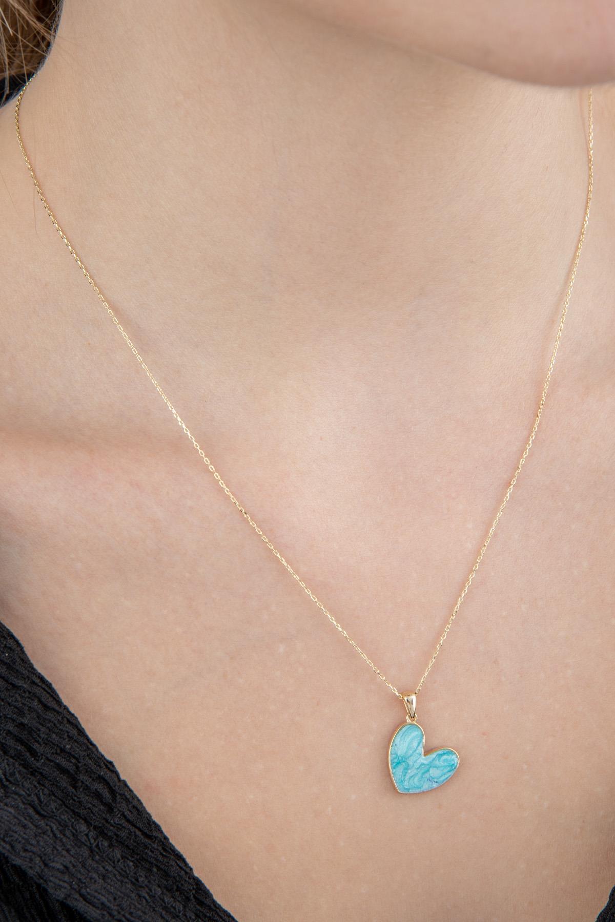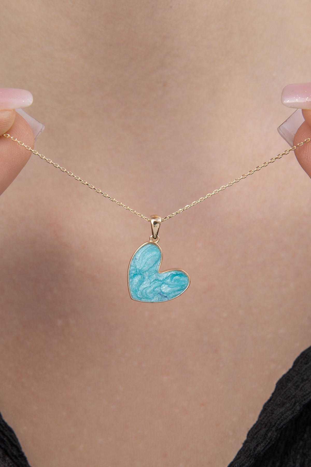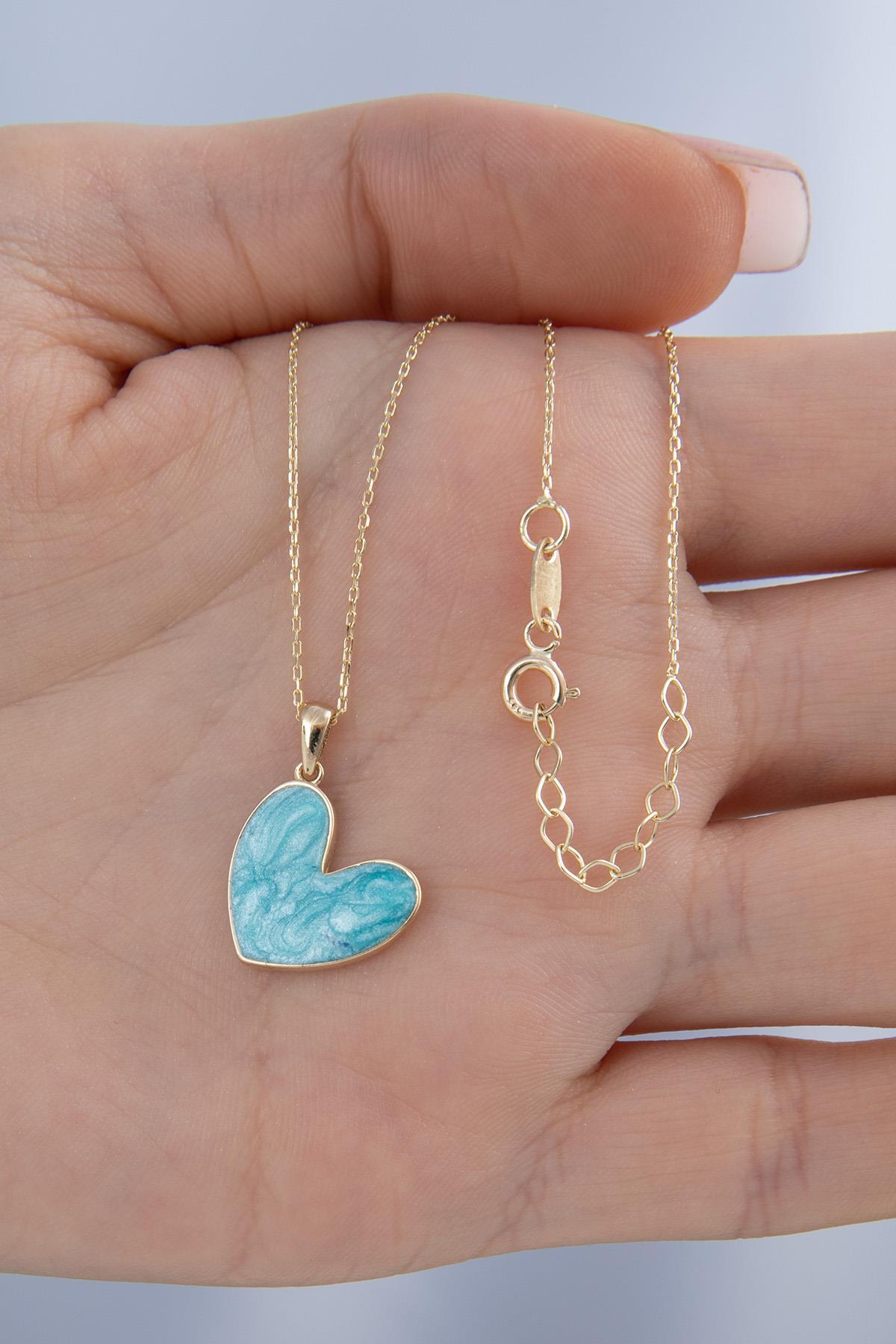 14 Ayar Altın Mavi Mineli Kalp Kolye