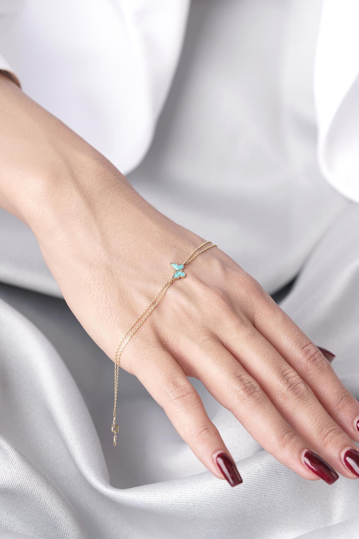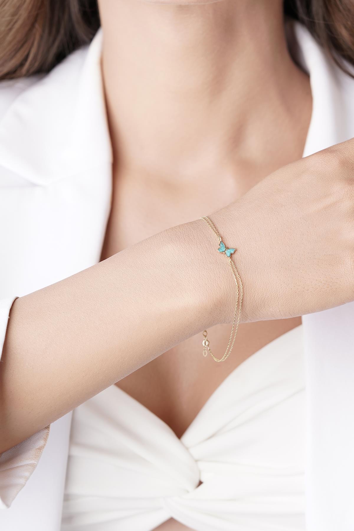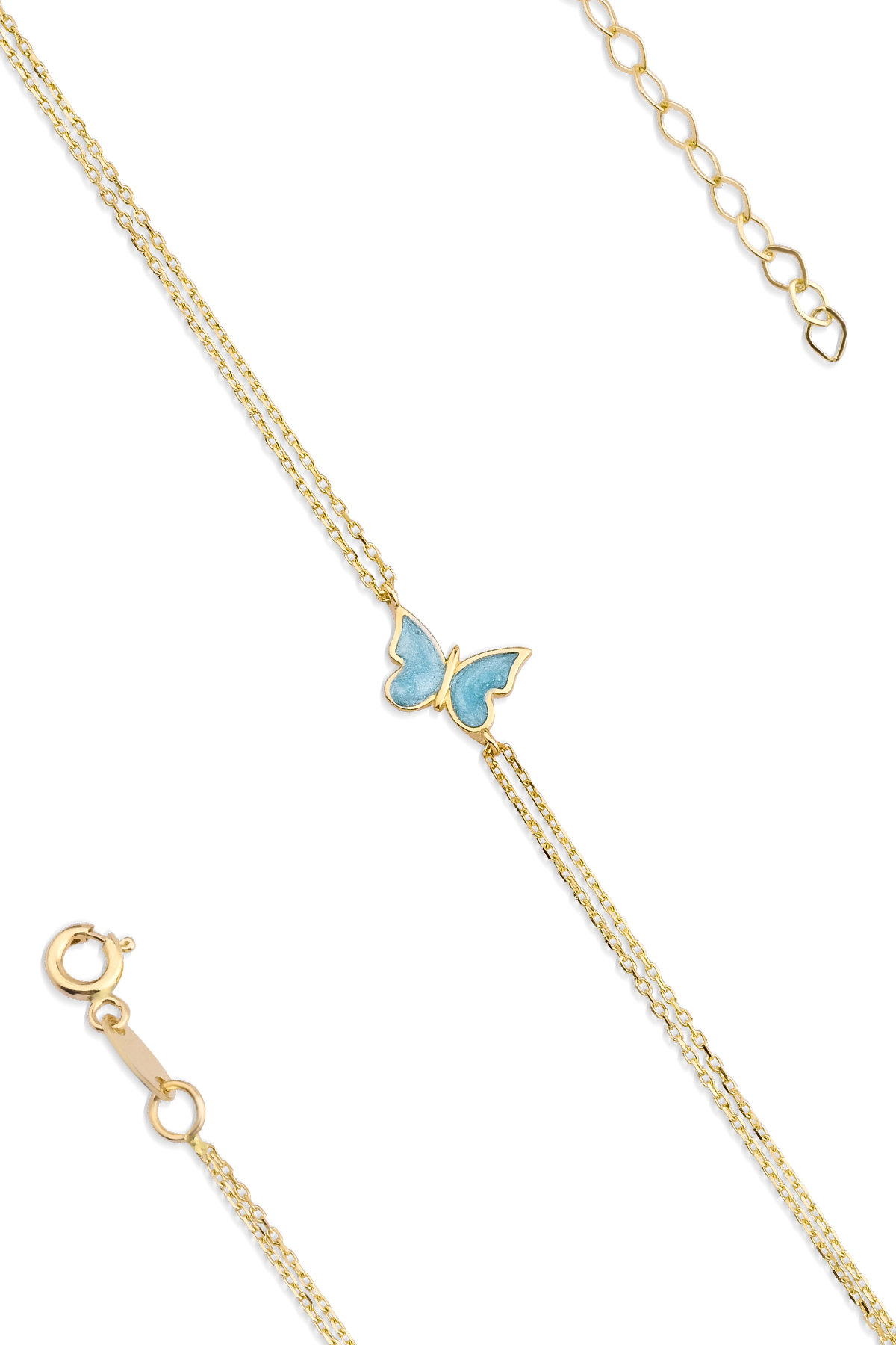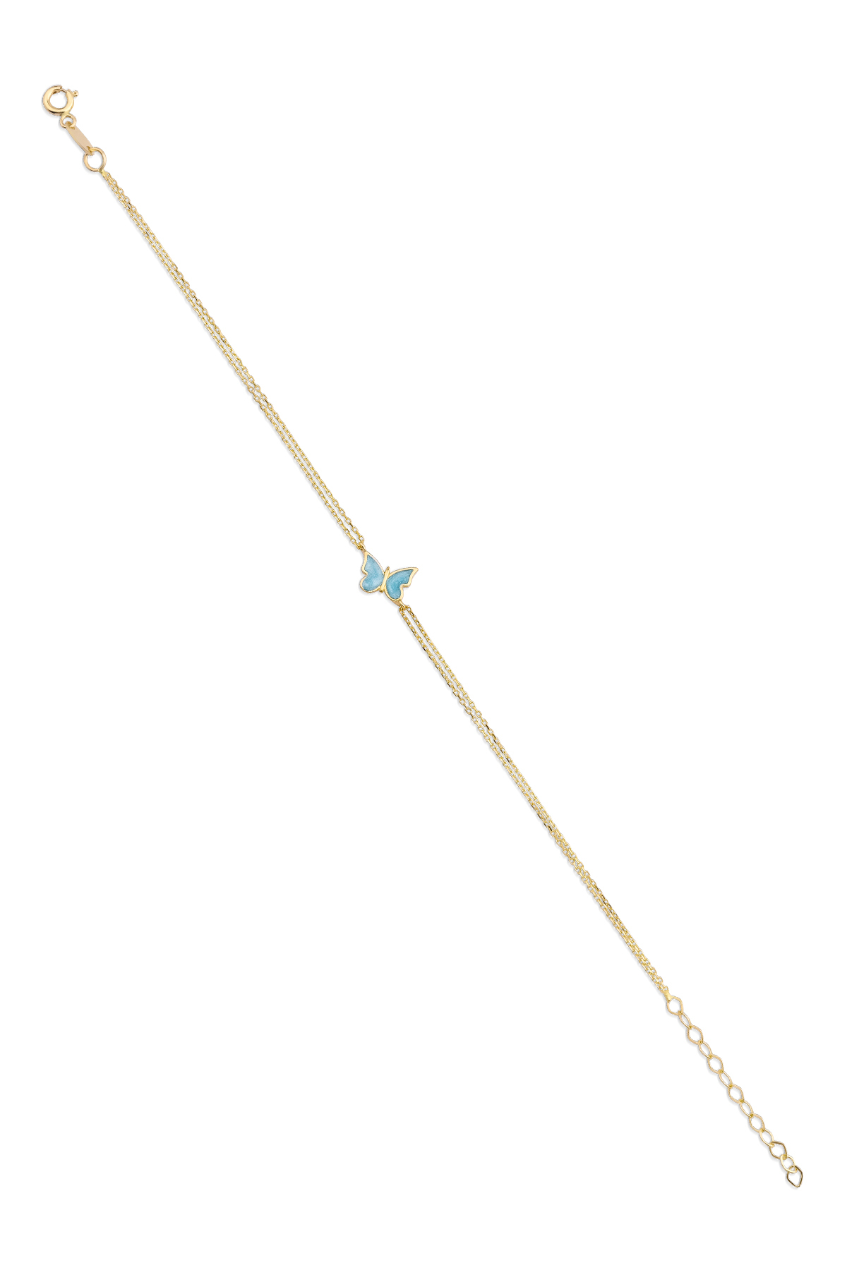 14 Ayar Altın Mavi Mineli Kelebek Bileklik