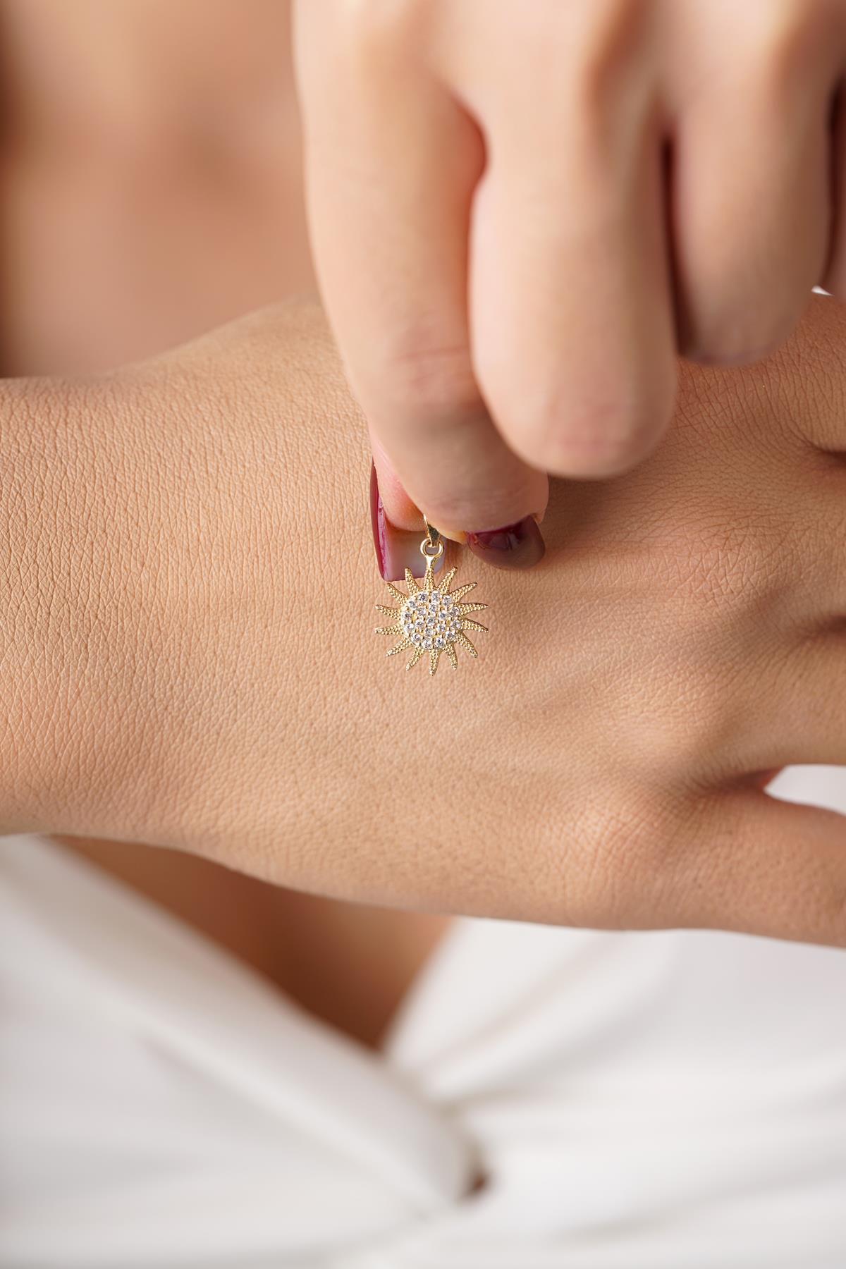 14 Ayar Altın Taş Detaylı Güneş Kolye Ucu